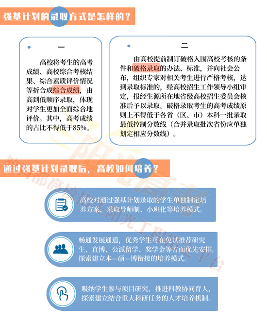 强基计划聚焦国家重大战略需求,在确保公平公正的前提下,探索建立多维度考核学生的评价模式,逐步形成基础学科拔尖创新人才选拔培养的有效机制。重点破解基础学科领军人才短缺和长远发展的瓶颈问题。
