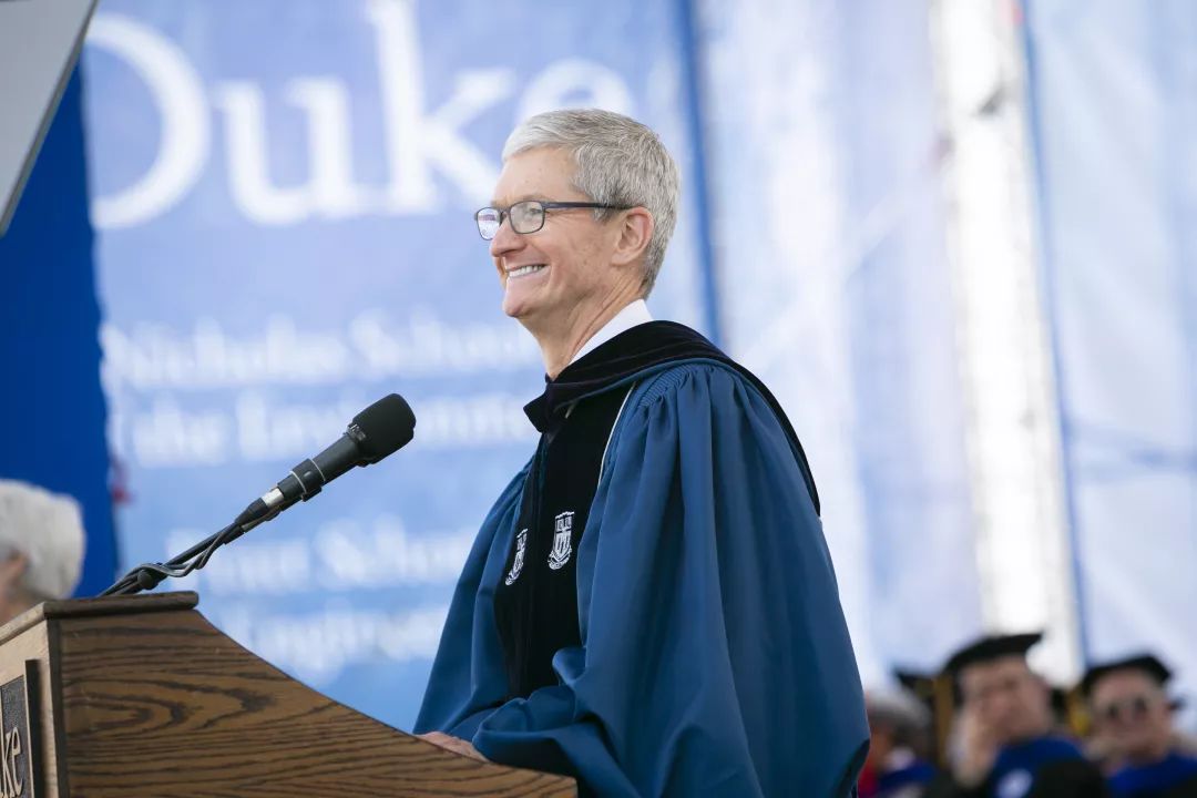 苹果公司首席执行官Tim Cook于2018年5月在杜克大学毕业典礼发表演讲