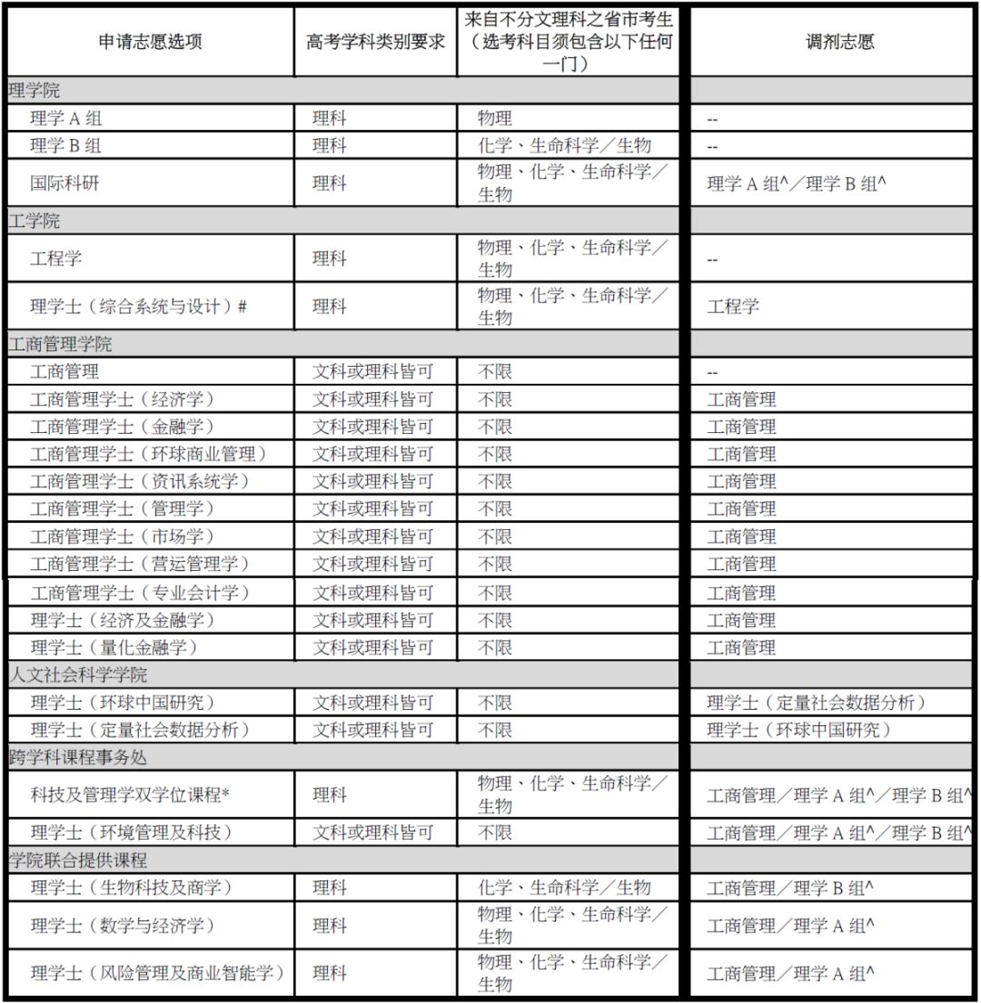 ^ 填选「调剂志愿」时,请注意每选项对高考学科类别/选考科目之要求