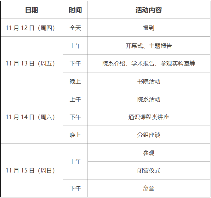 (二)营员无需缴纳报名费用,在营期间食宿及相关活动支出由我校负责。