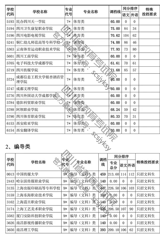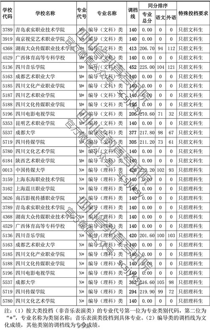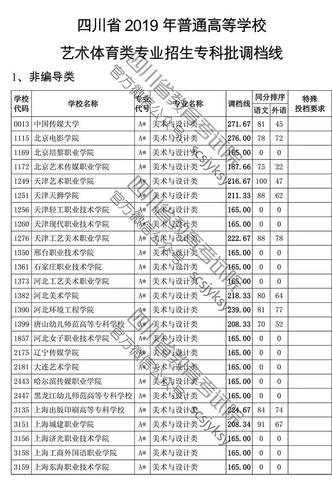 小伙伴们,今年四川省普通艺体专科批已于昨日按期投档,为了方便大家了解相关信息,省教育考试院按非编导类和编导类发布我省2019年普通高等学校艺术体育类专业招生专科批调档线!