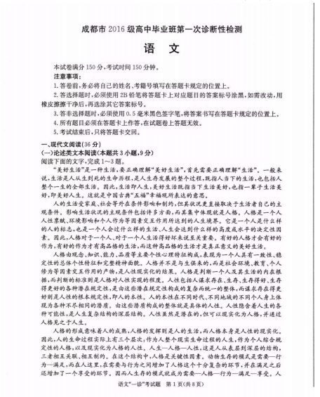 附:成都一诊2019真题及答案