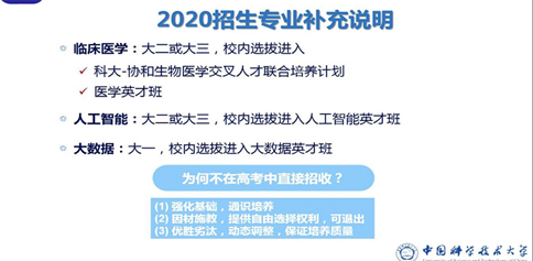 补充说明:几个热门专业不在高考时候招生而在校内选拔。