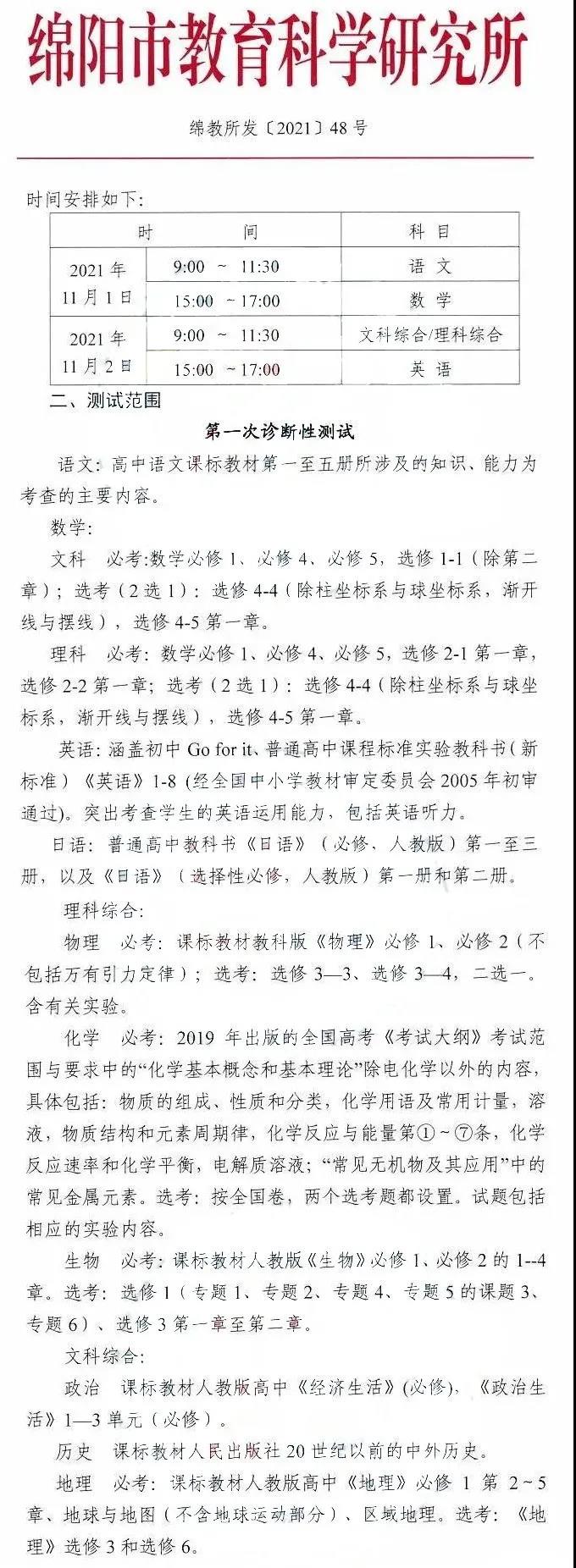 日前,绵阳市教科院发布了关于绵阳高2022届一诊考试的通知,确定了2022届绵阳一诊考试的时间及安排。