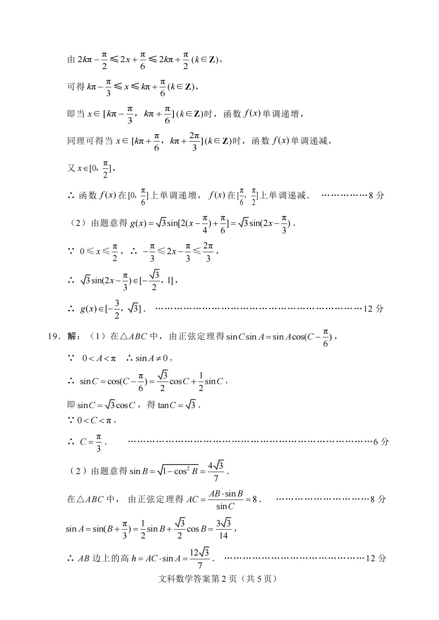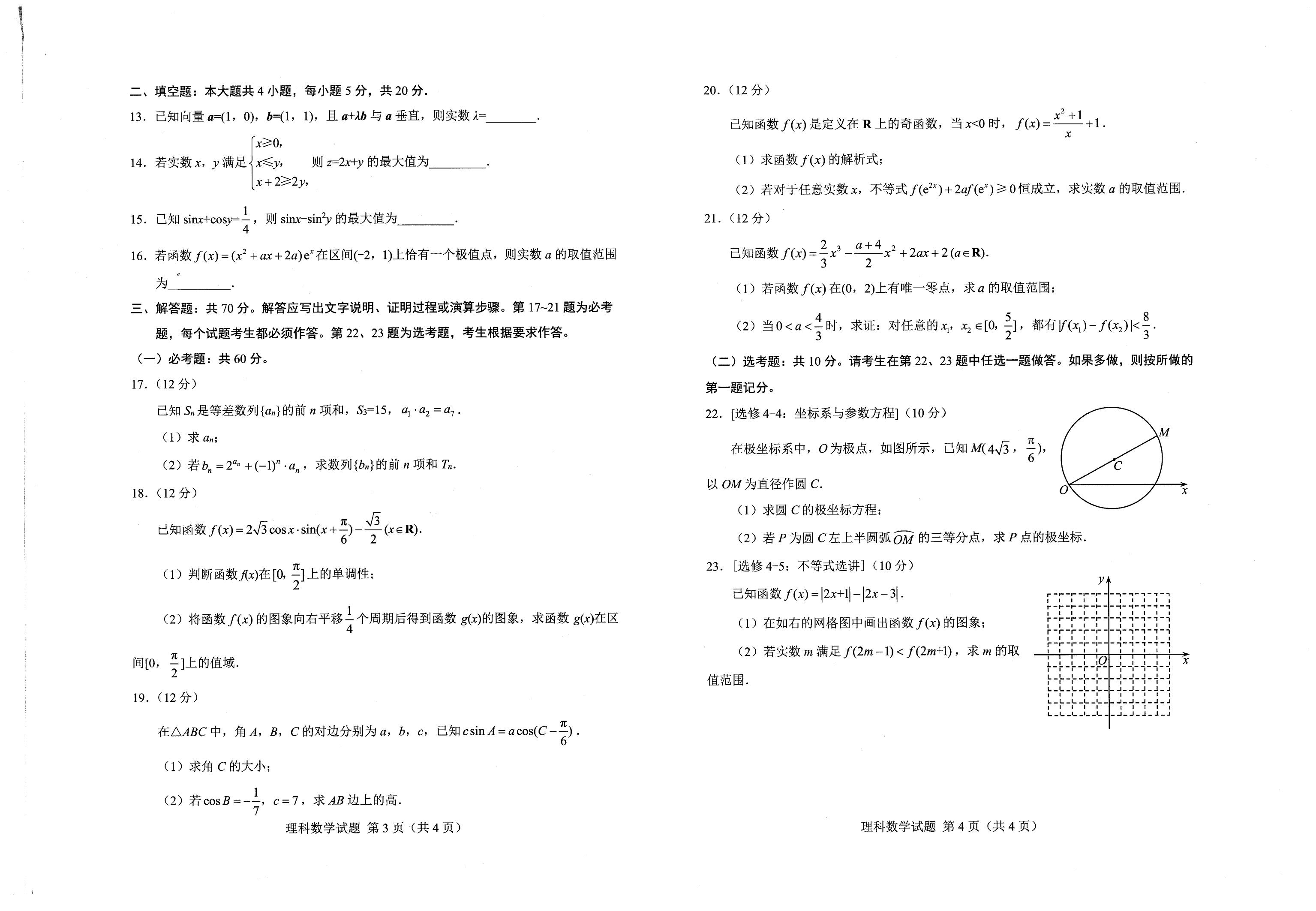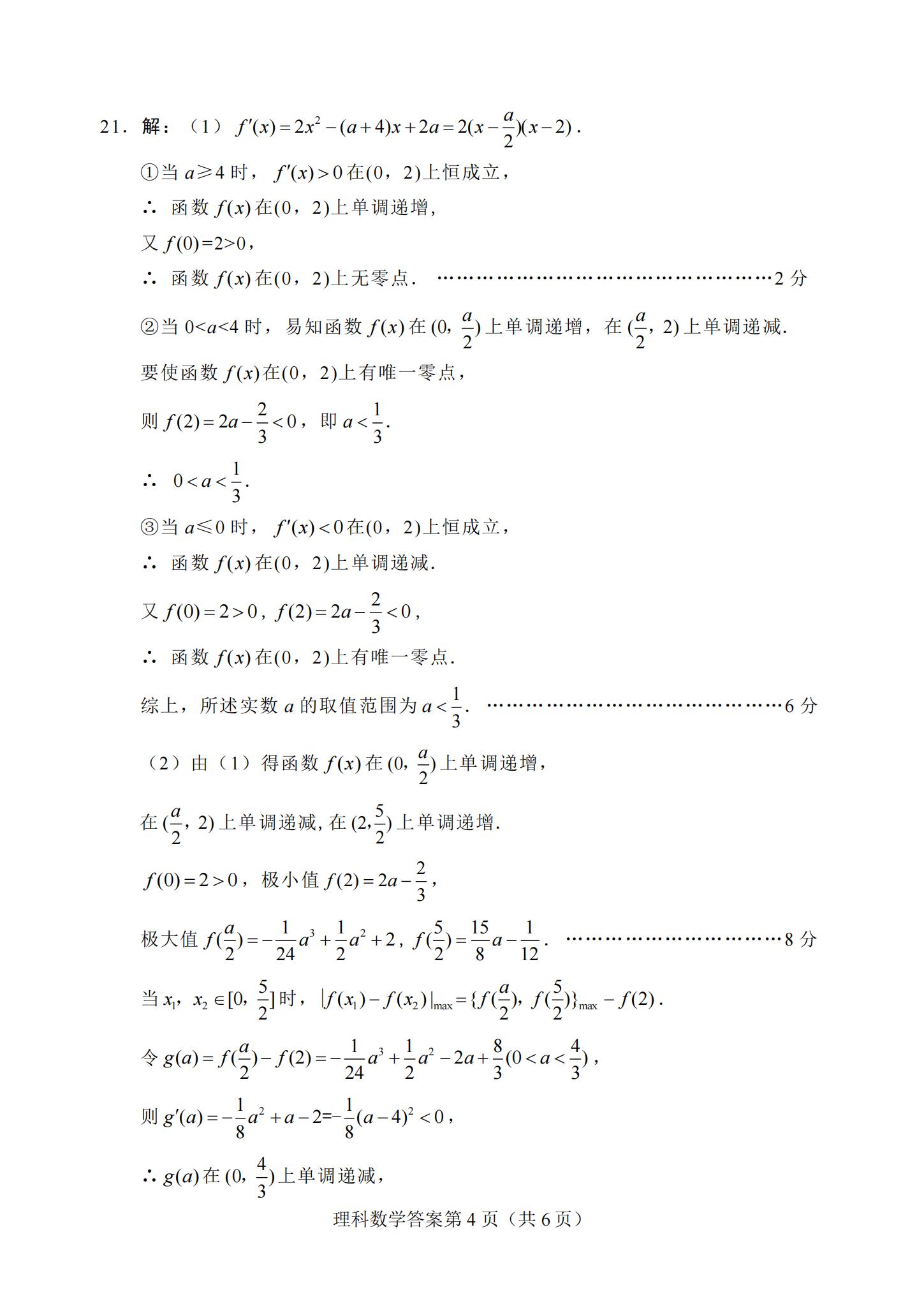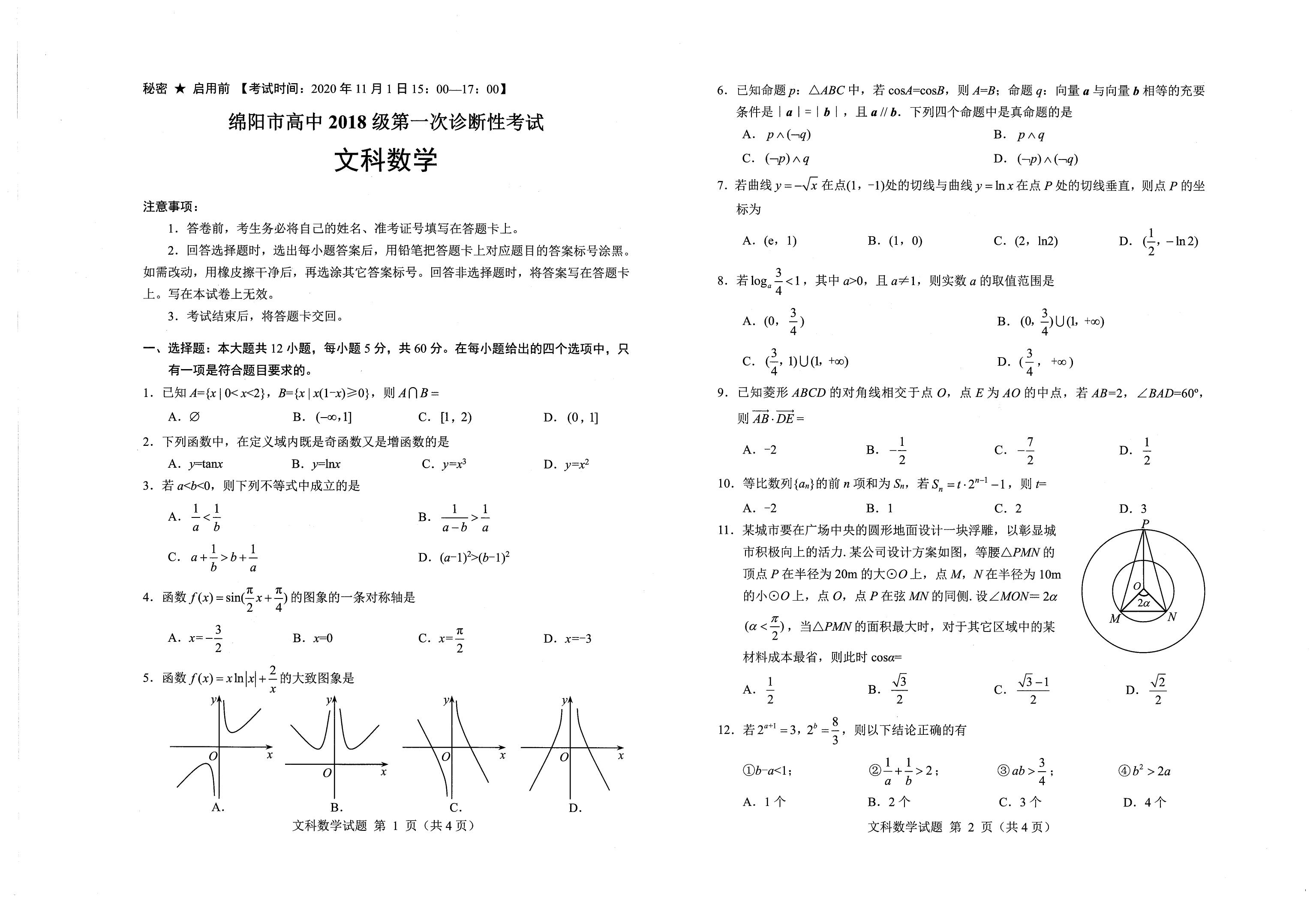 2021届绵阳一诊文科数学试题及答案:
