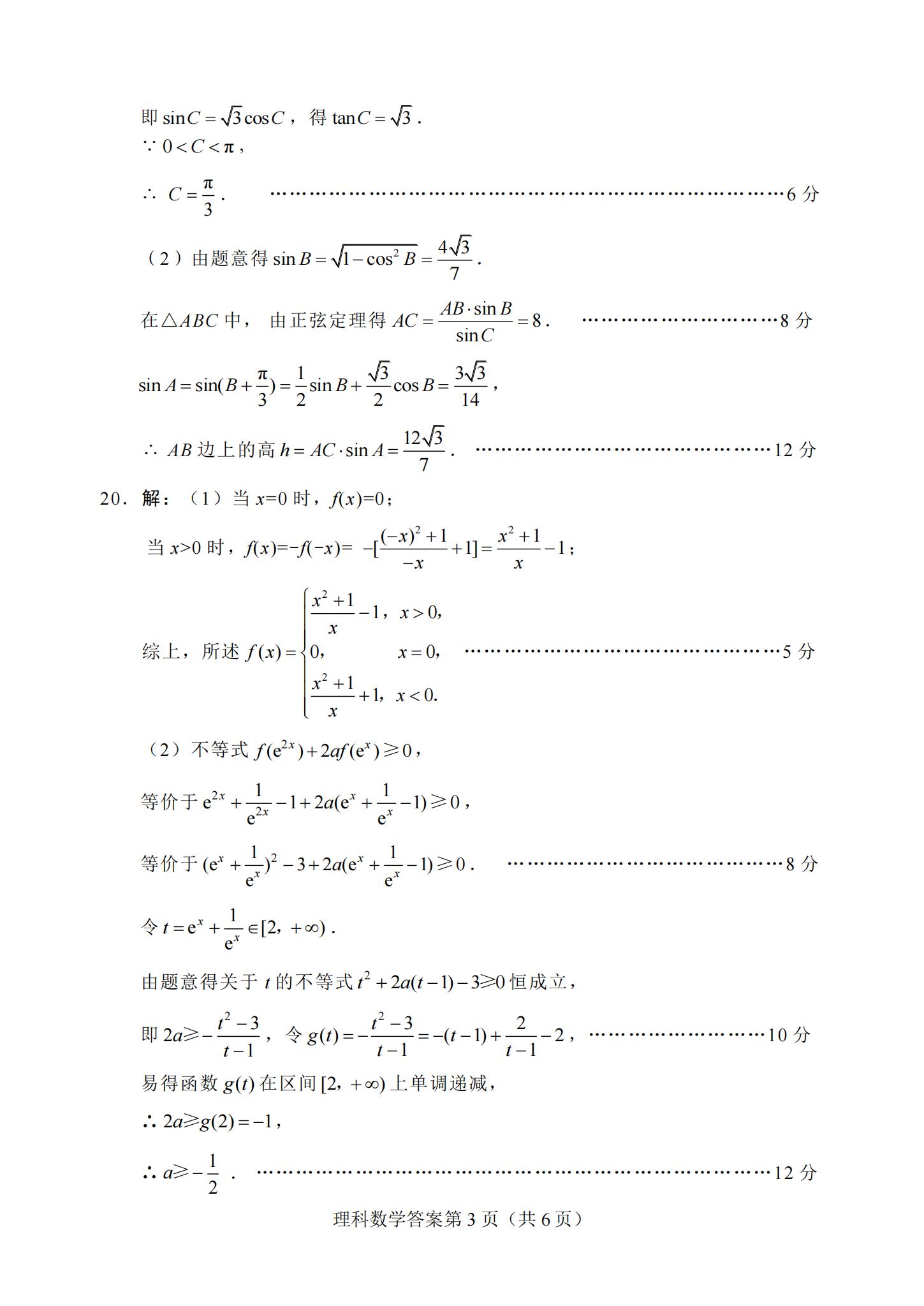 2021届绵阳一诊理科数学试题及答案: