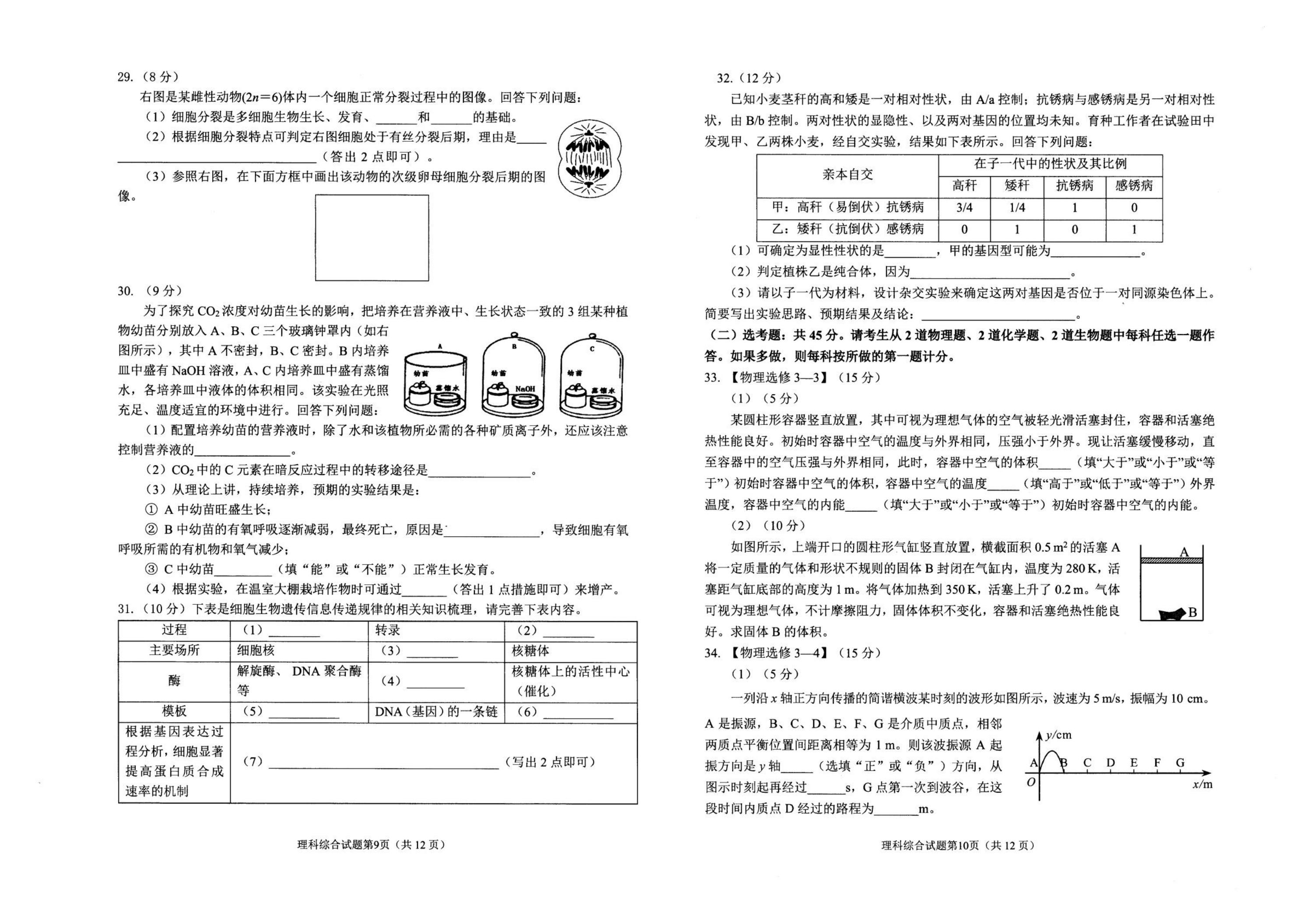 2021届绵阳一诊理综试题及答案: