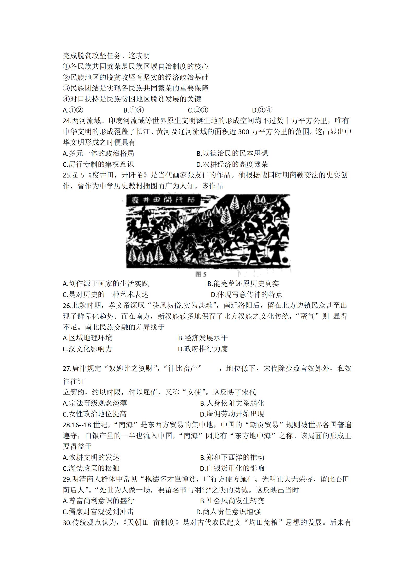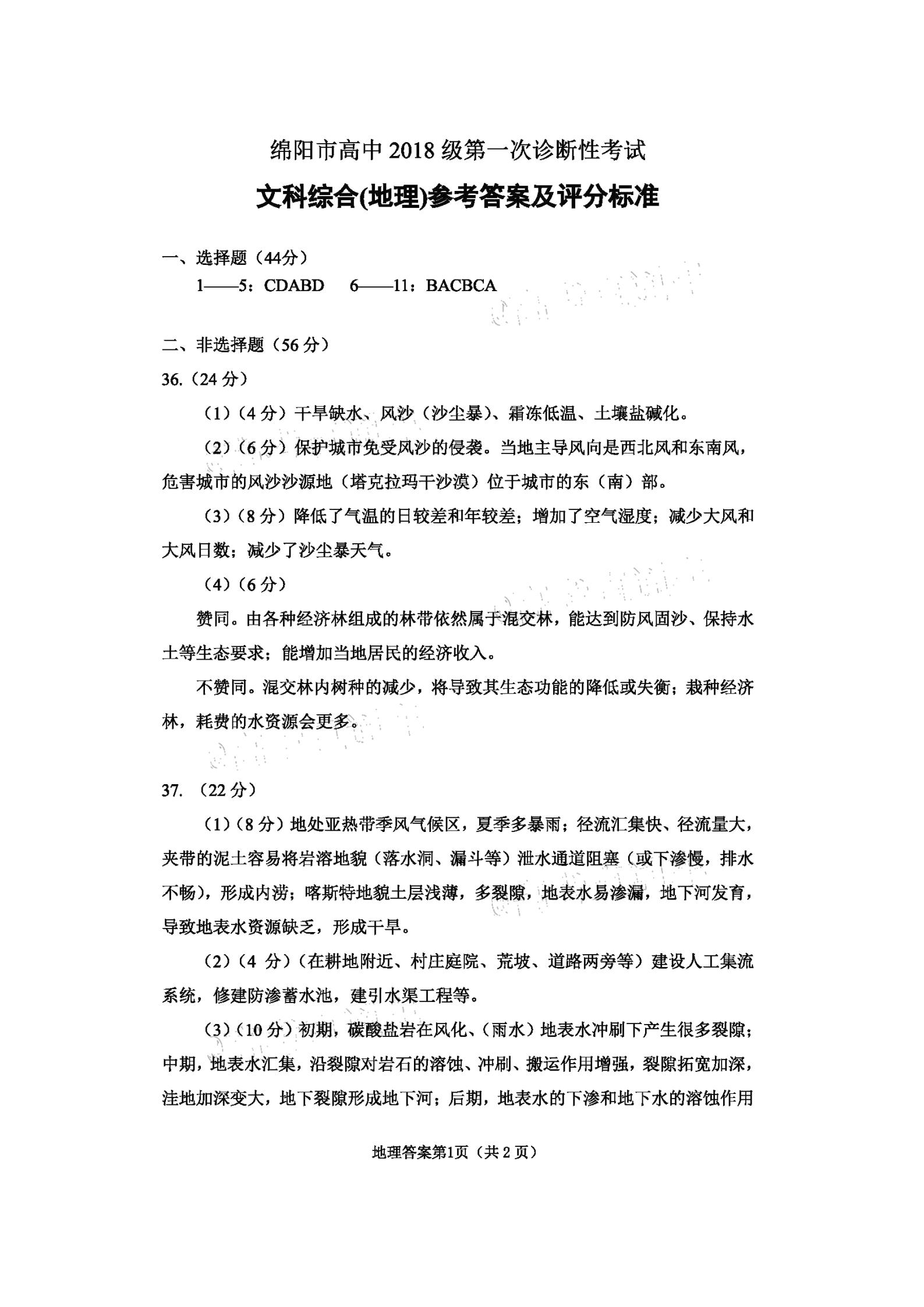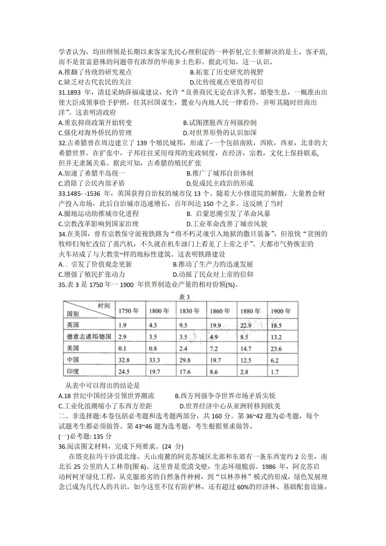 2021届绵阳一诊文综试题及答案:
