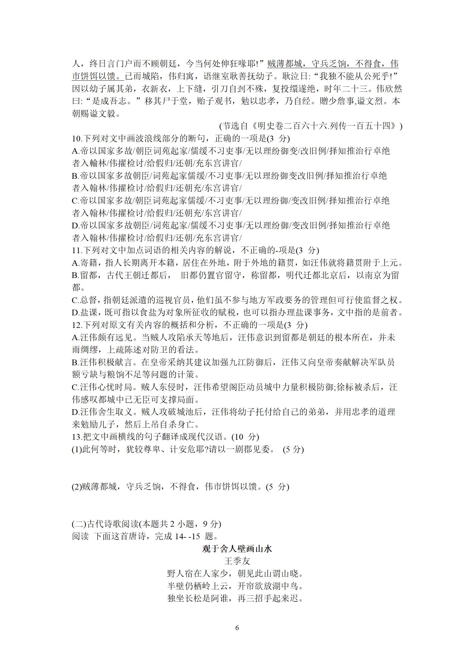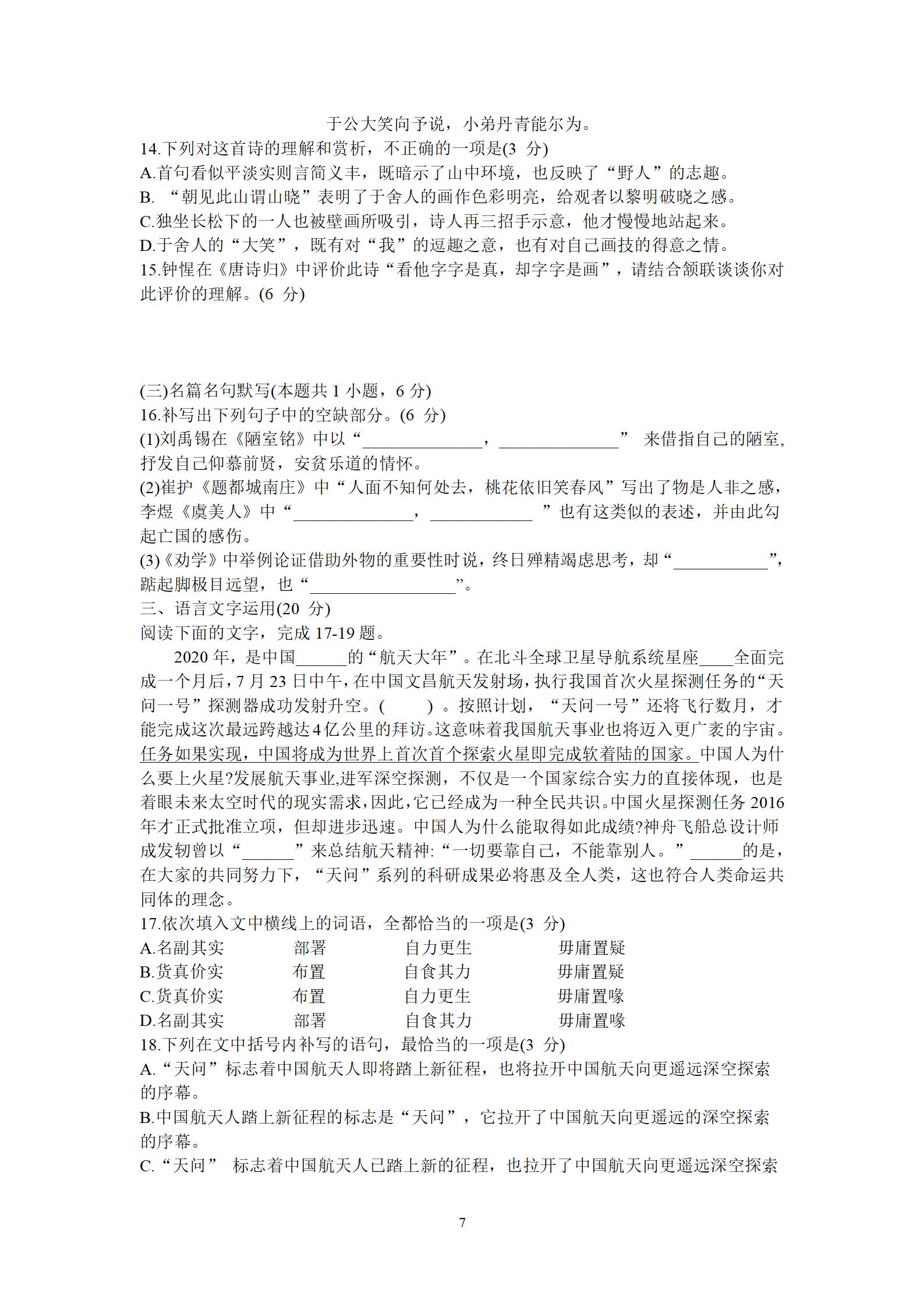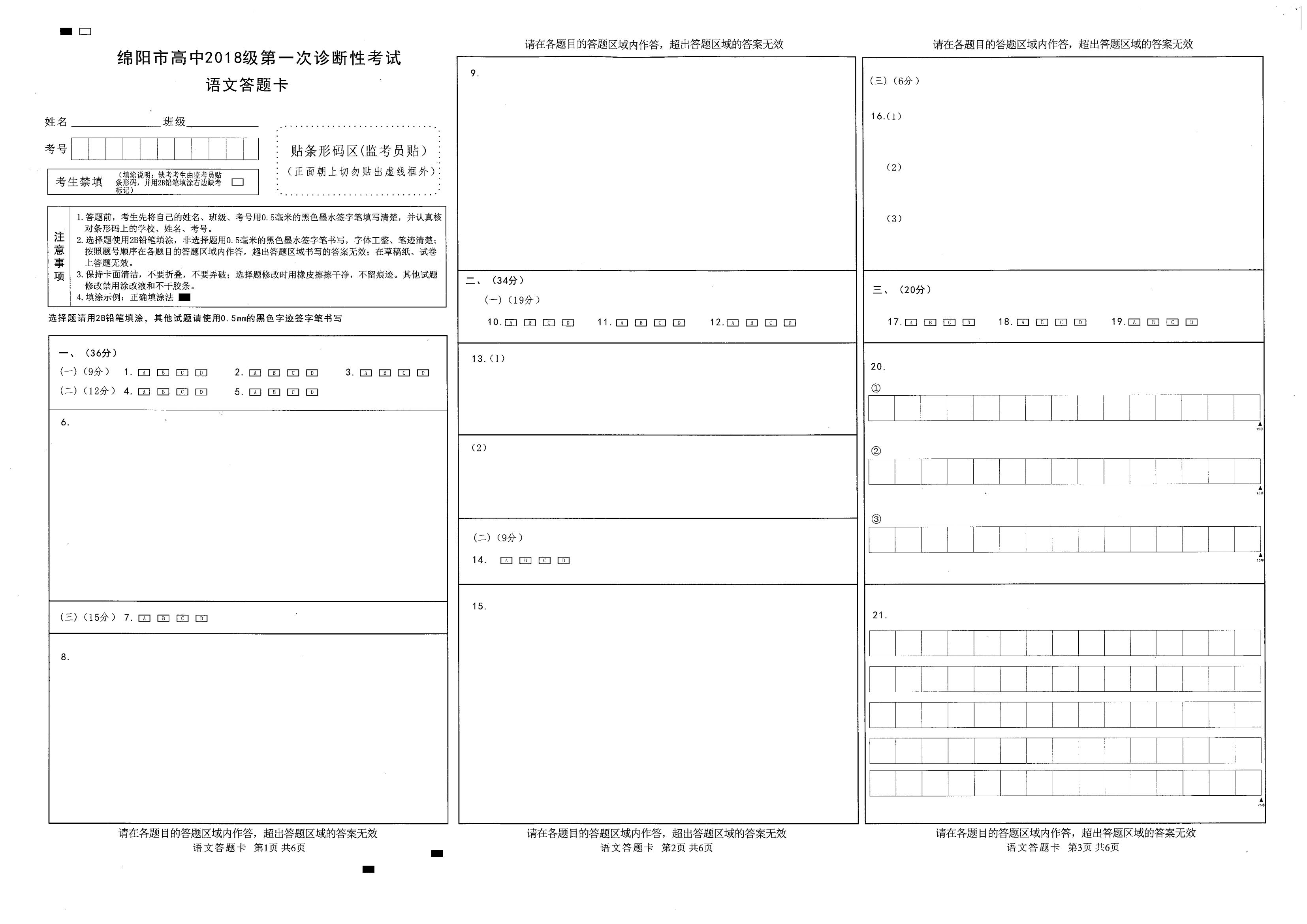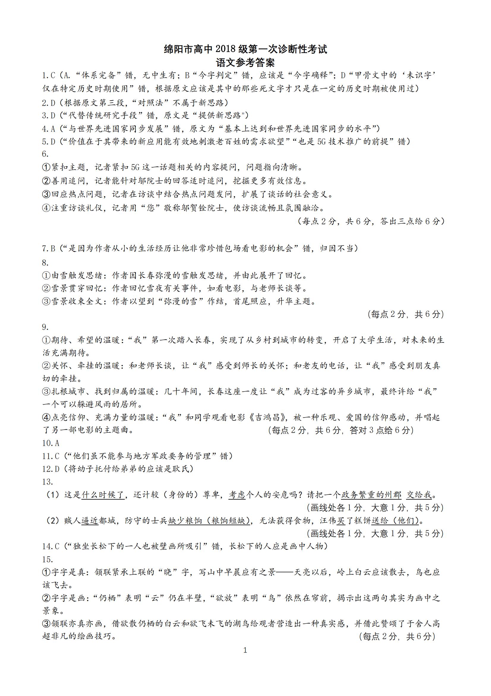 2021届绵阳一诊语文试题及答案: