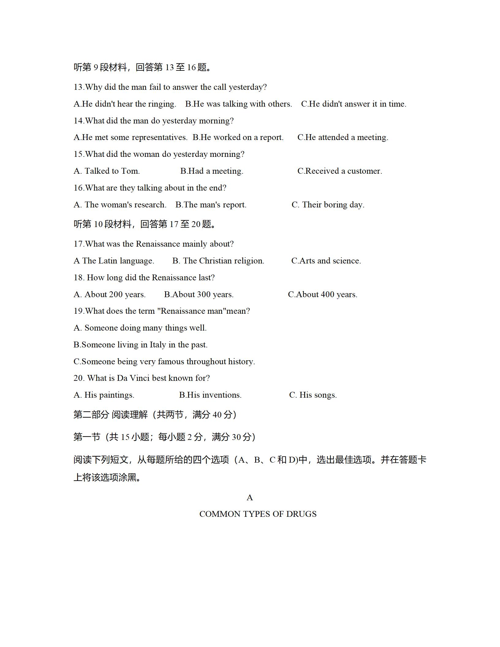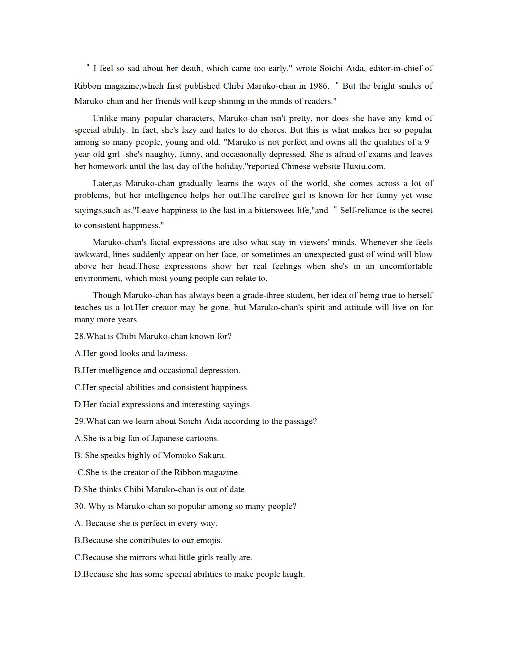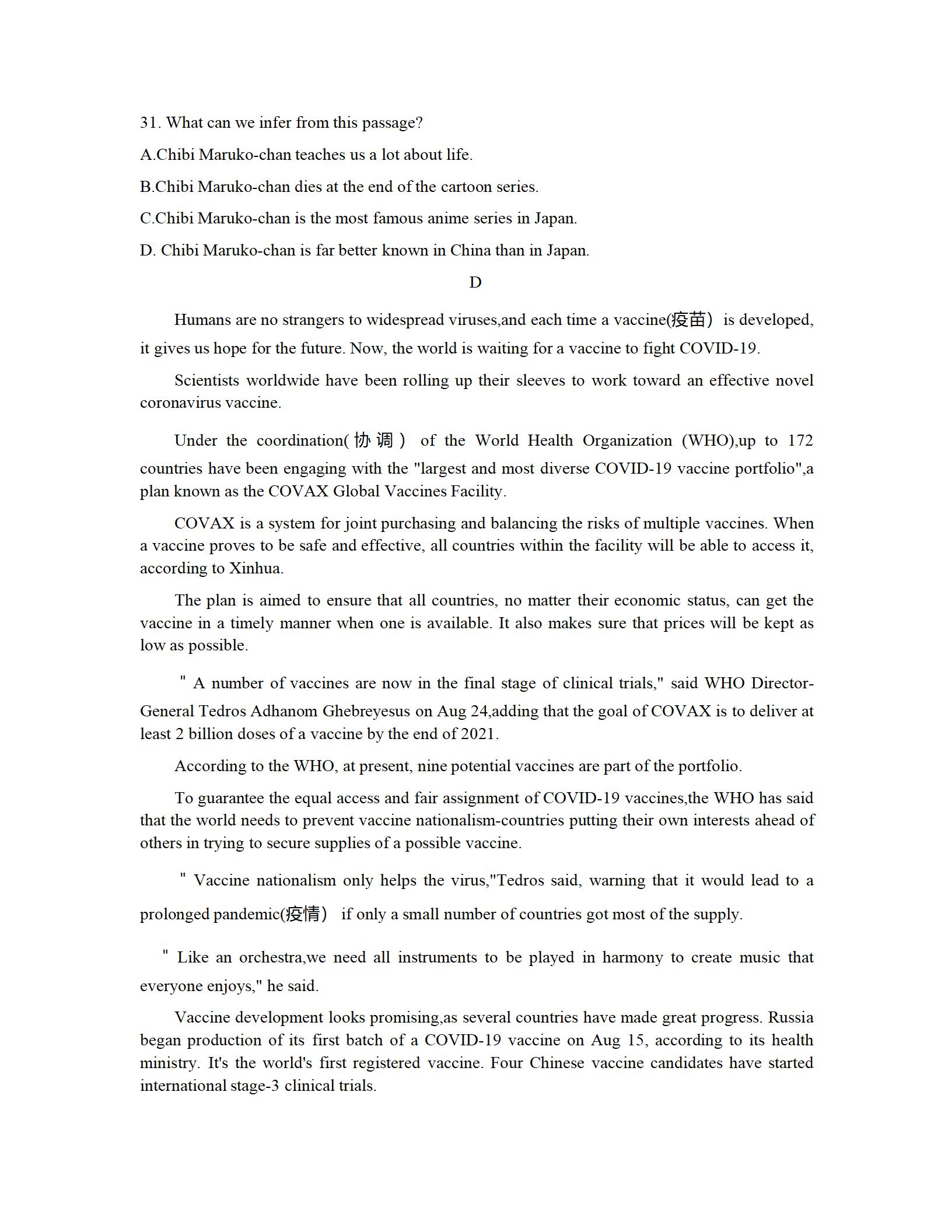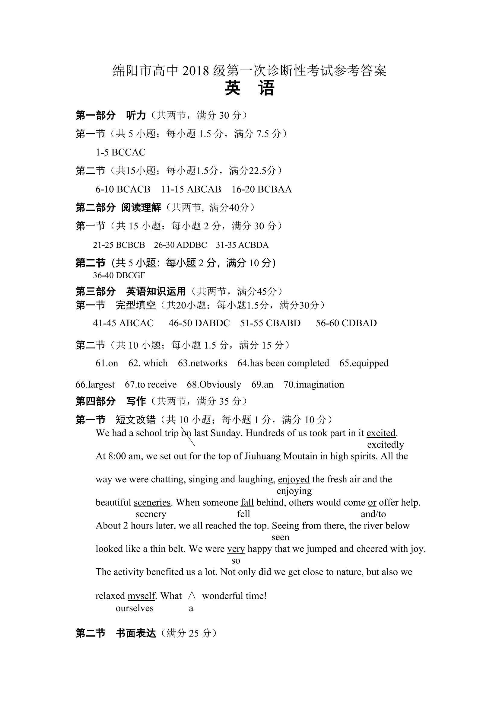 2021届绵阳一诊英语试题及答案: