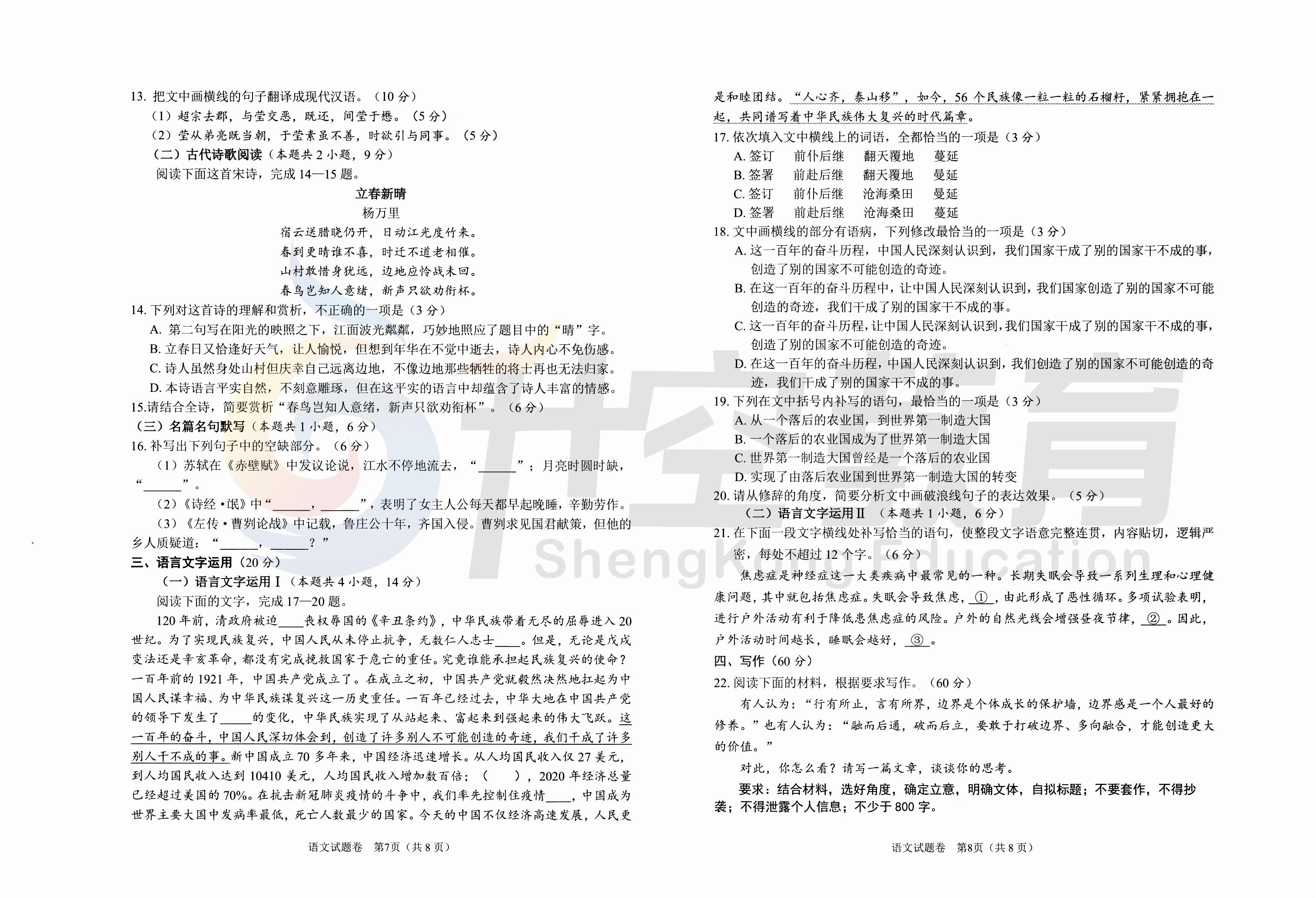 2022届绵阳一诊考试已经结束,你考得如何呢?升空教育四川规划网老师第一时间上传绵阳一诊语文试题与答案,供未考的学生刷题,同时让已考的同学能够核对答案。
