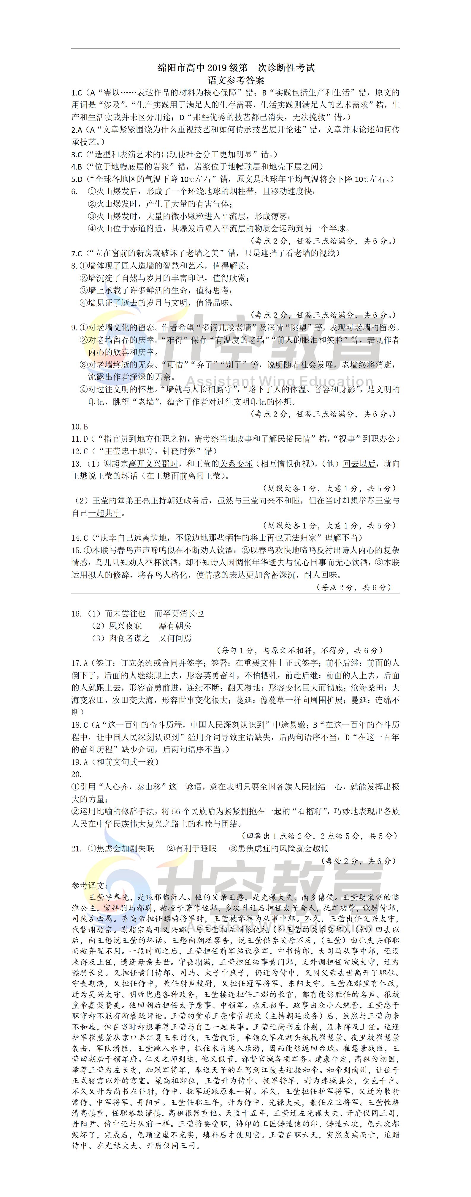 特别提醒家长、同学,注册我站账号后联系线上老师可获取2022届绵阳一诊语文无水印试题和答案!
