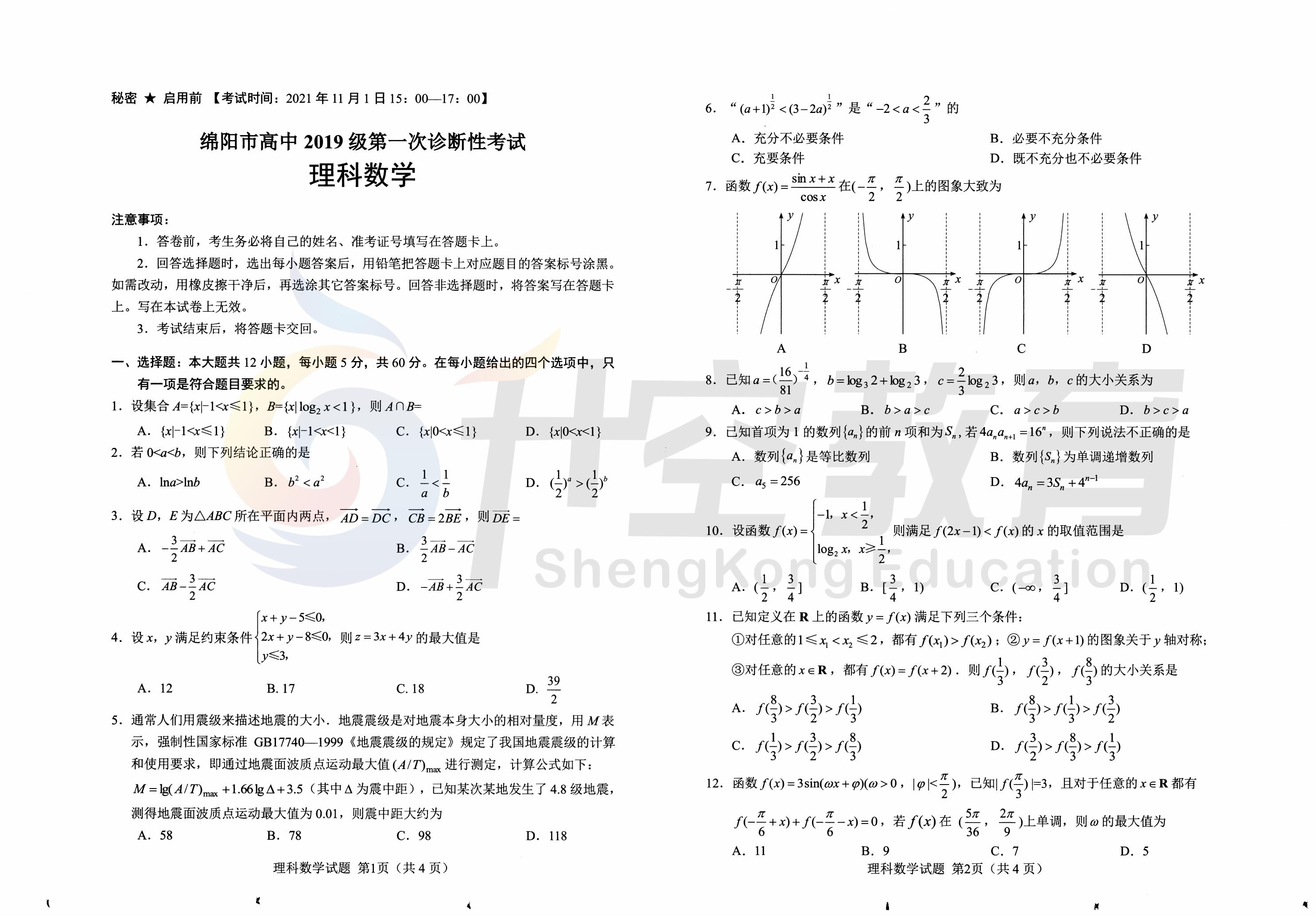 2022届绵阳一诊各科试题及答案:http://www.scsxghw.com/news/notice/90683.html