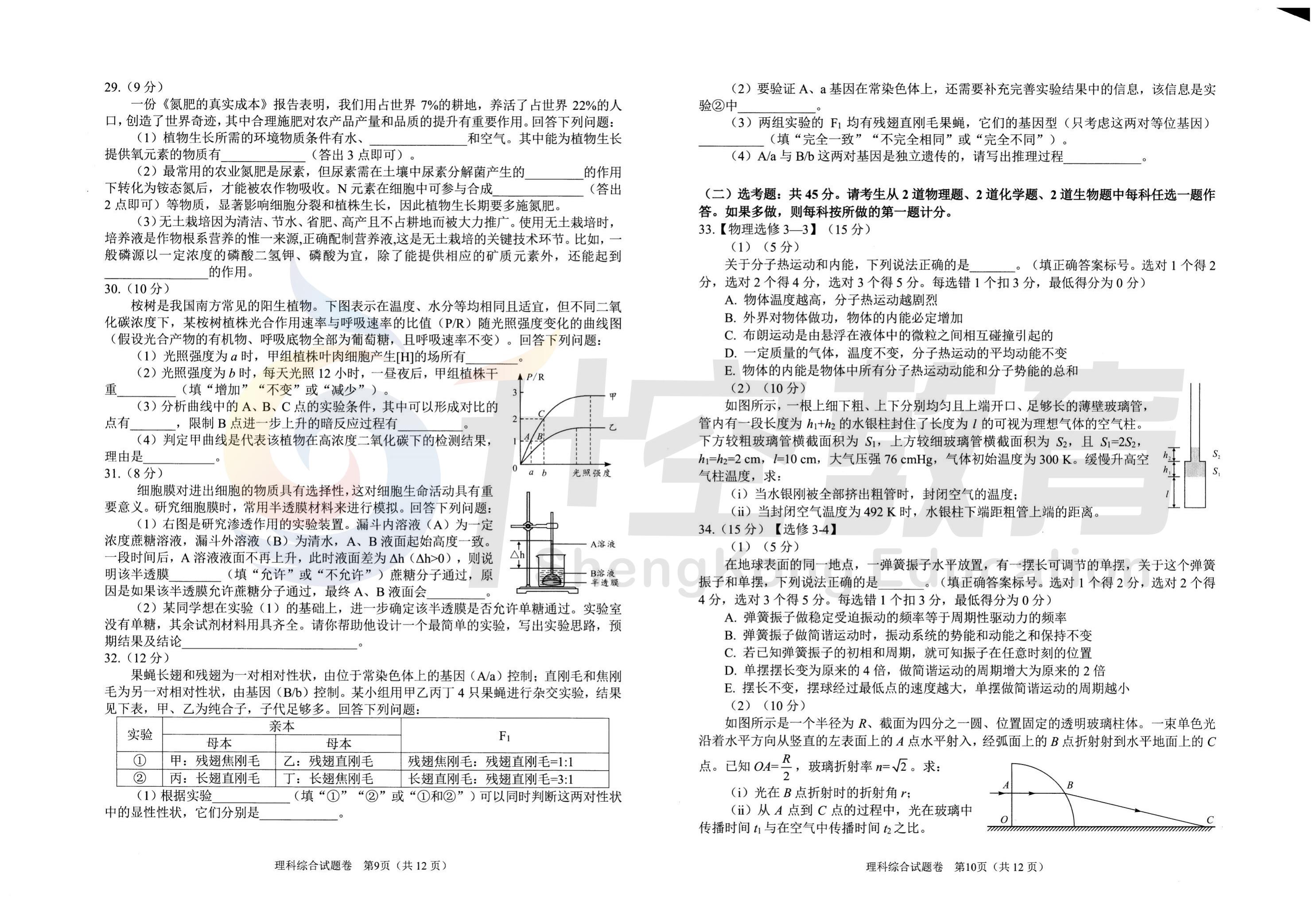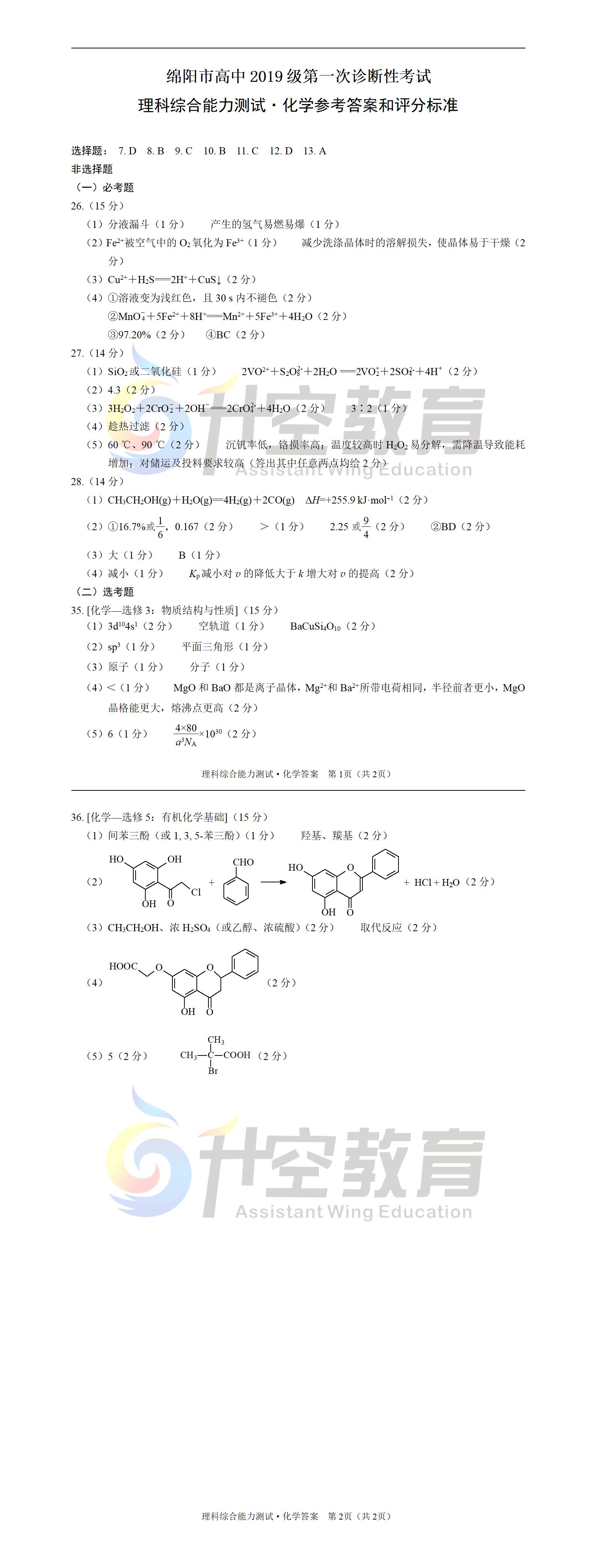 特别提醒:家长、同学可注册我站账号后联系线上老师获取2022届绵阳一诊理综无水印试题和答案!