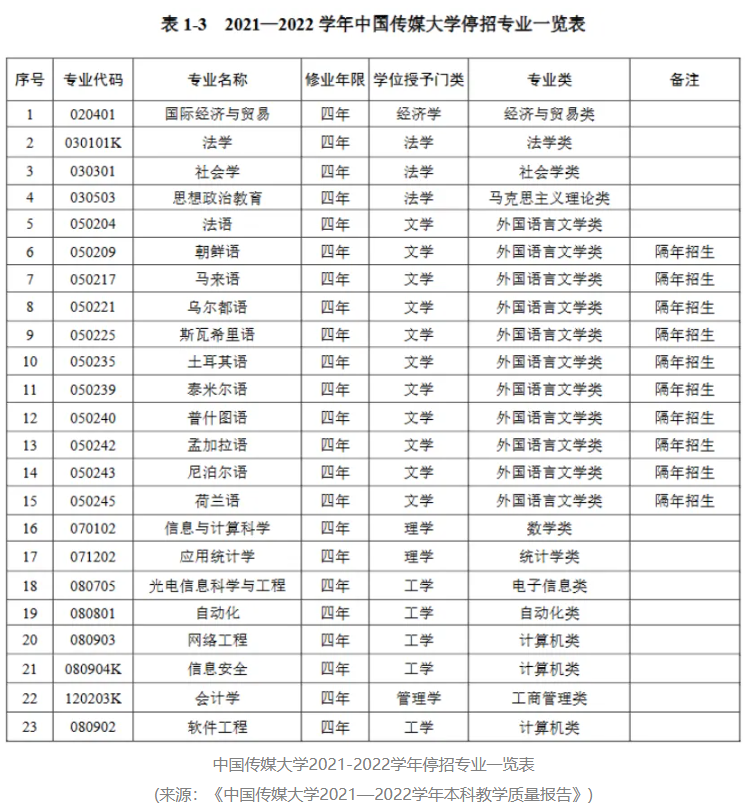 中传并非个例。近年国内高校普遍在进行类似的专业结构优化。例如中南大学15个本科专业停招,吉林大学19个本科专业停招,南昌大学拟撤销8个专业,北京语言大学也停止了多个翻译硕士方向的招生。专业动态调整,正在成为高等教育治理的一种常态。
