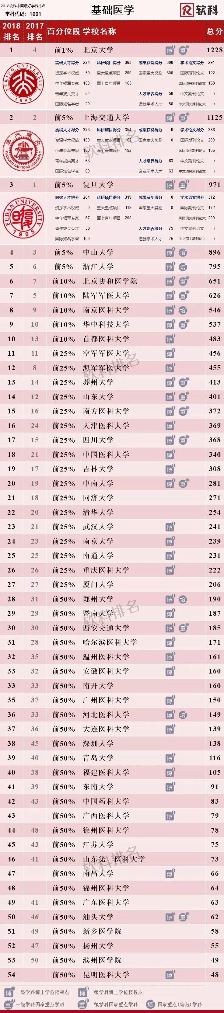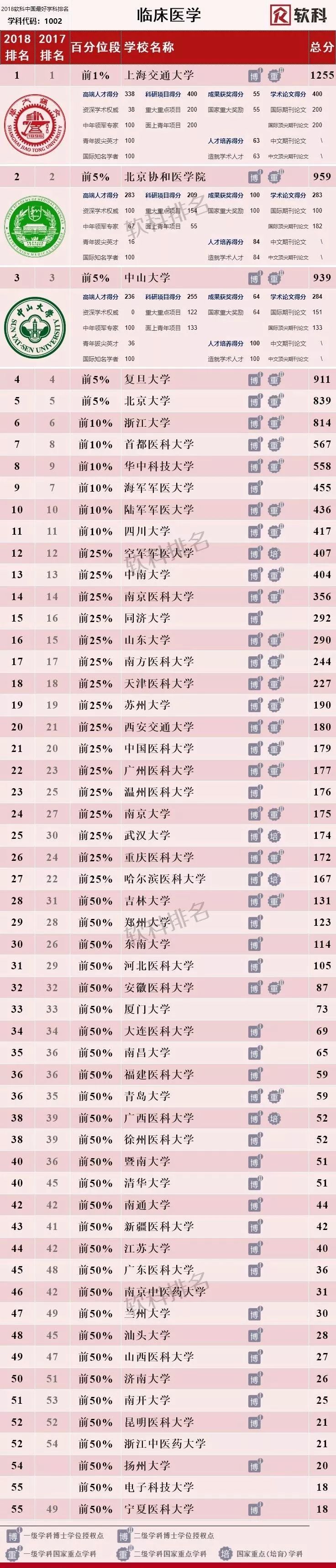 上海交通大学医学院、北京大学医学部、复旦大学、北京协和医学院、中山大学、四川大学、首都医科大学、浙江大学、南方医科大学、华中科技大学、中南大学、中国医科大学、天津医科大学、哈尔滨医科大学、重庆医科大学、安徽医科大学;