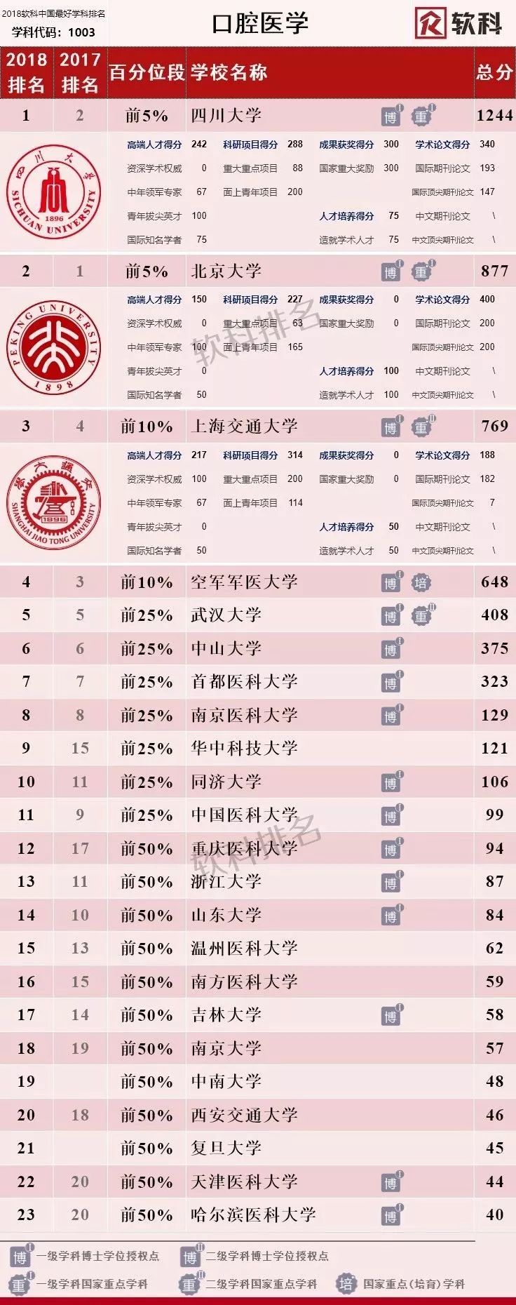 四川大学、上海交通大学、北京大学、武汉大学、中山大学、首都医科大学、南京医科大学、中国医科大学、浙江大学、天津医科大学、吉林大学、同济大学、重庆医科大学、大连医科大学、华中科技大学、广西医科大学、昆明医科大学、郑州大学;
