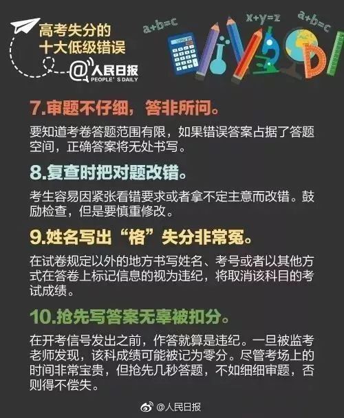 2019年高考在即,现在是冲刺的关键时刻,人民日报公布了高考各科易犯的错误,这些情况你有吗?对照检查,抓住应该拿到的分数。