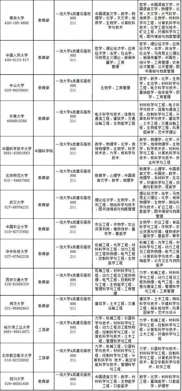 本次主要统计了“985”、“211”、“双一流”大学,以及部属高校的一级学科国家重点学科、双一流建设学科,供大家参考。