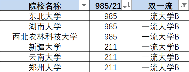原985大学中的东北大学、湖南大学、西北农林科技大学这次没能入选A类一流大学,落入B类;原211大学中的新疆大学、云南大学、郑州大学升入B类一流大学之列。