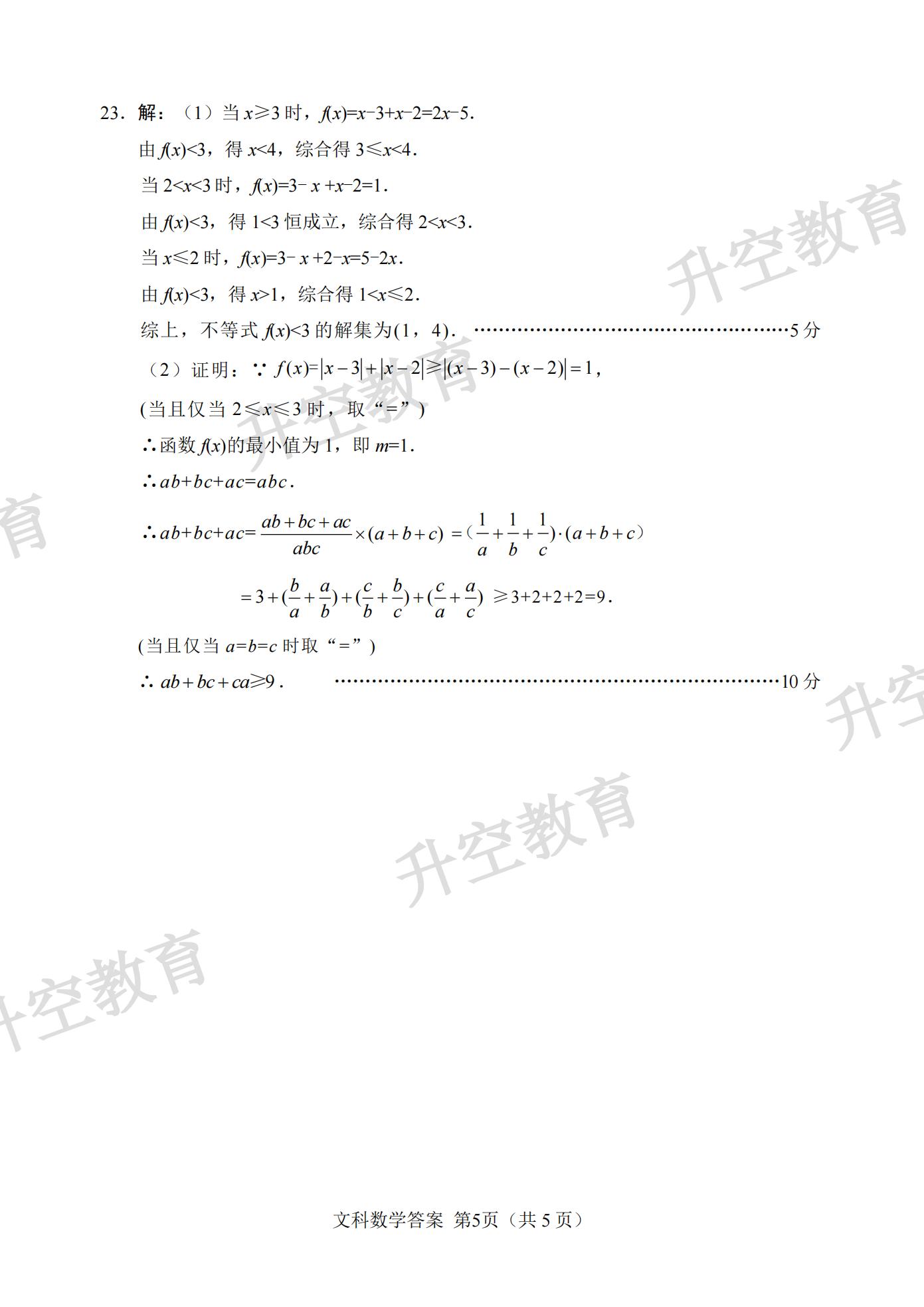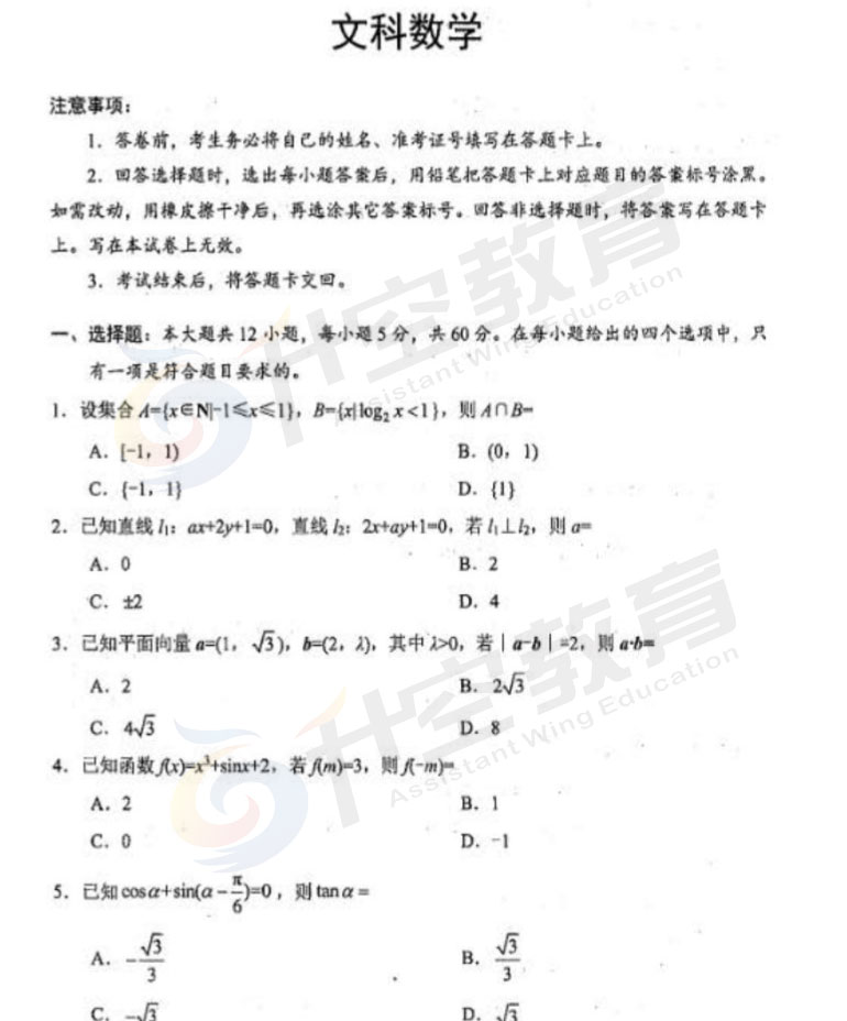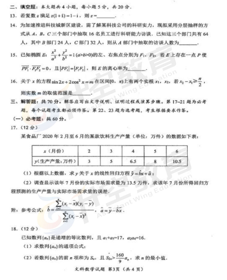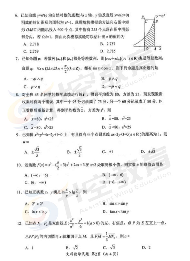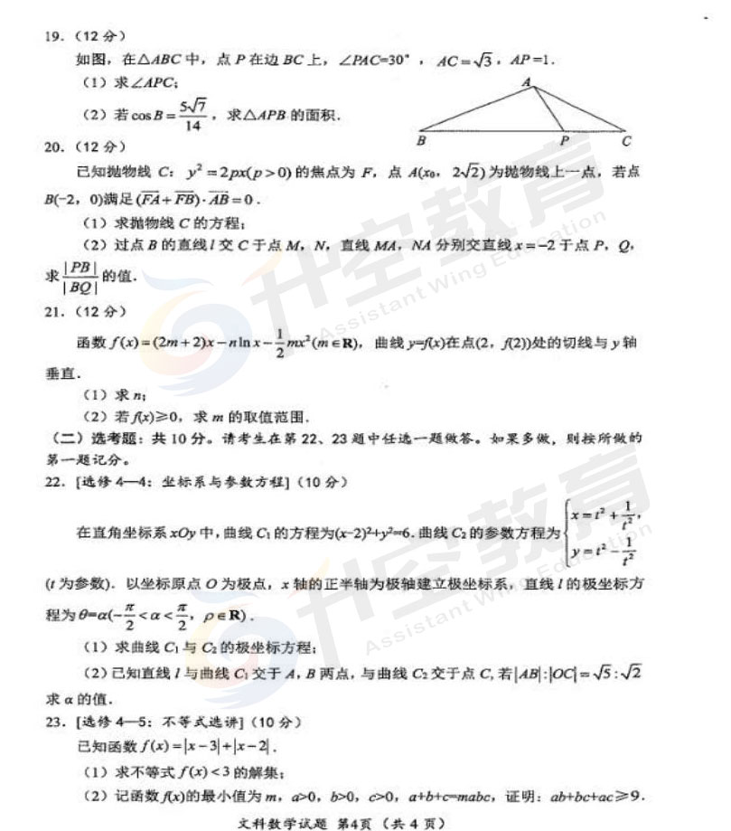 2021绵阳二诊文科数学答案: