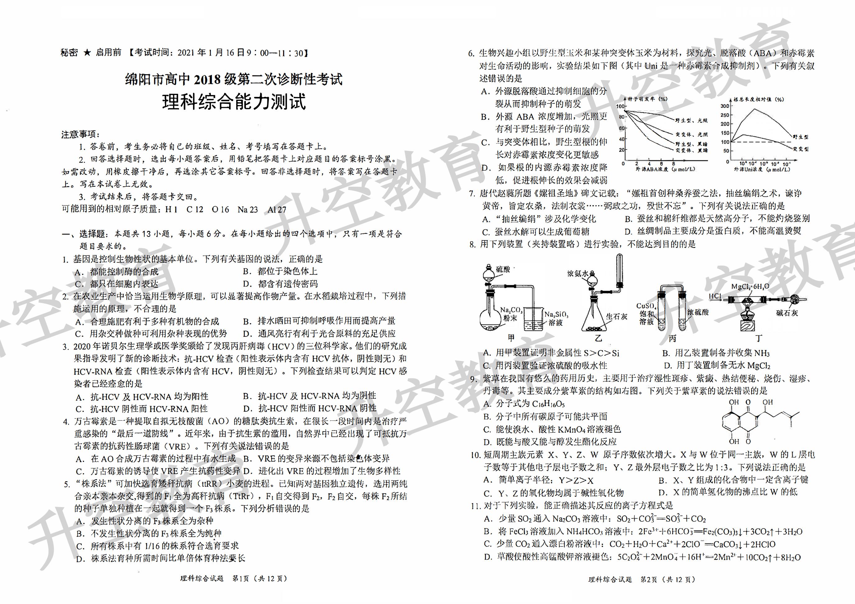 2021绵阳二诊考试结束后,部分同学是不是想回家过个轻松年? 不过马上要面临高考的高三同学们,可能还是得小小的紧张下。在这里升空教育的老师们提醒大家,寒假一定要做好自己的时间管理和行业管理,在这个假期不求提分,稳得住就行。以下是升空教育老师为大家整理的2021绵阳二诊理综的参考答案及试题,看看在本次二诊中你的理综考得如何?