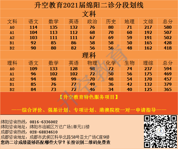 同时也希望家长、 同学们根据2021绵阳二诊考试划线,除了知道自己处于哪个分数段,同时也要根据单科成绩和总成绩进行比较,看看提升空间较大的科目是哪些,进行针对性的科目提升。