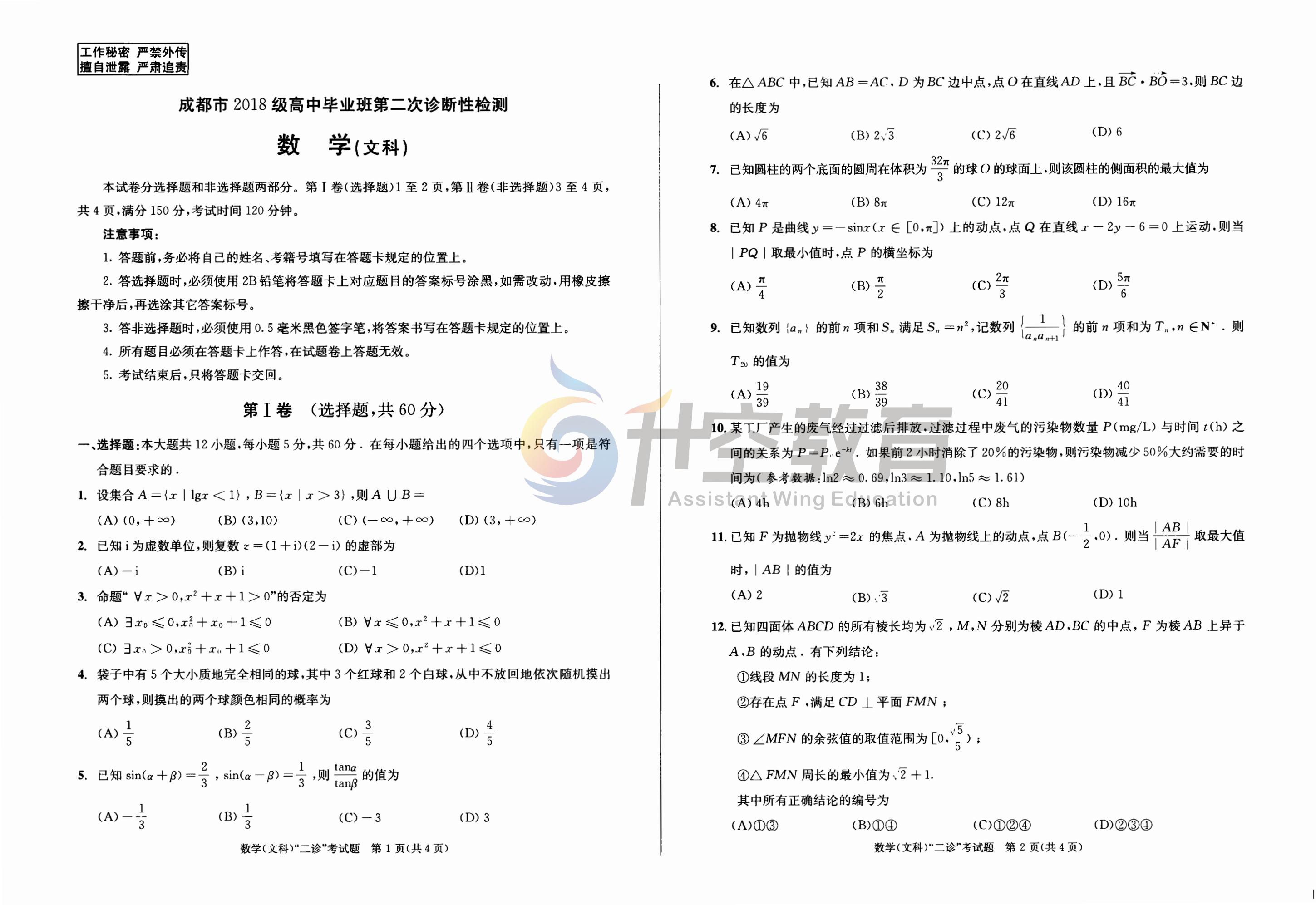 2021成都二诊文科数学试题及答案