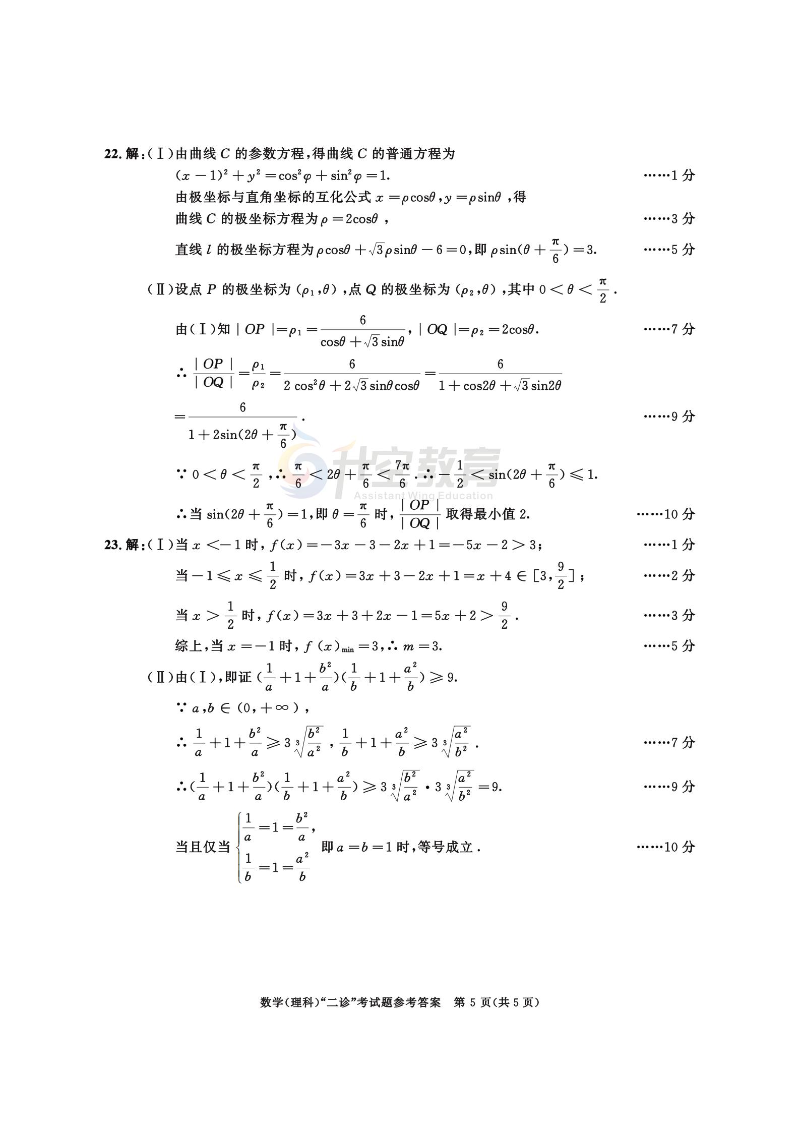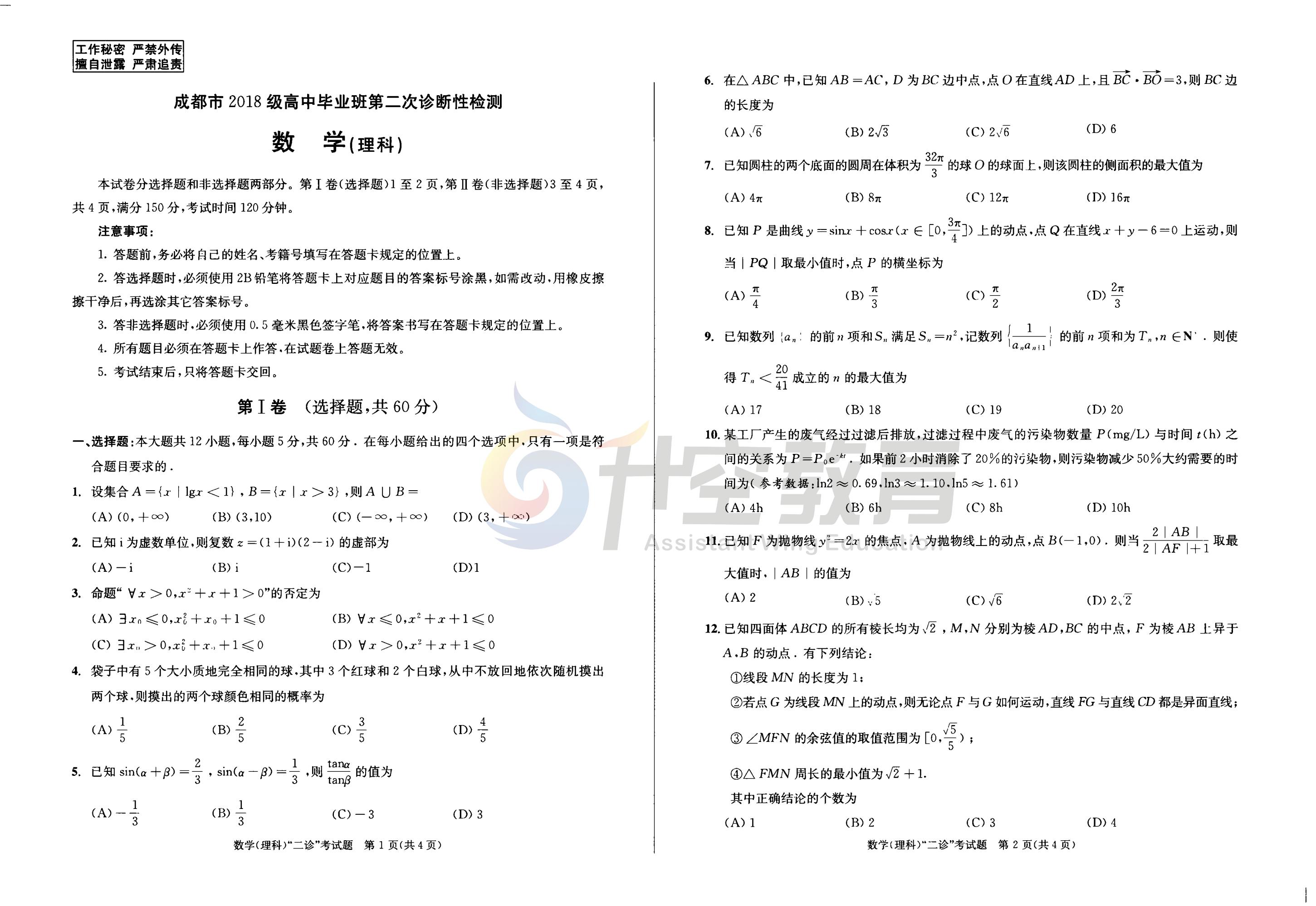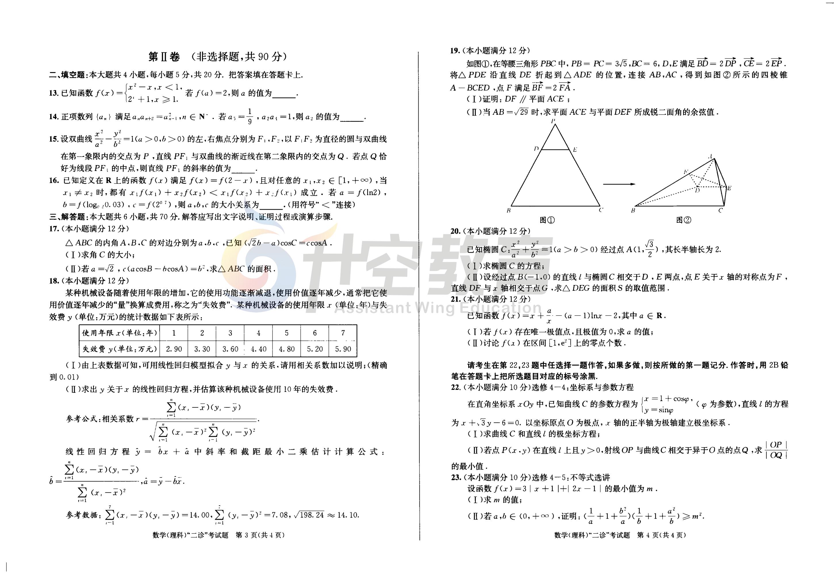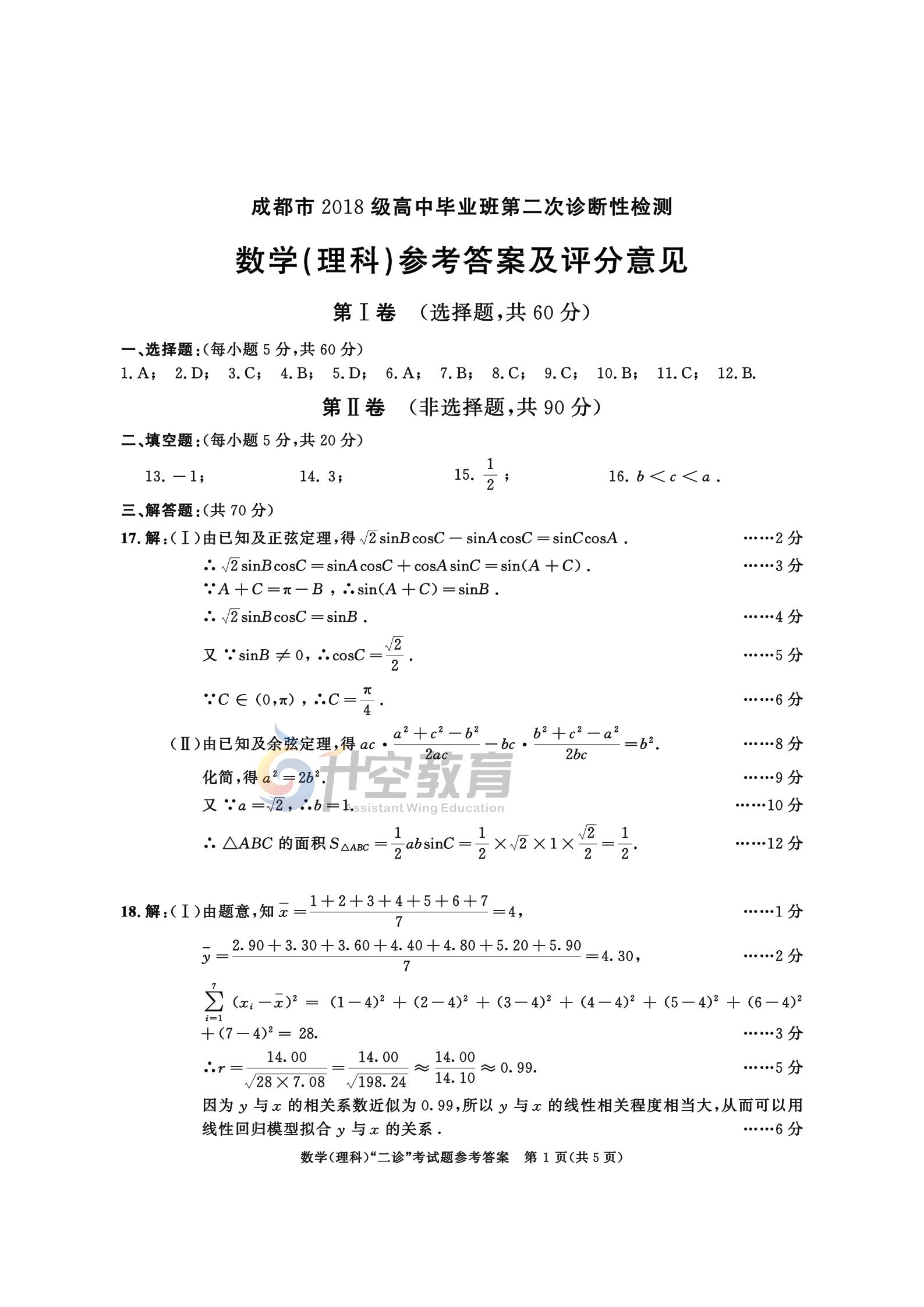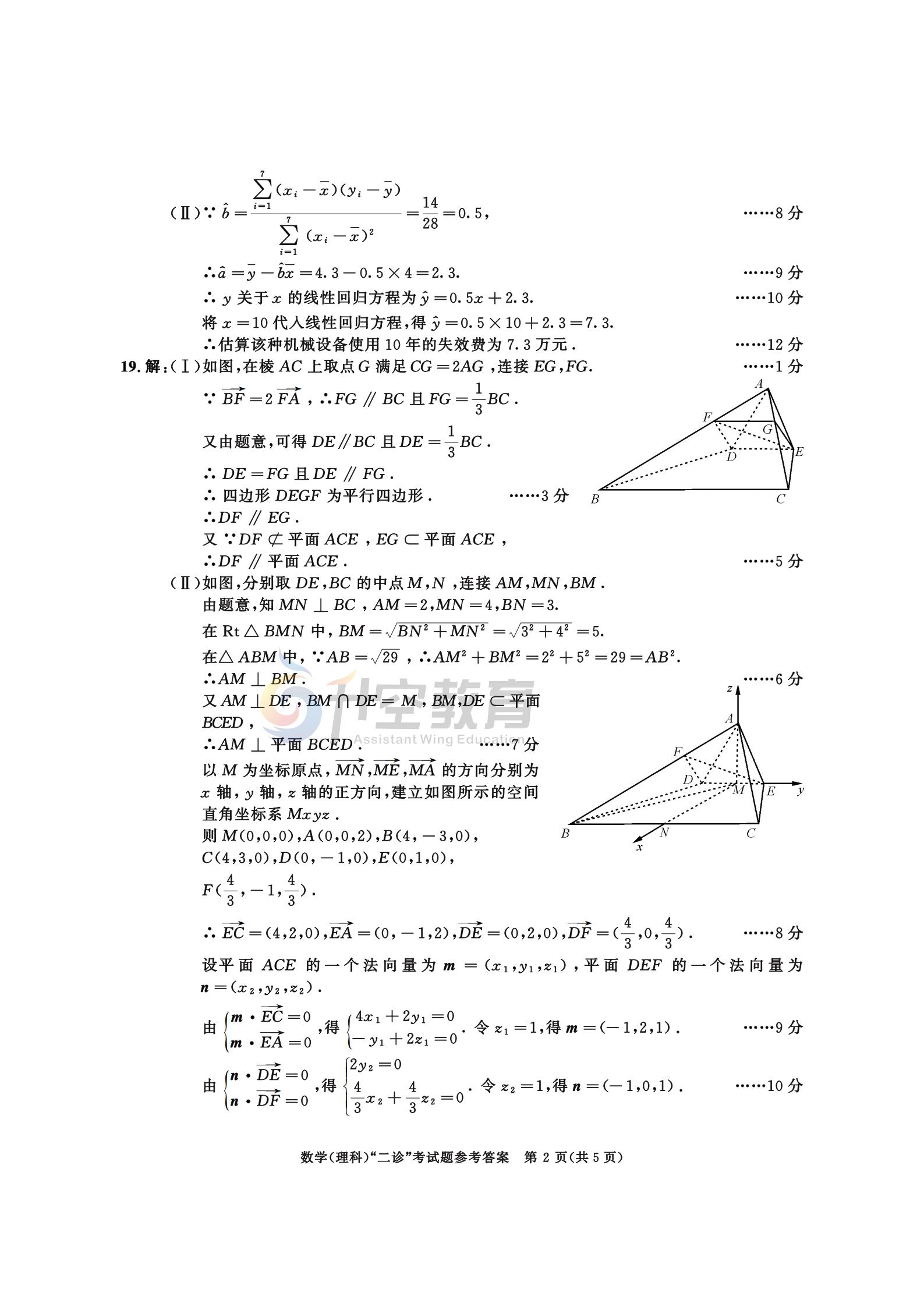 以下是2021成都二诊理科数学试题及答案