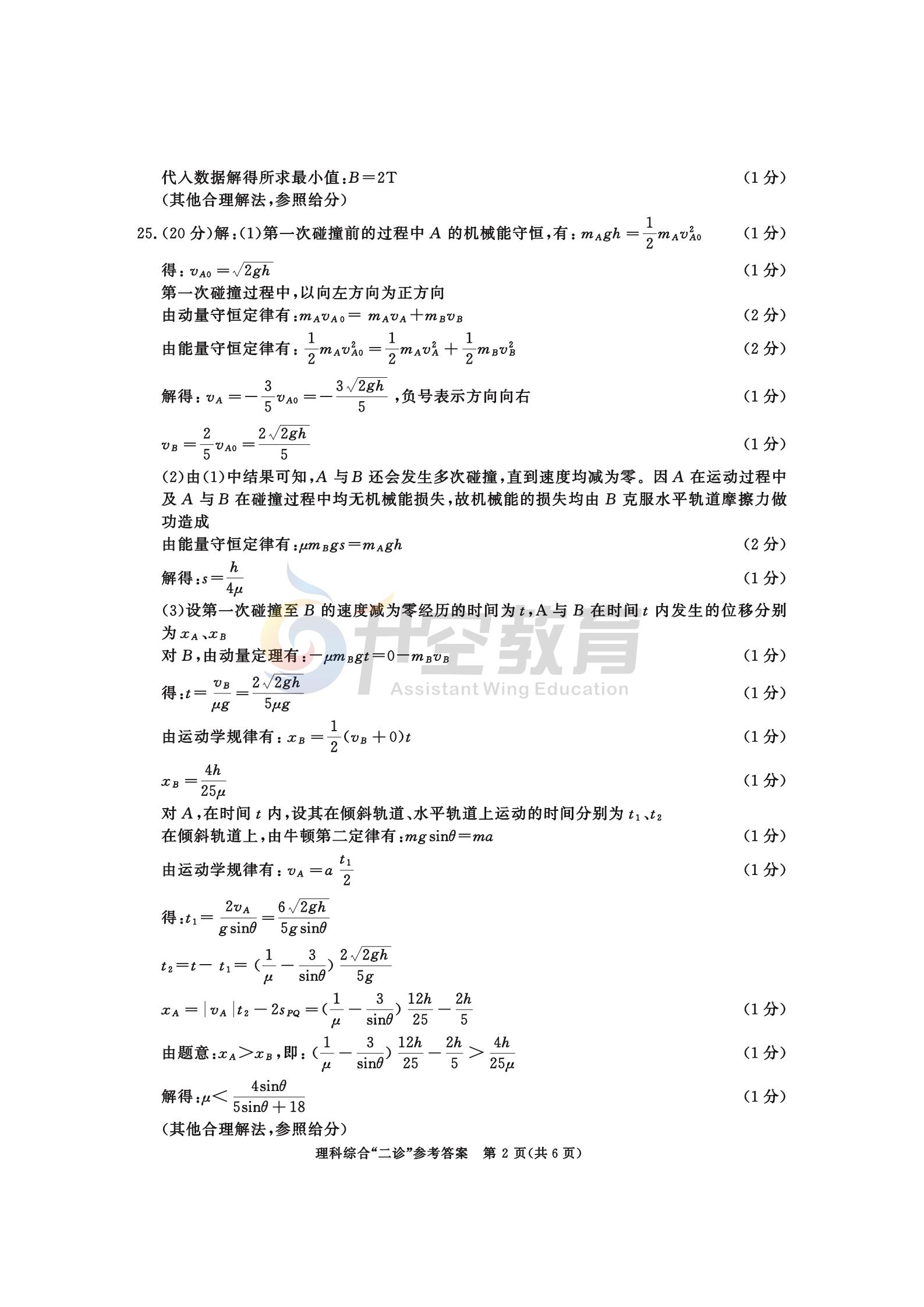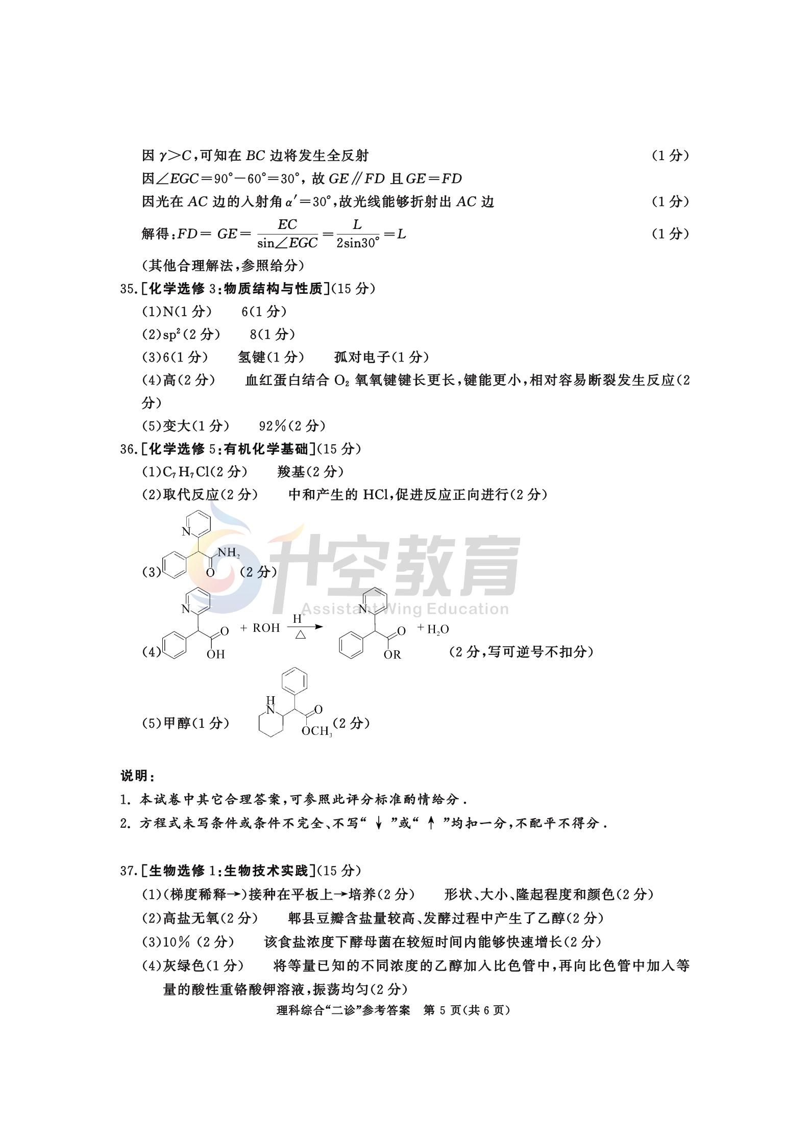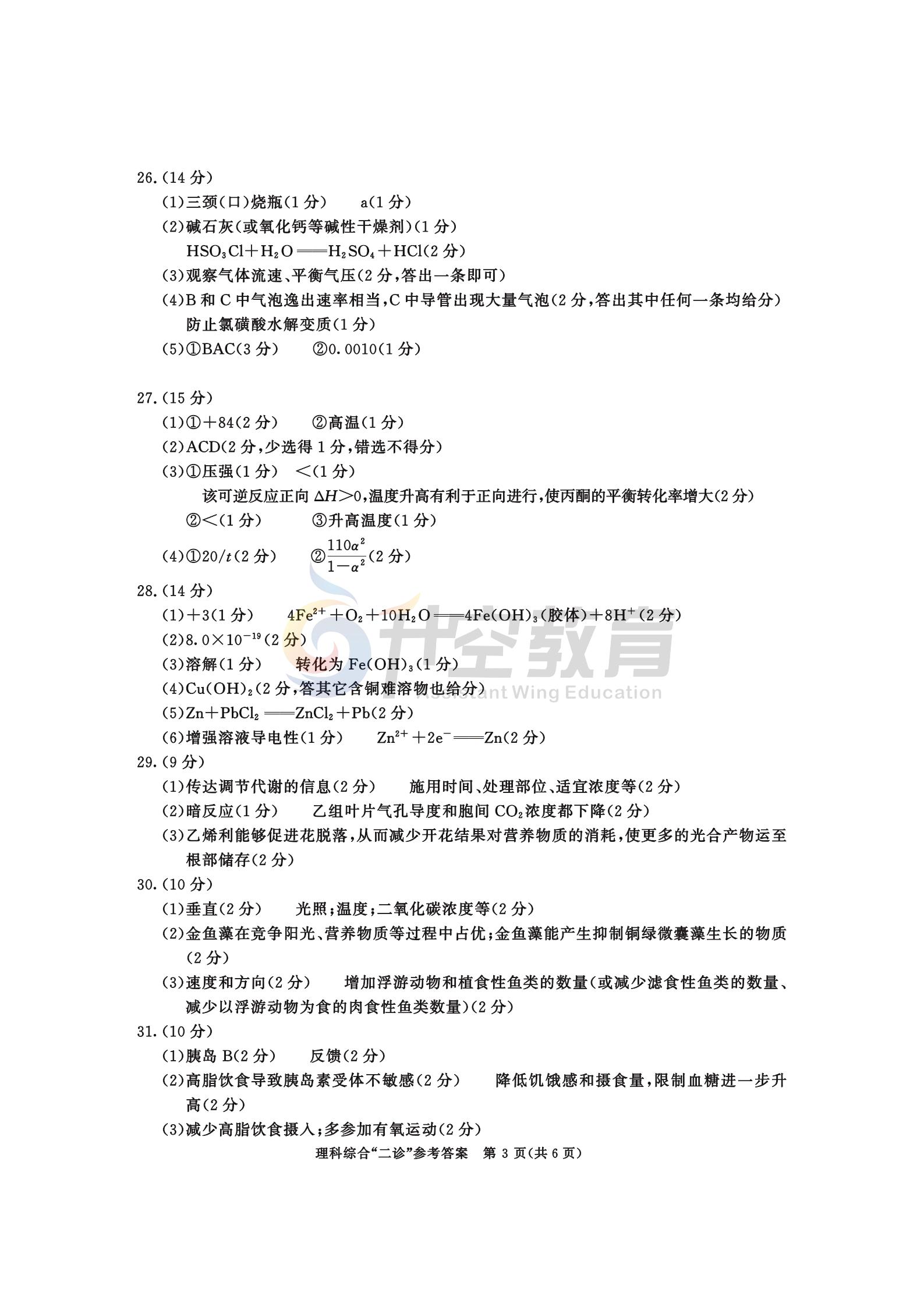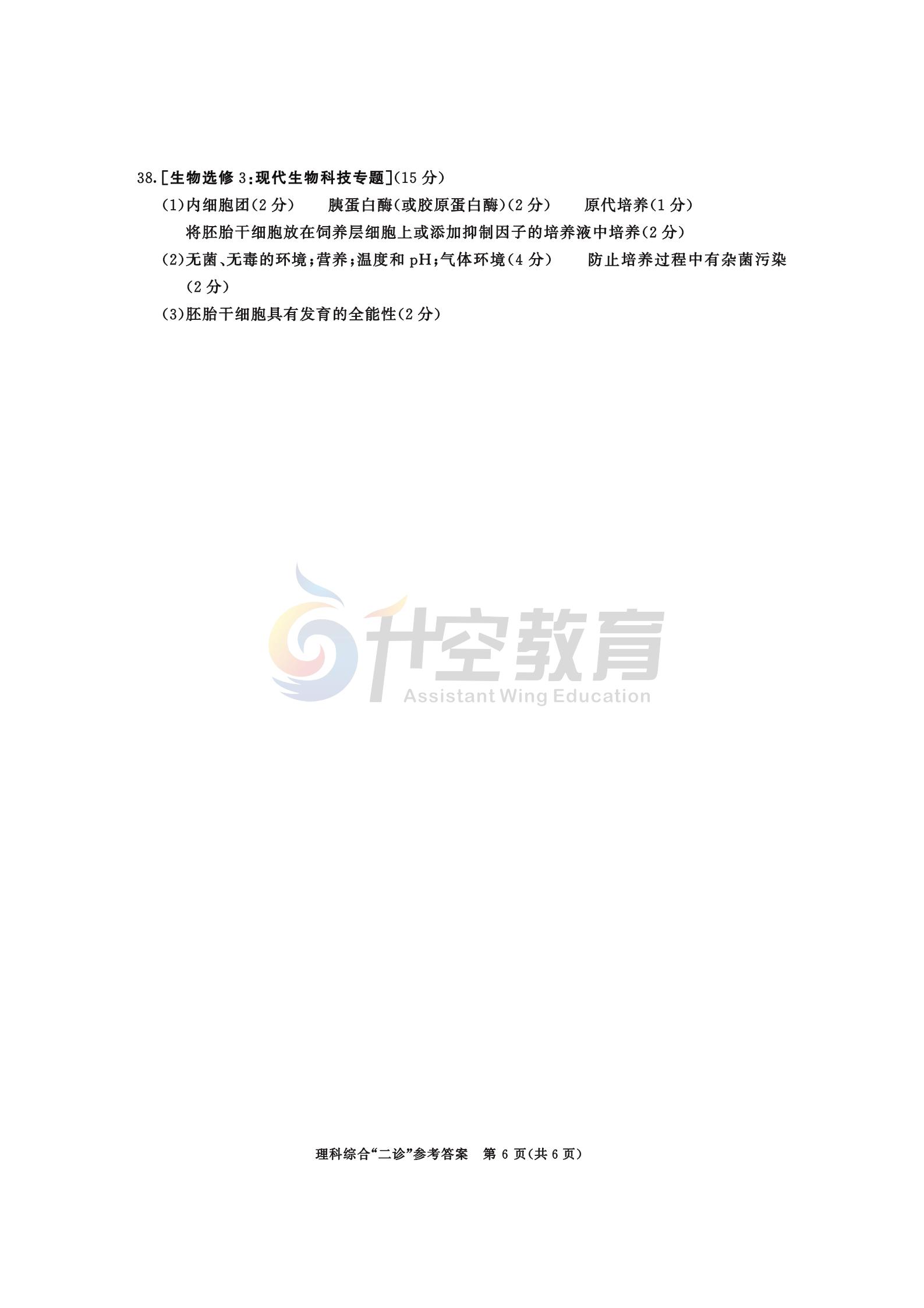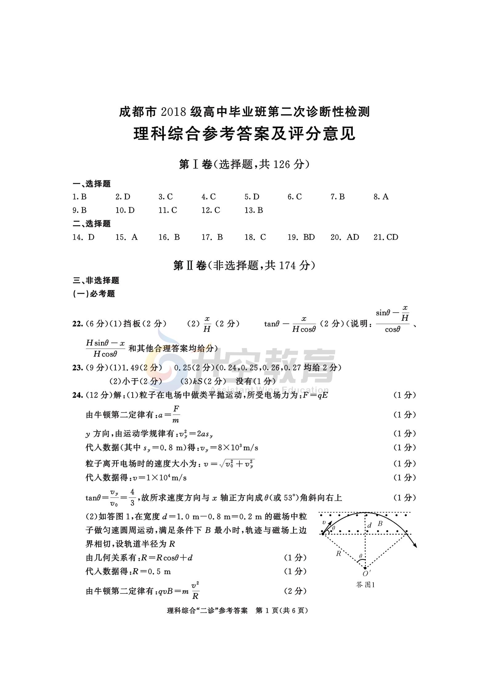 2021成都二诊理综答案: