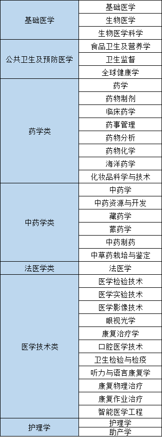从上图中可以看出,临床医学7个、口腔医学1个、公共卫生及预防医学1个、中医学13个、中西医结合1个共24个学科均可以考取相应执业医师资格证。这里要注意的是,由于临床医学培养目标的特殊性,其是唯一一个医学学科中可以跨学科考取执业医师资格证的学科。