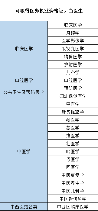 医学门类中有11个一级学科共58个二级学科,这58个二级学科中,并不是所有专业都能当医生,仅24个专业在学习后,可以取得执业医师资格证,有了当医生的资格。即将毕业的高三学生们看好了,想当医生,高考志愿填报时专业可别填错了。