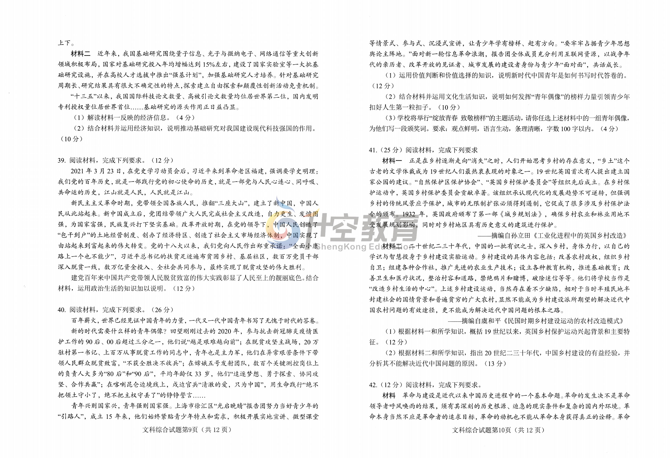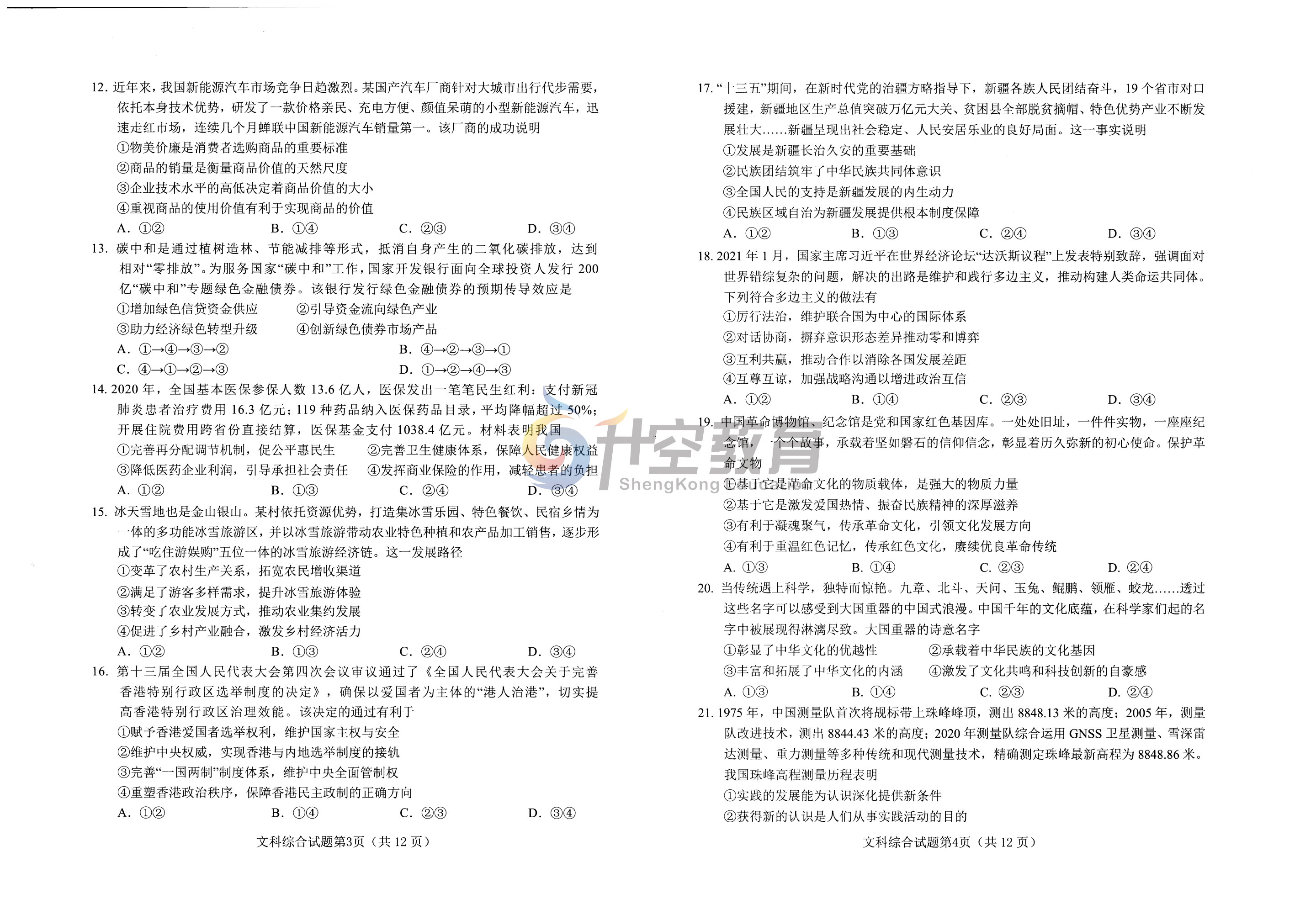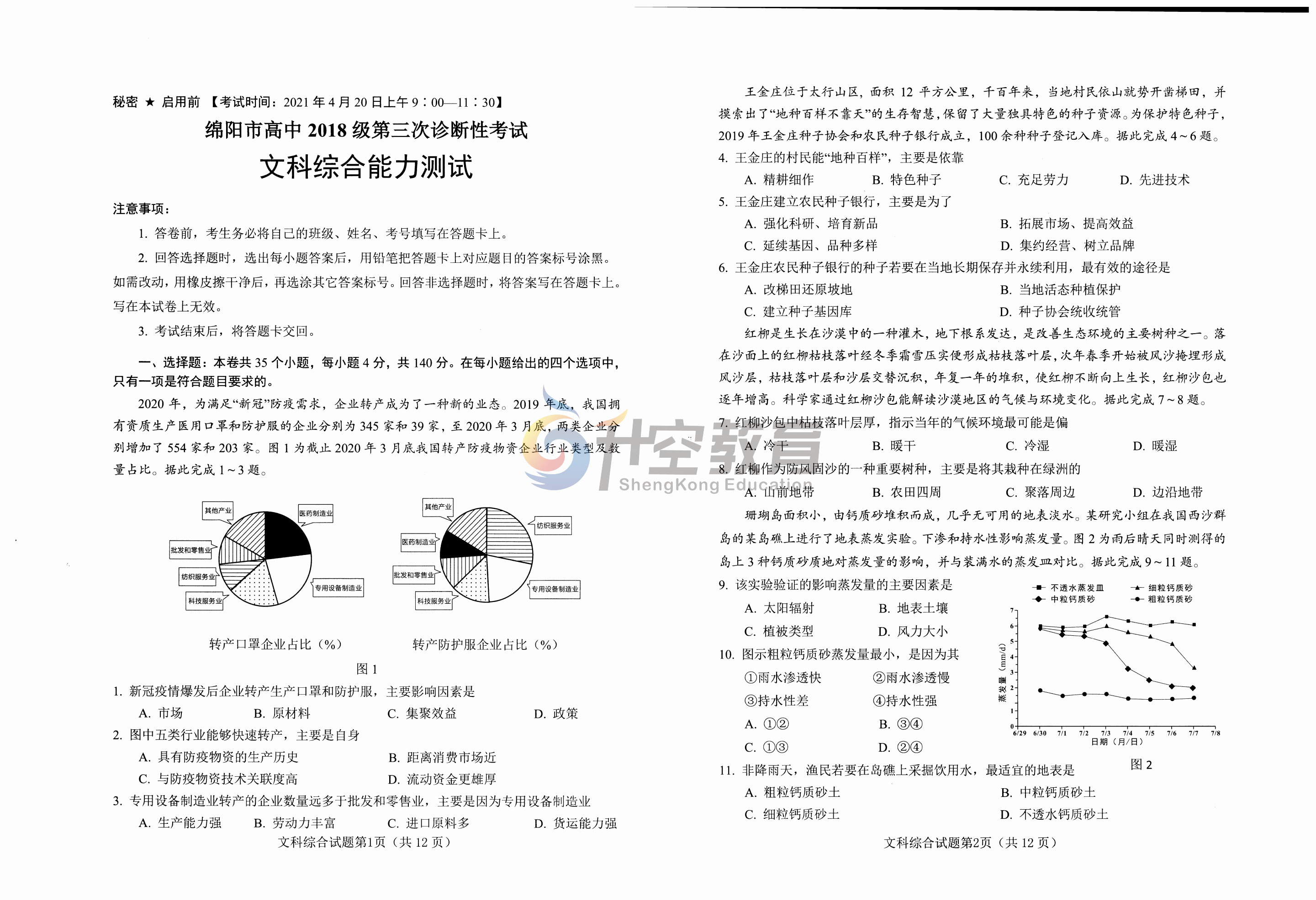 以下是本次2021绵阳三诊文综试题(图片可直接保存):