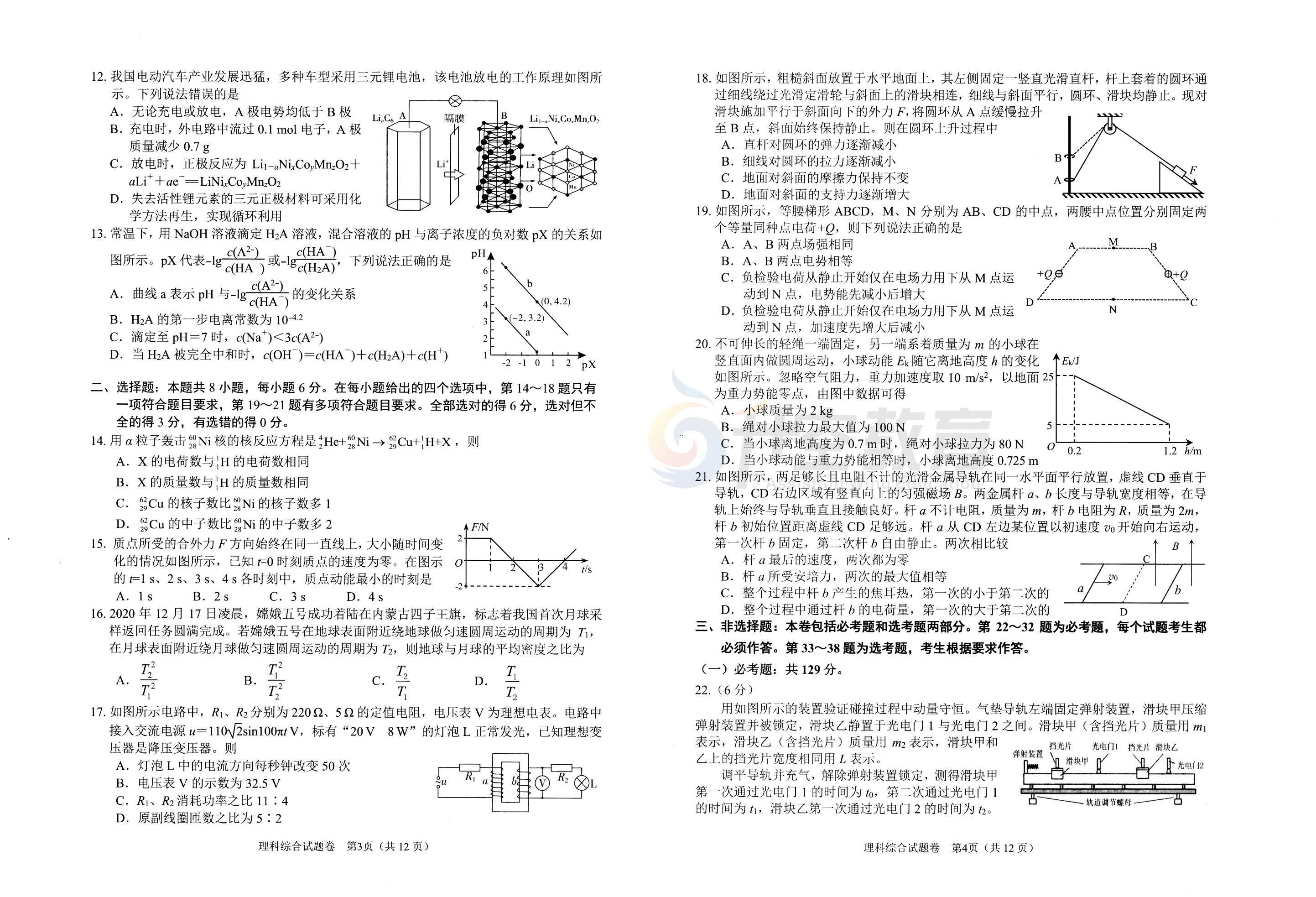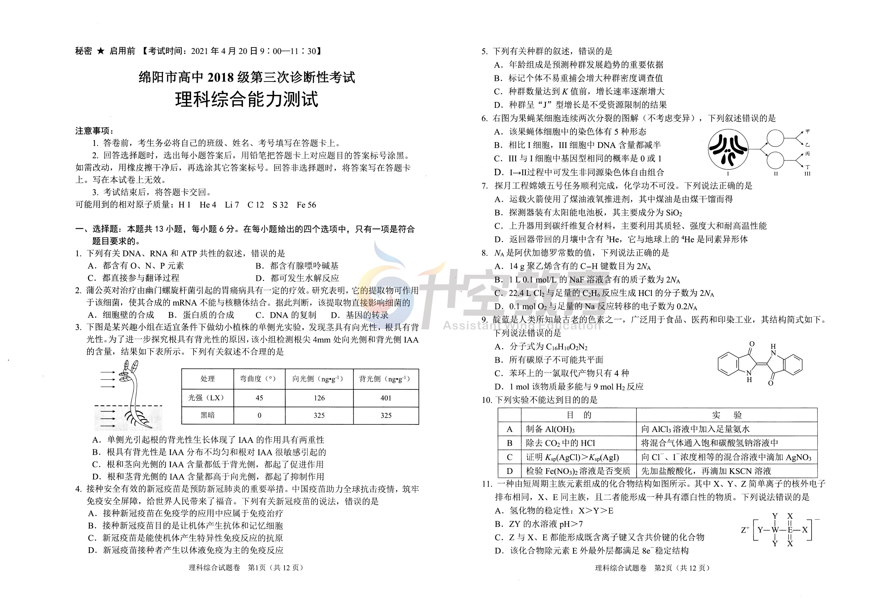 以下是本次2021绵阳三诊理综试题(图片可直接保存):