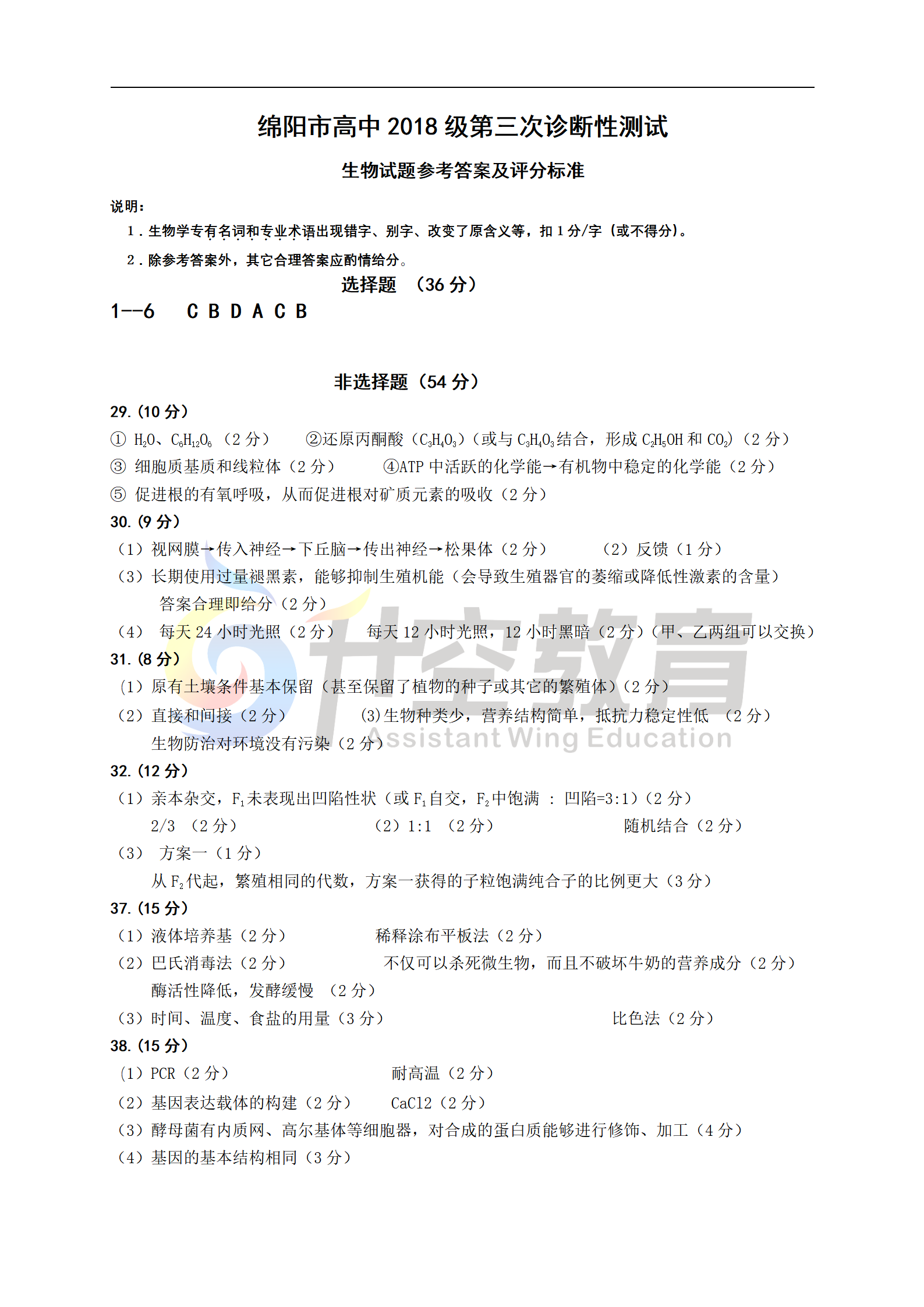 2021绵阳三诊理综答案(图片可直接保存):