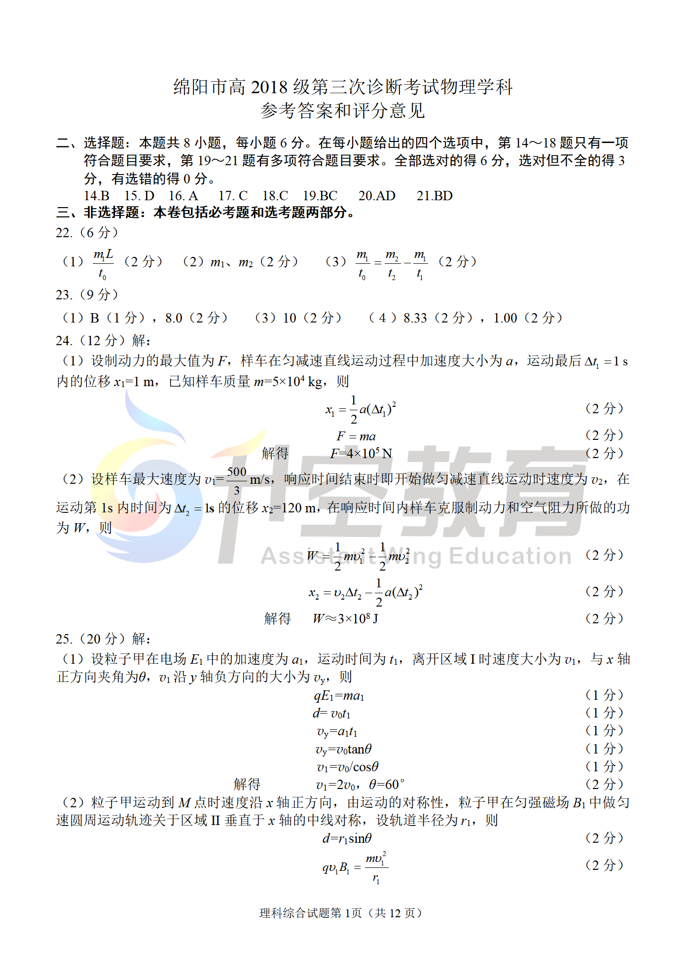 2021绵阳三诊考试已经结束,家长同学们是不是已经在积极的找试题对答案了?升空教育在此第一时间将绵阳三诊考试的试卷与答案上传,供大家查看、下载。