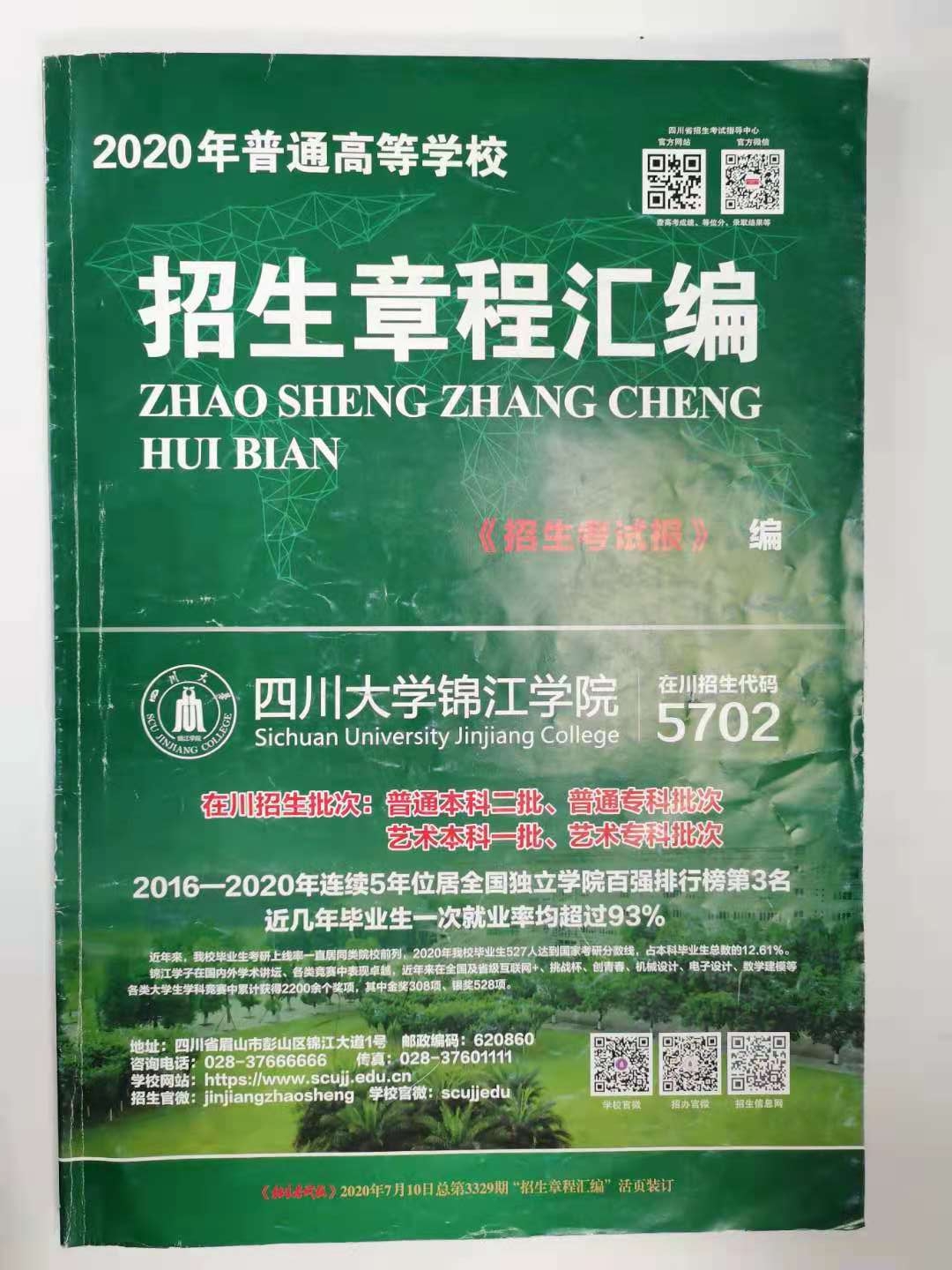 《招生章程》合订本主要是收集了在川招生的院校招生章程,这个章程是院校方给出的招生规则,考生在遵守官方的总体规则以外,还要重点参照院校方给出的招生录取规则。比如需要重点注意的是:院校培养时间,学费,授予学位,就读校区,加分政策,分配专业的方式等。一些同学分数考得挺高,但忽略了院校招生章程,也容易吃亏。比如:有院校《招生章程》明确规定,本校师范类专业对听力有要求,但某考生听力体检不达标任然选择了该专业且不服从调剂,结果被院校退档,这种情况确实让人惋惜。