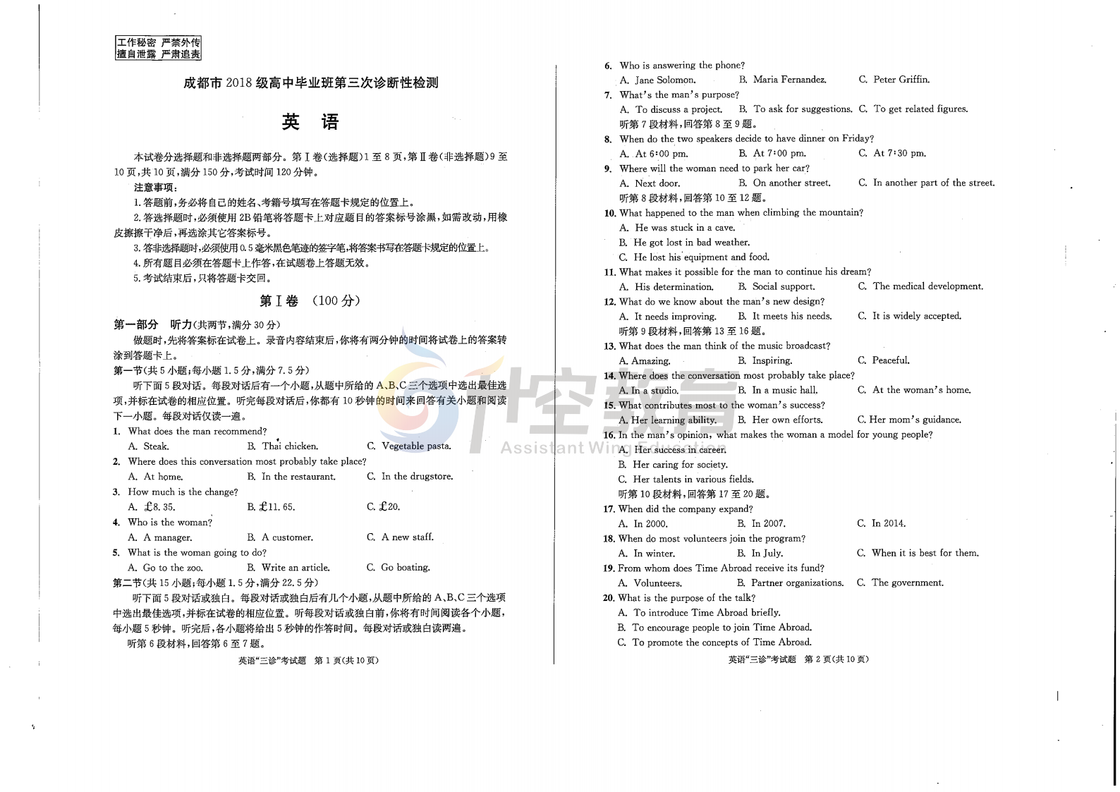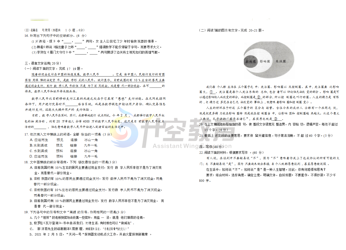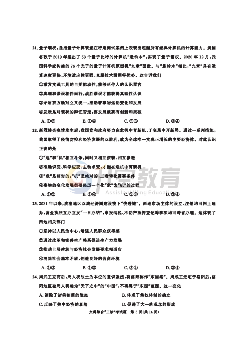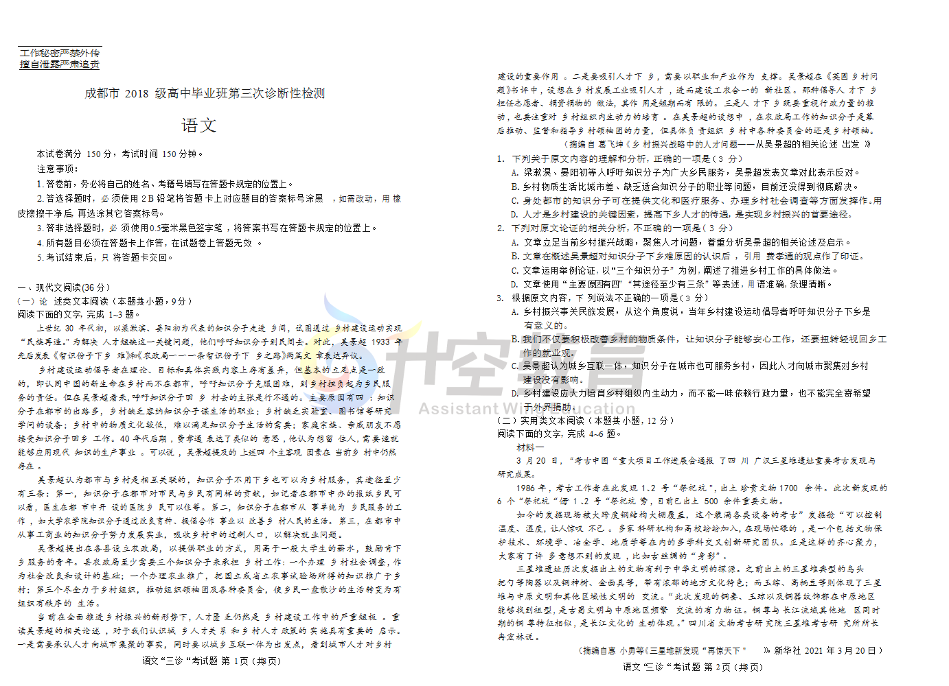 2021届成都三诊这两天考试,从试卷命题来看,比较契合考试大纲,也没有出现过多偏题、怪题。但难度区分度还是有的,同学们到了目前这个阶段,要多训练做题技巧,比如:细审题,快作答;先易后难;遇题蒙圈换角度思考等等。希望同学们这次能考出信心,考出水平,以三诊为跳板,决胜高考!