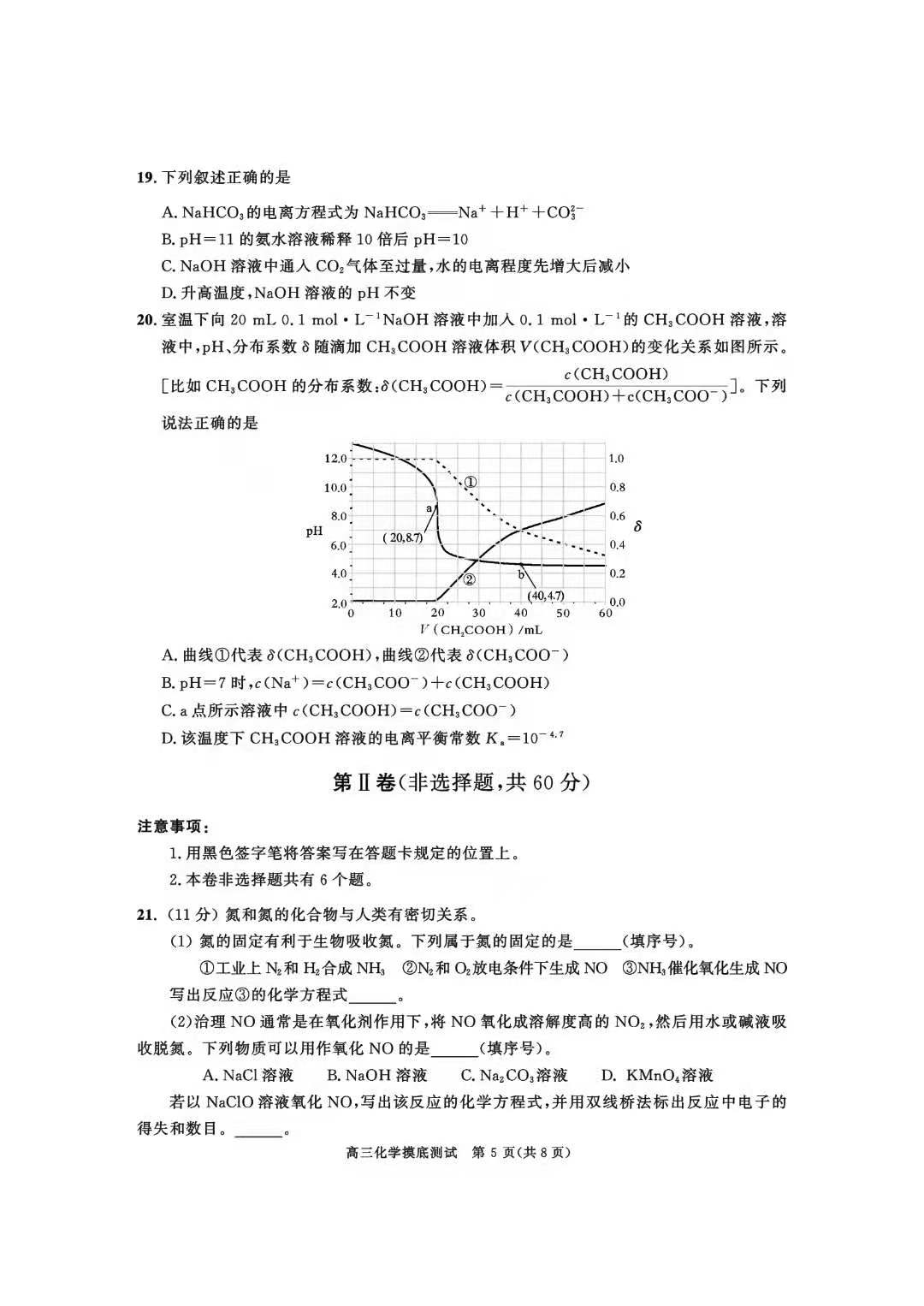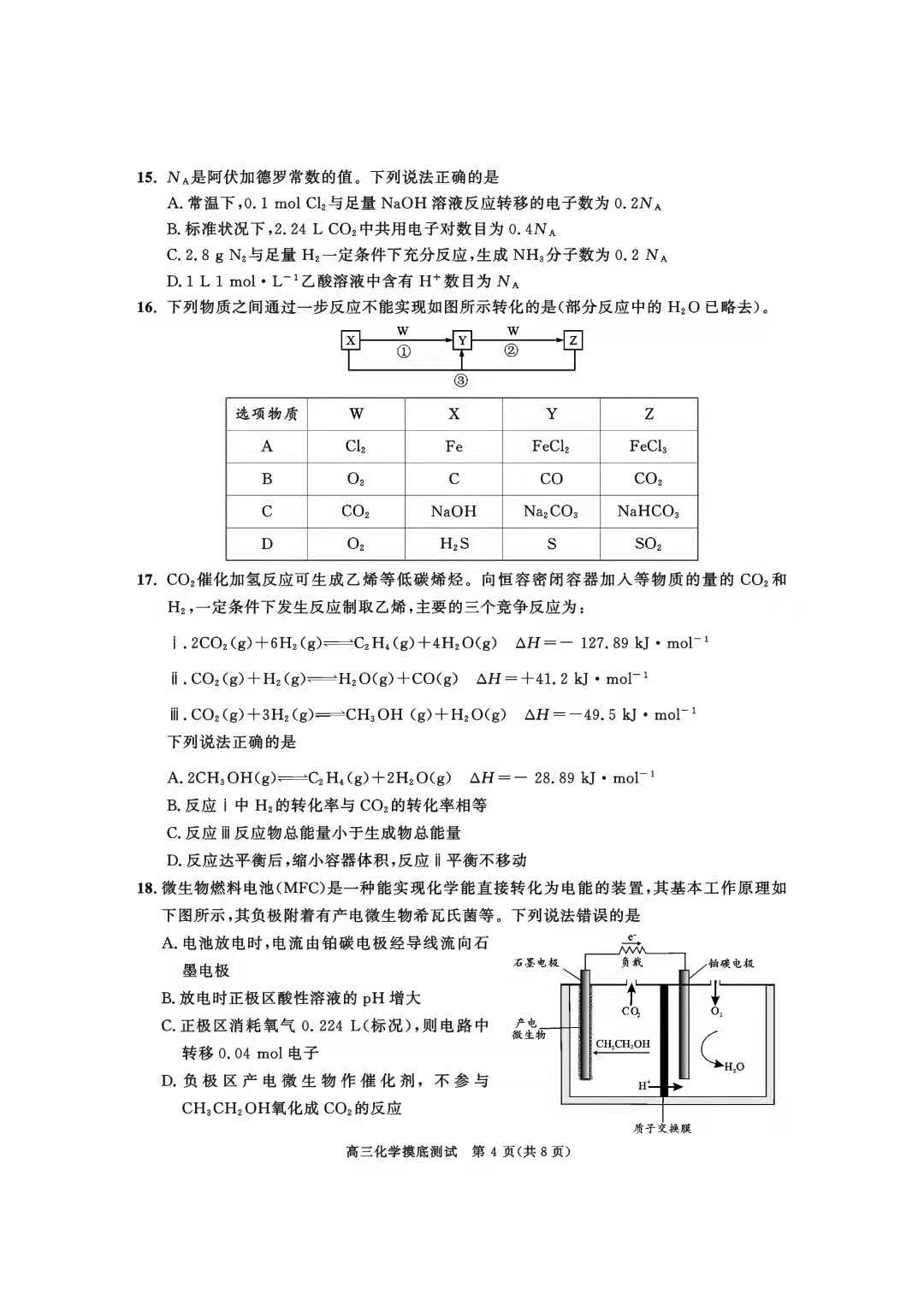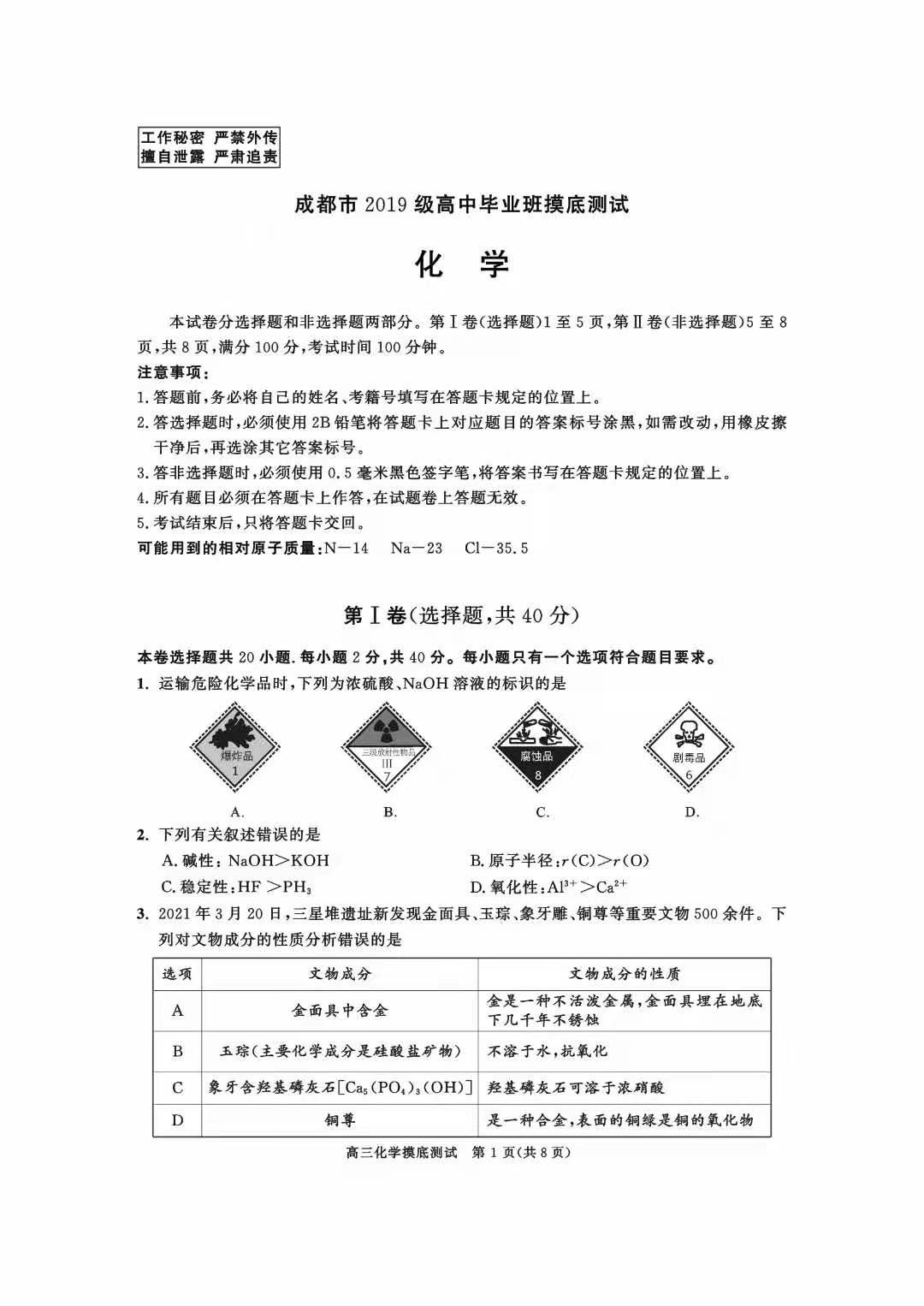 如今成都零诊考试已经结束,试题也相继公布,以下是本次新高三成都零诊化学试题: