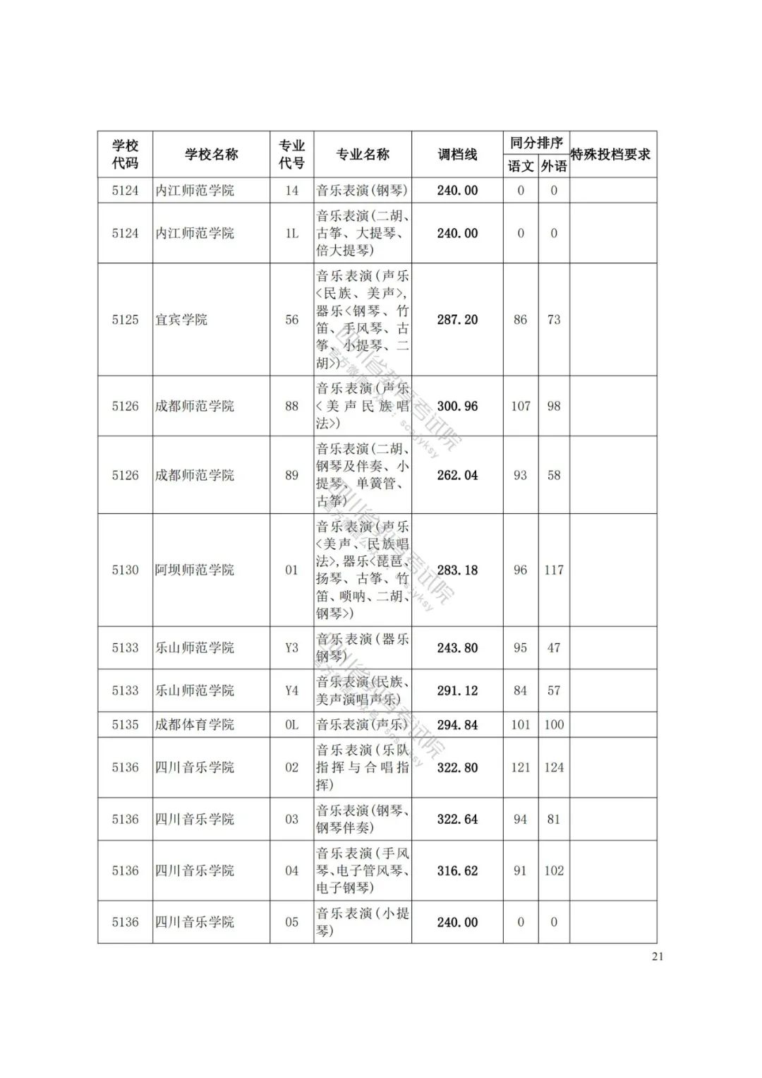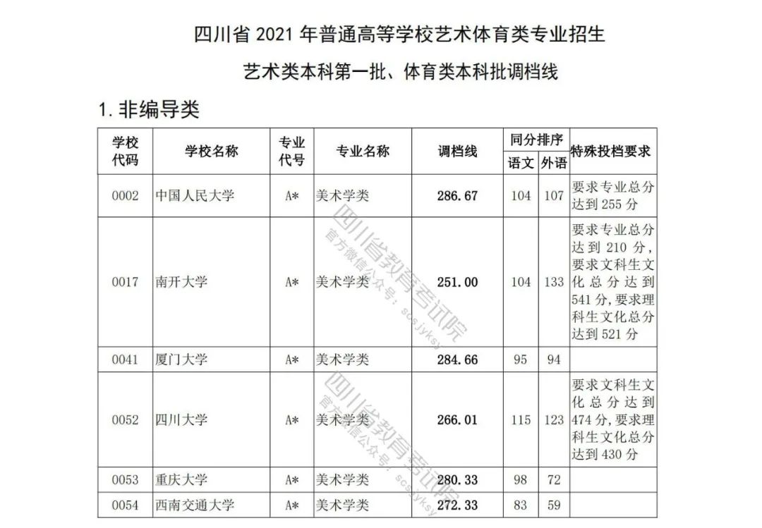 四川省2021年艺术本科第一批与体育本科批已于7月20日投档录取。为方便广大考生和家长及时了解录取信息,省教育考试院按非编导类和编导类发布了艺体类分校、分专业类调档线。