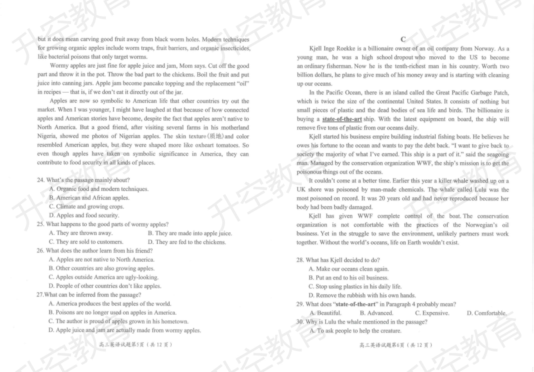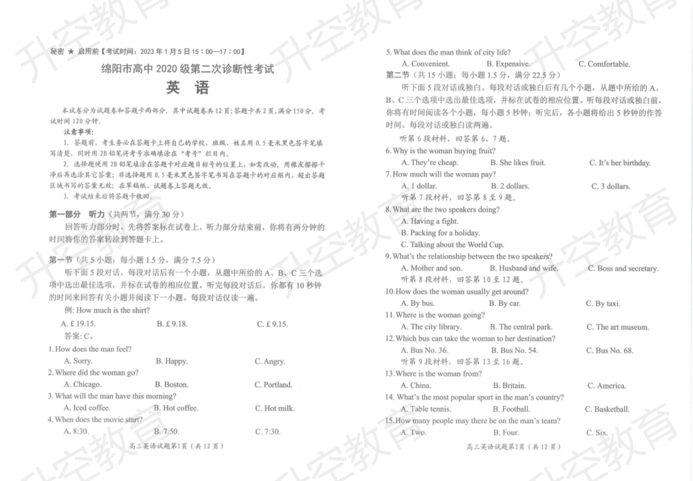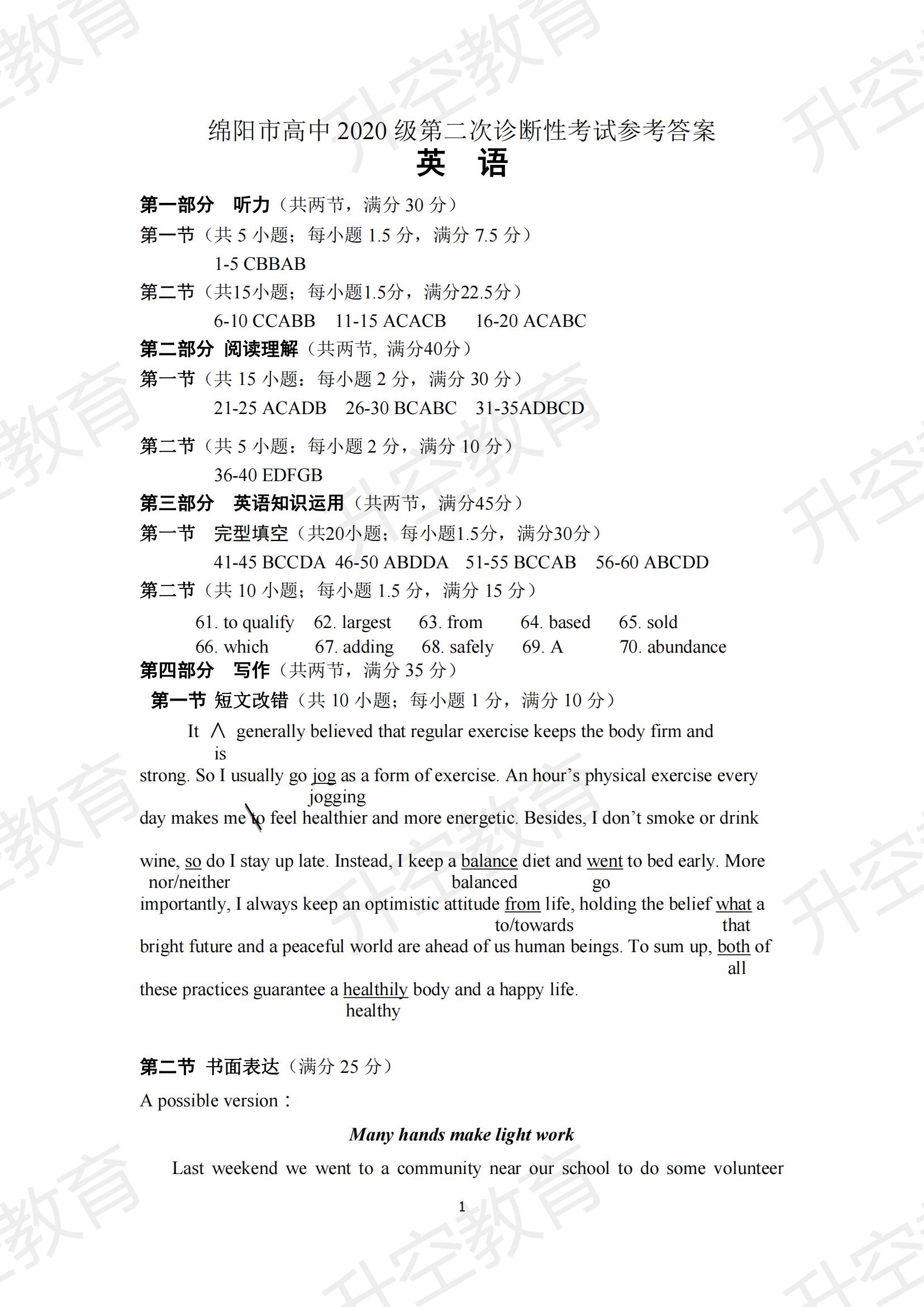 升空教育老师在此将绵阳二诊的各科试题及答案均发布此处,供大家取阅。还没有绵阳二诊试题的答案的家长、同学也可以添加以下老师索要高清试卷!