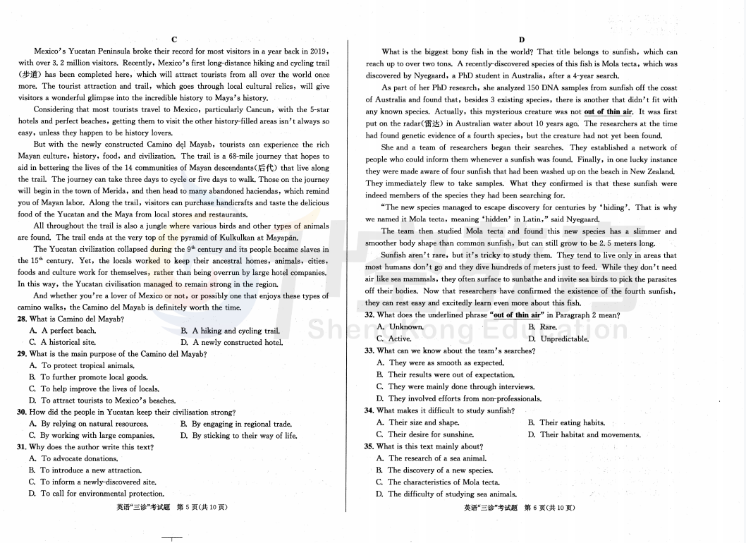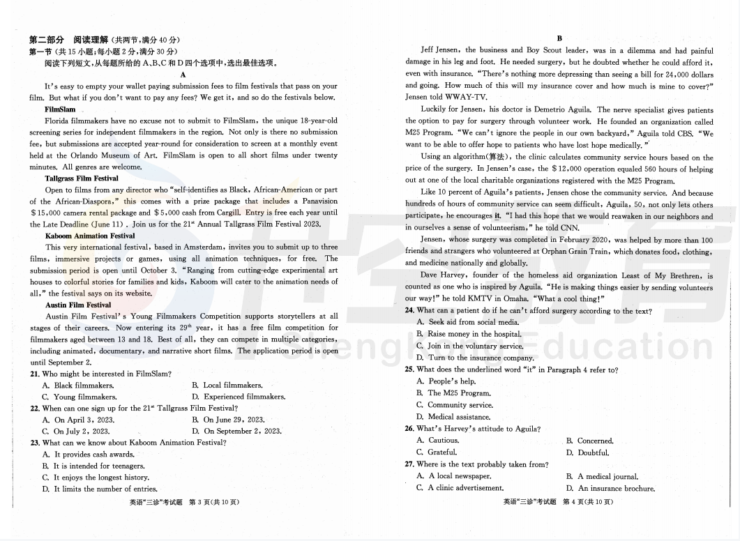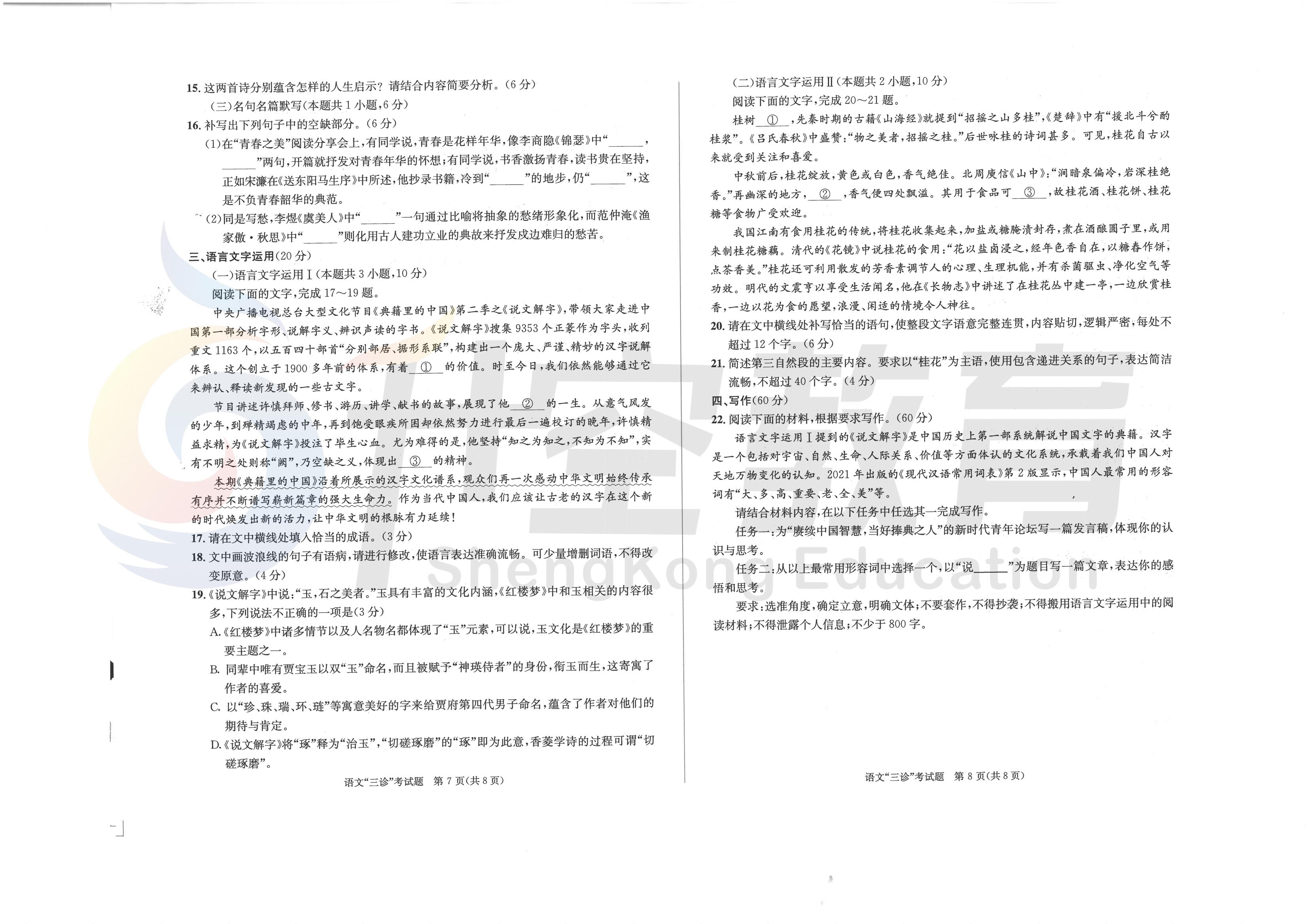 23届成都三诊各科答案点这里:23届成都三诊答案