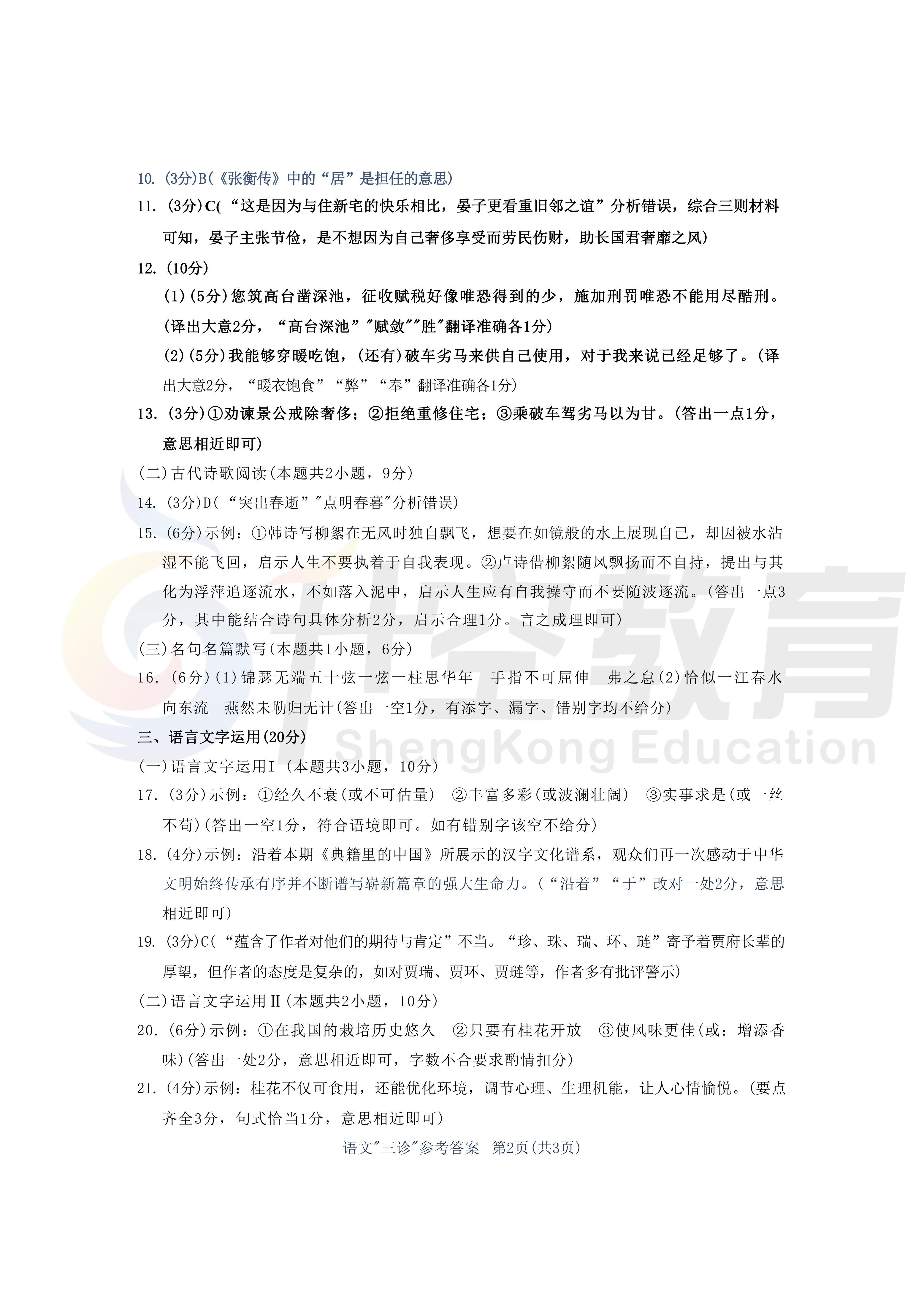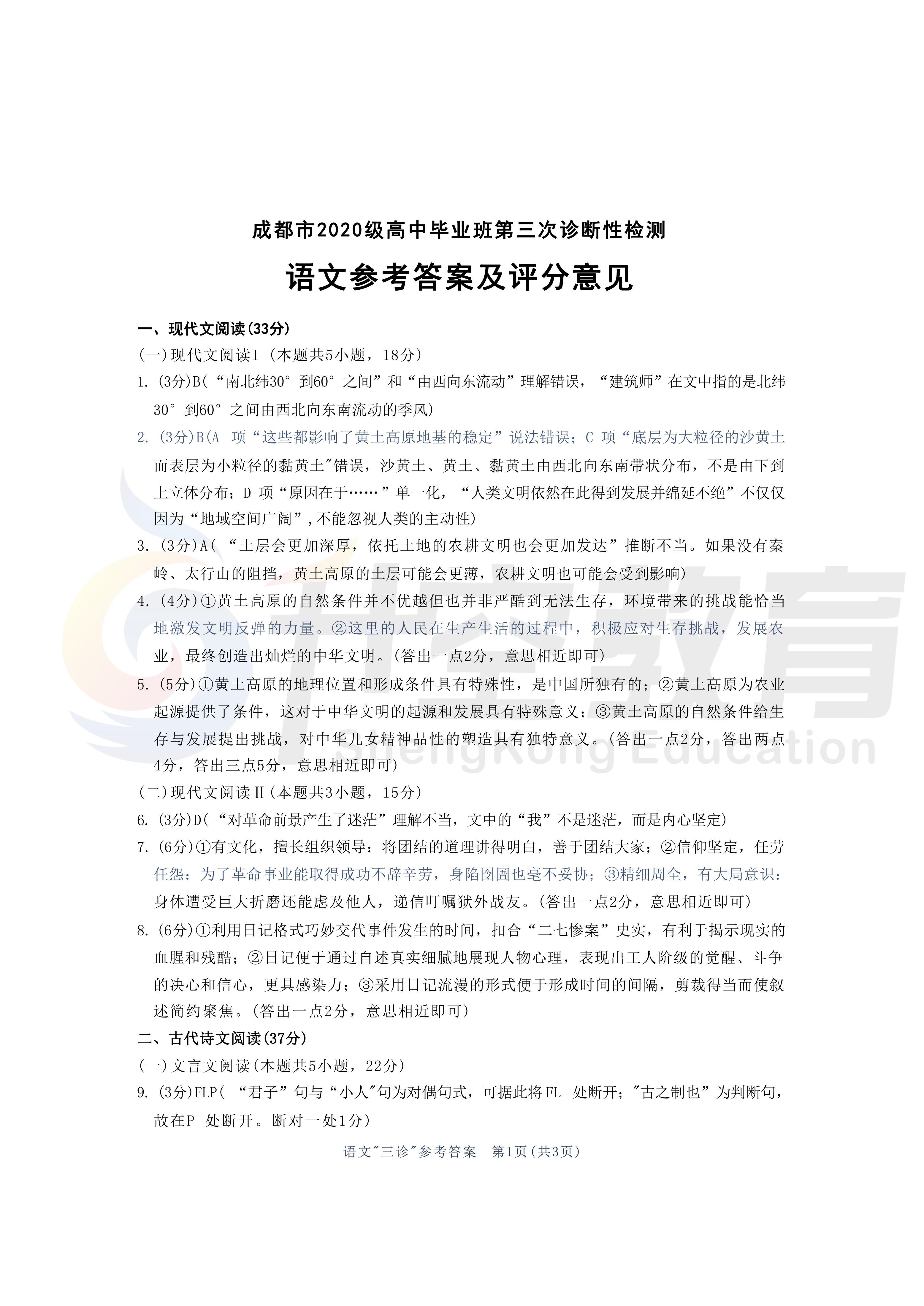 成都三诊语文答案:
