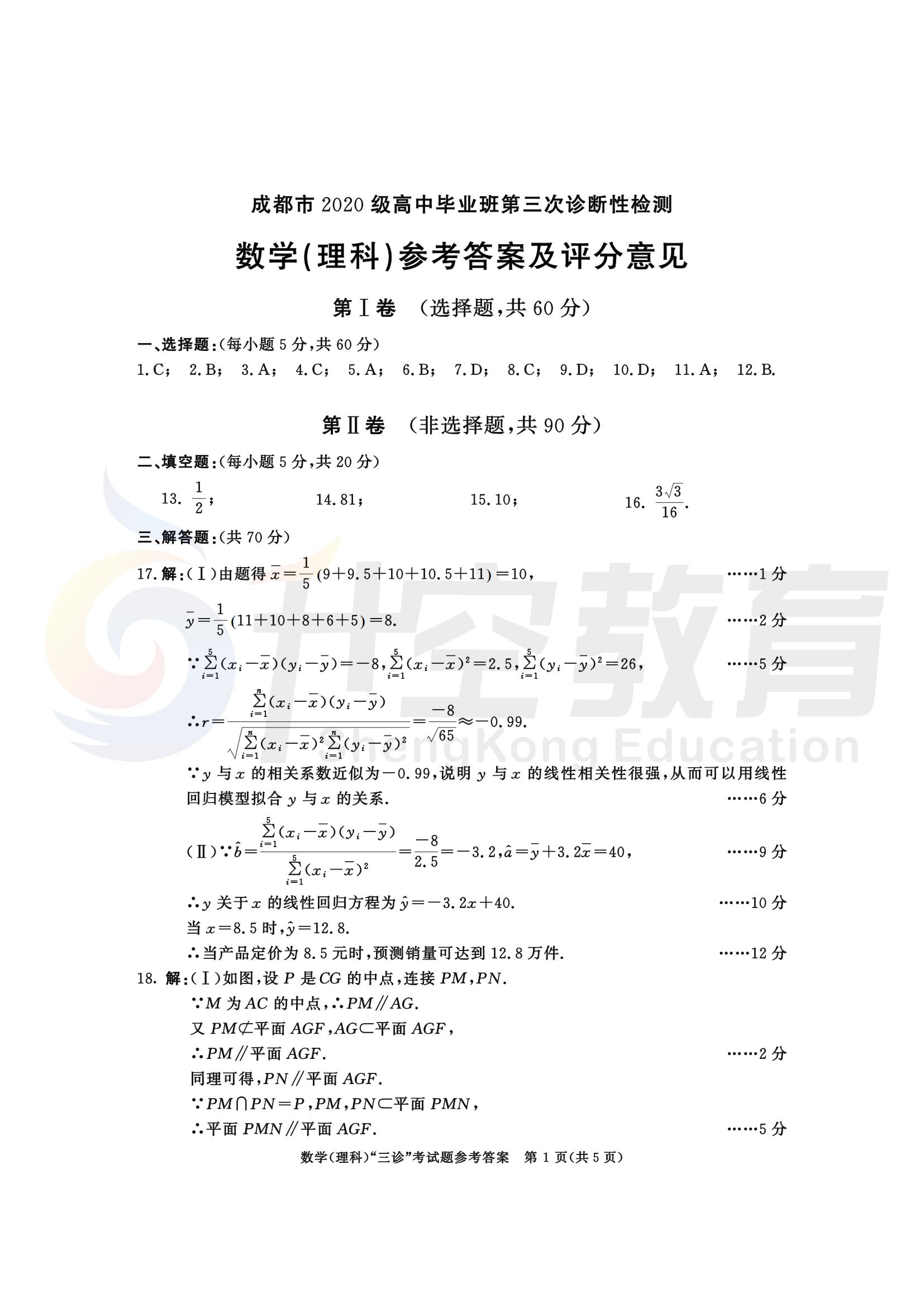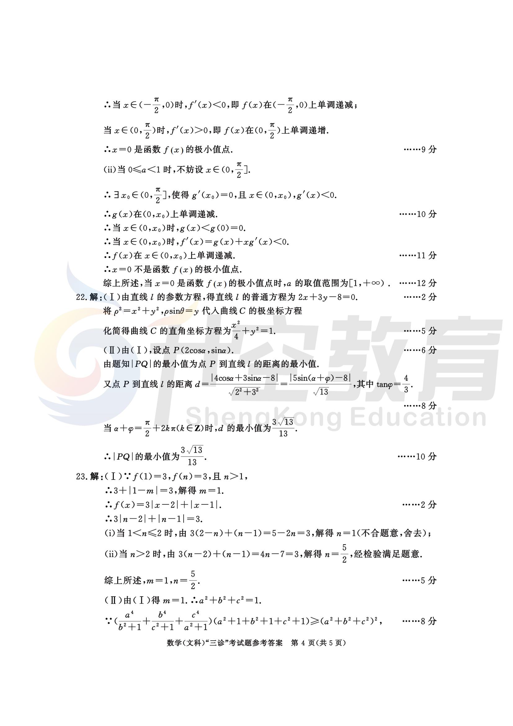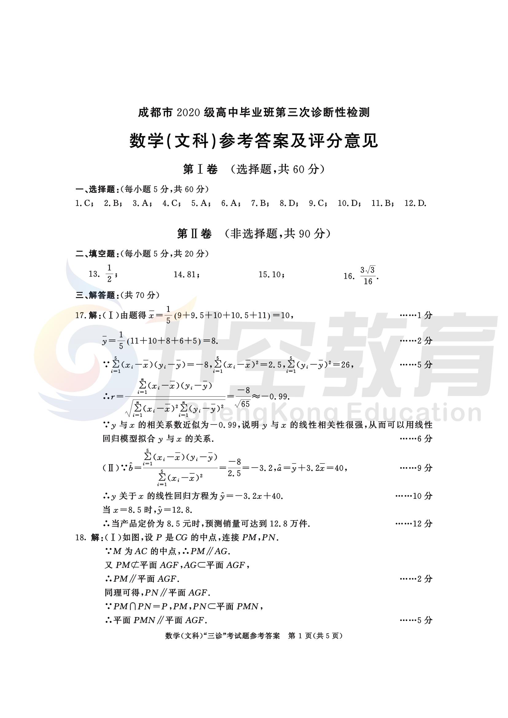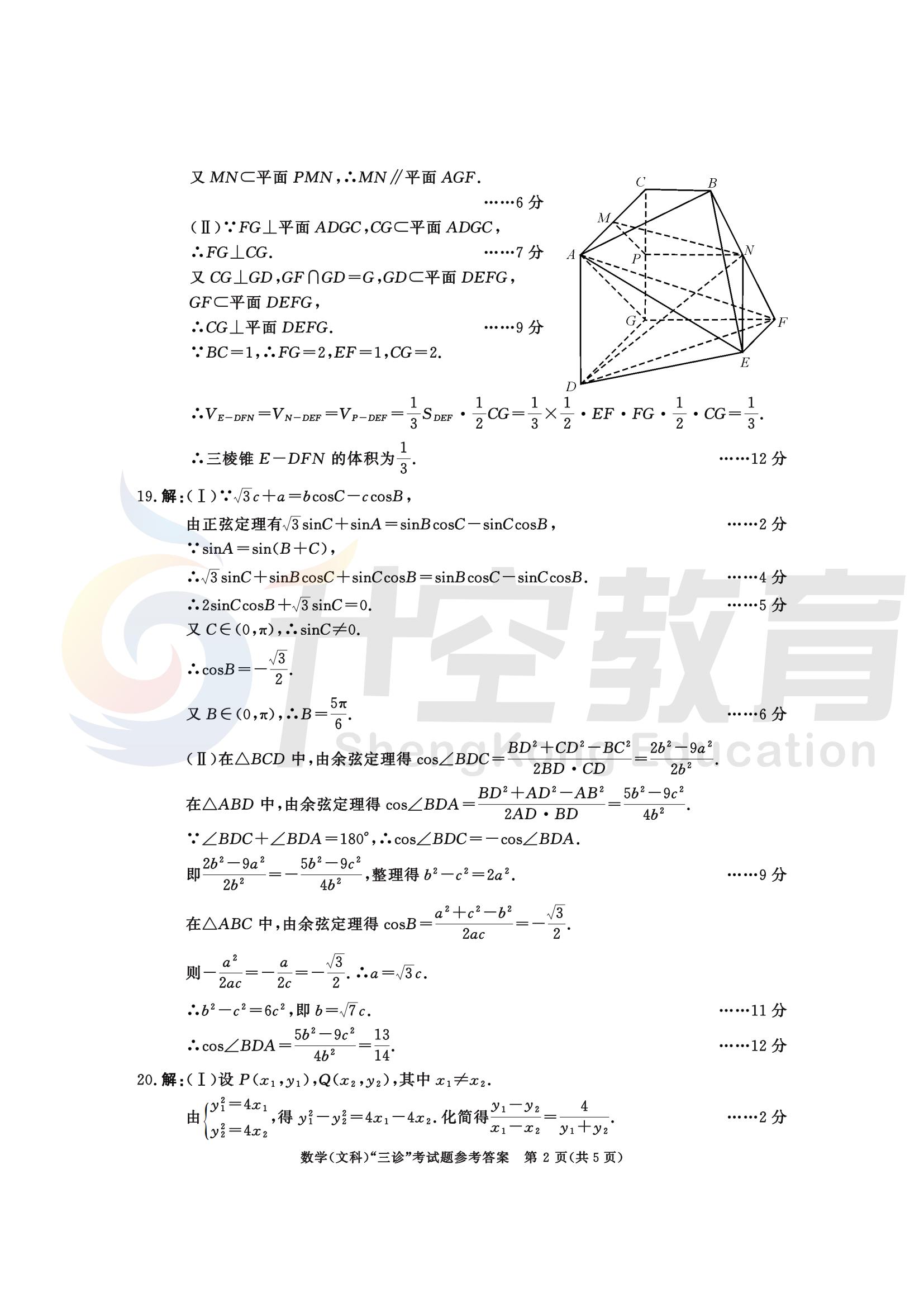 成都三诊数学(文)答案: