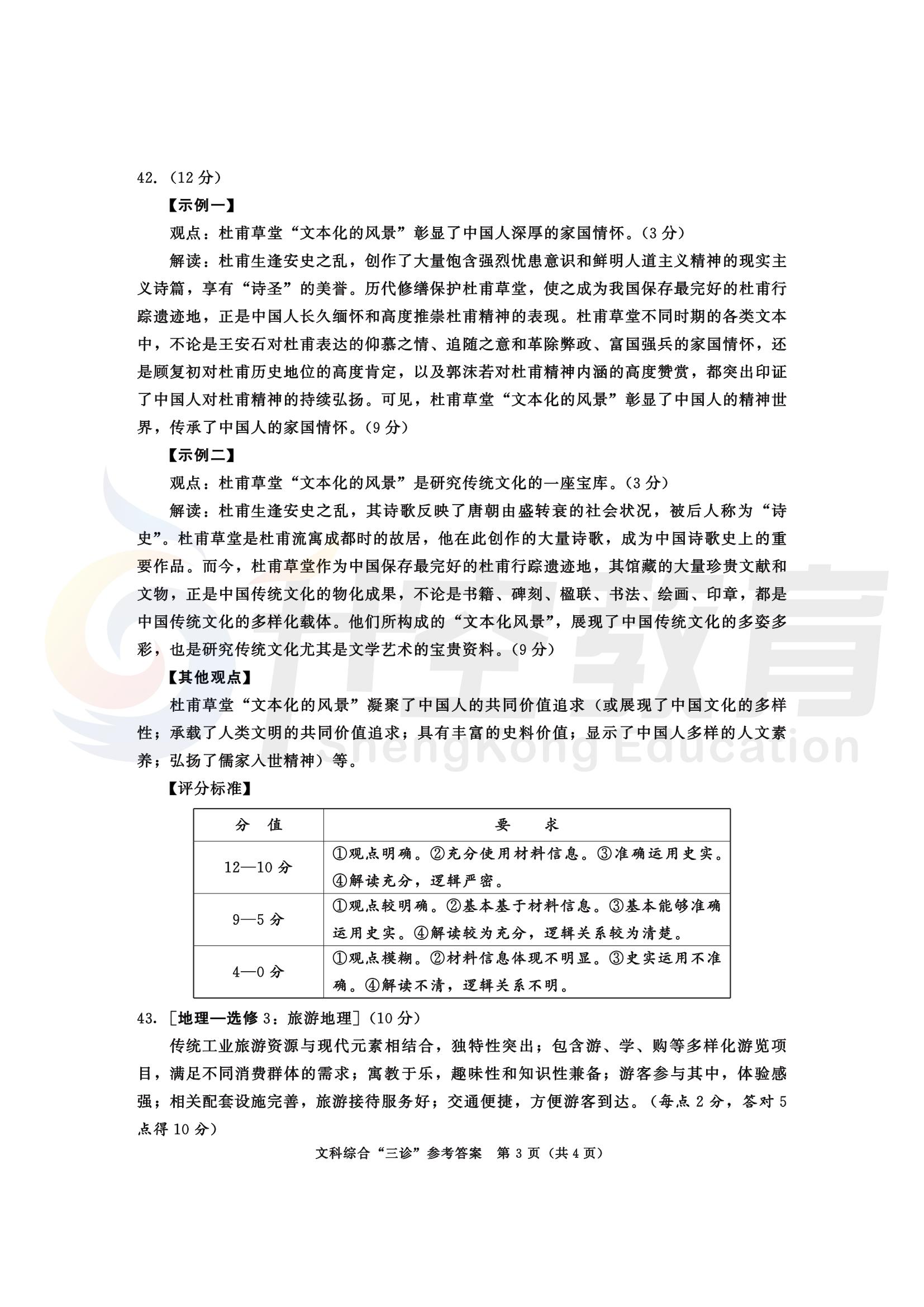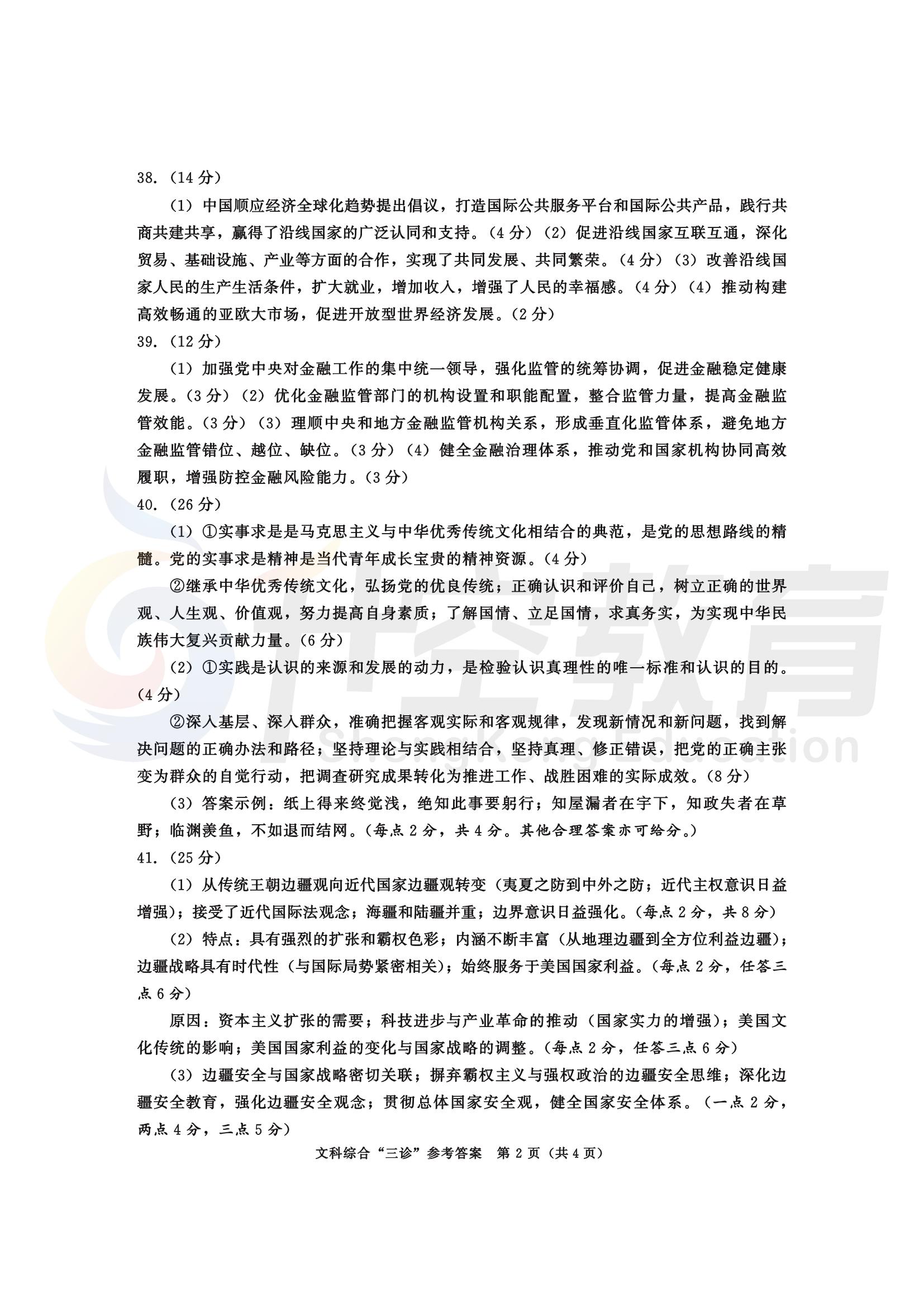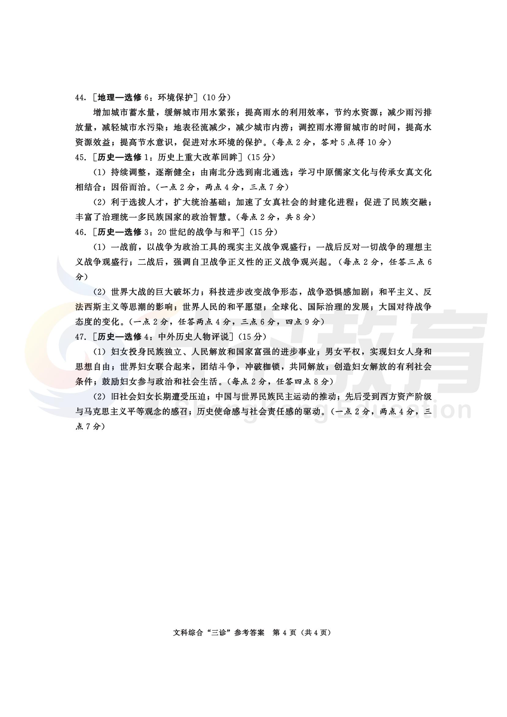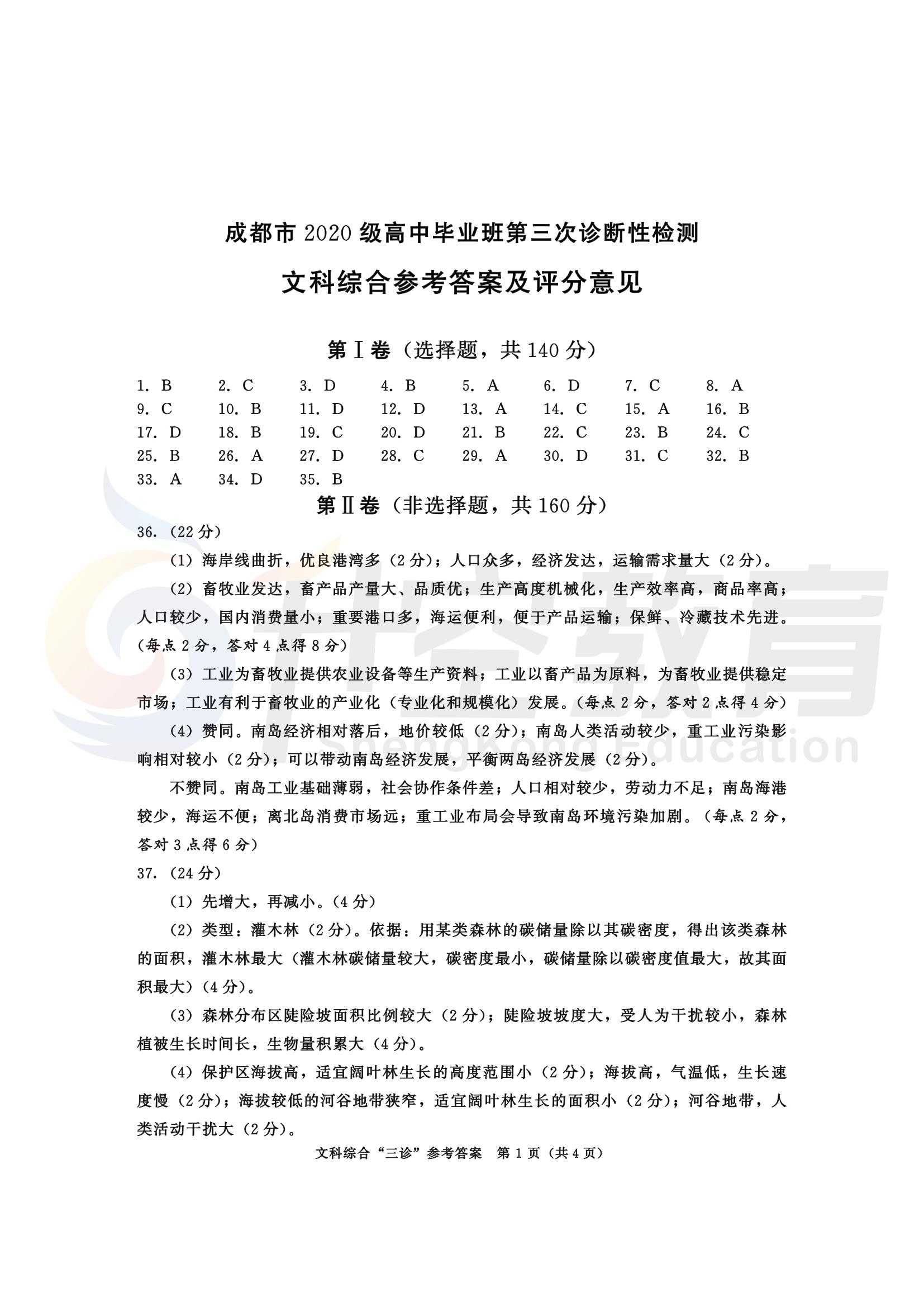 成都三诊文综答案: