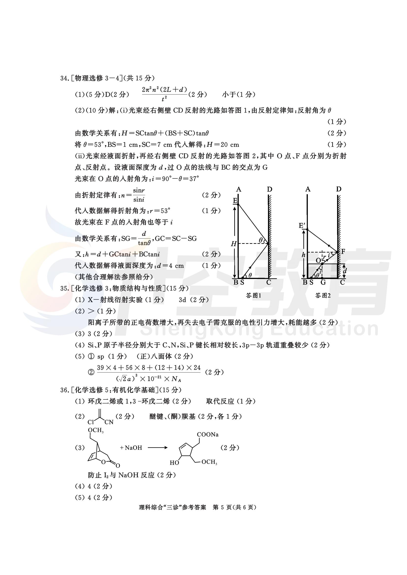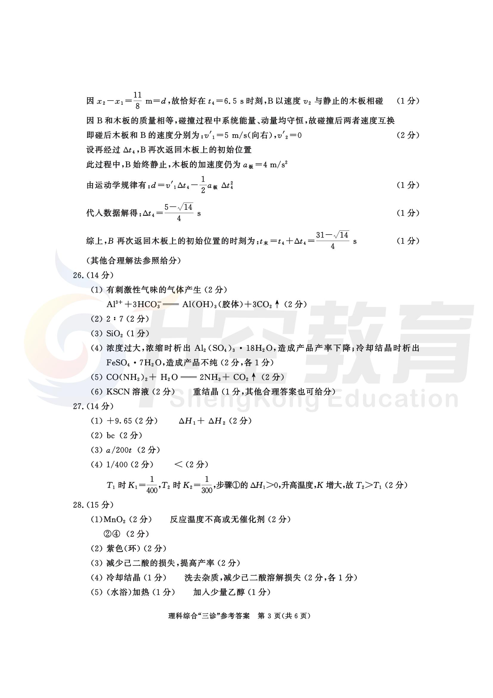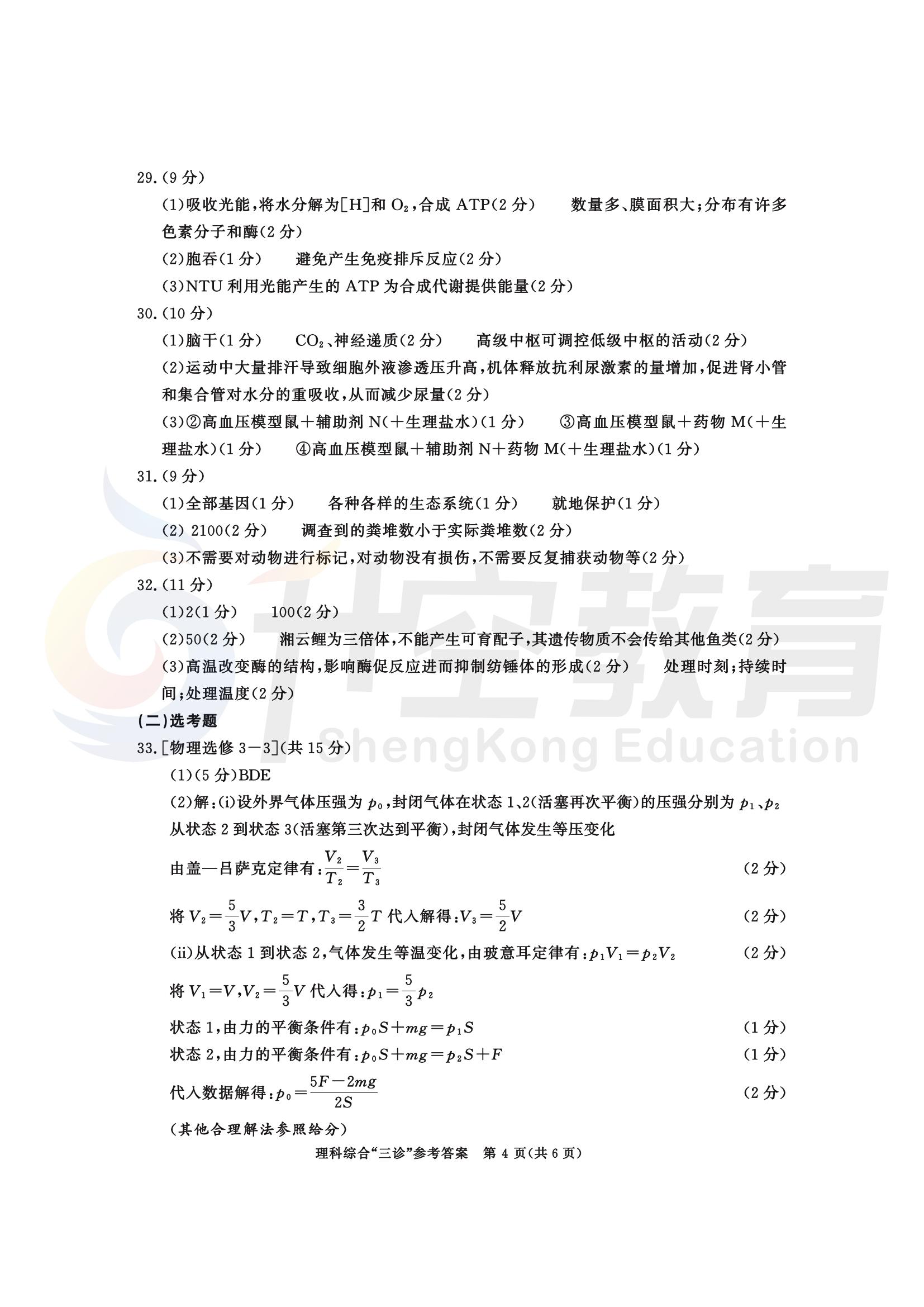 成都三诊理综答案: