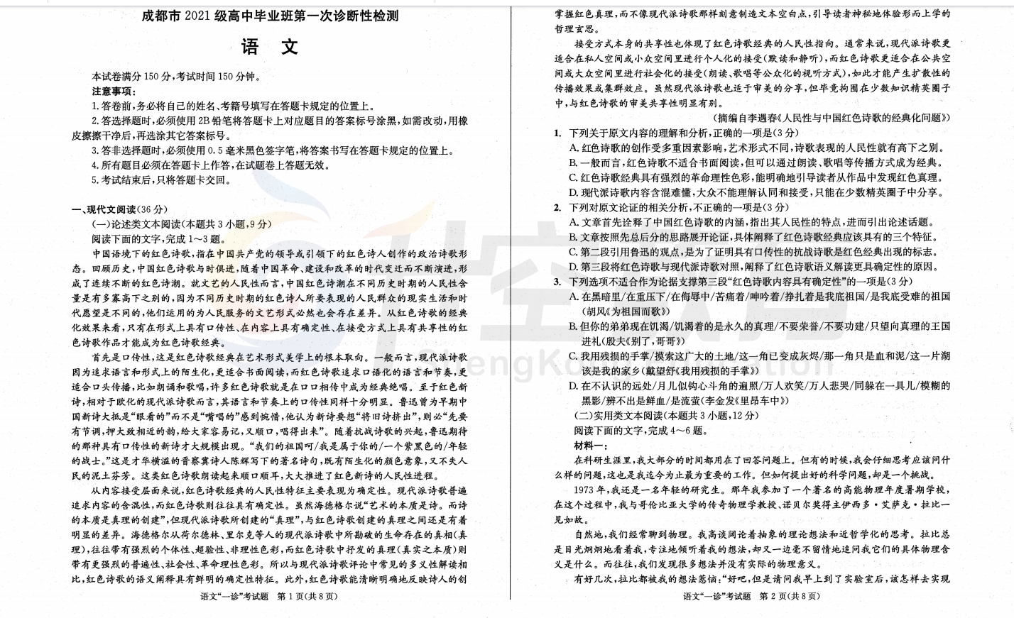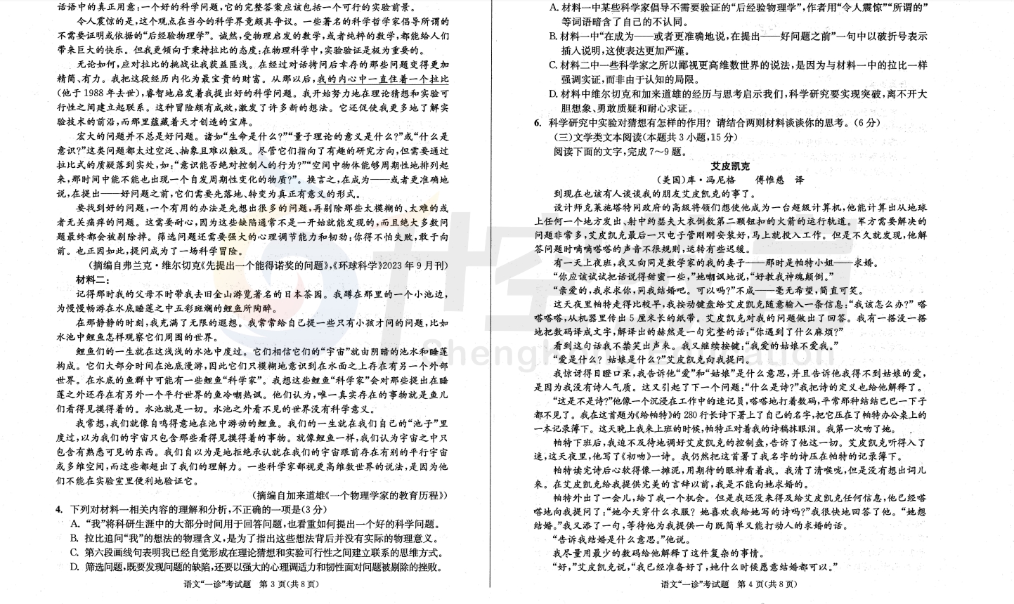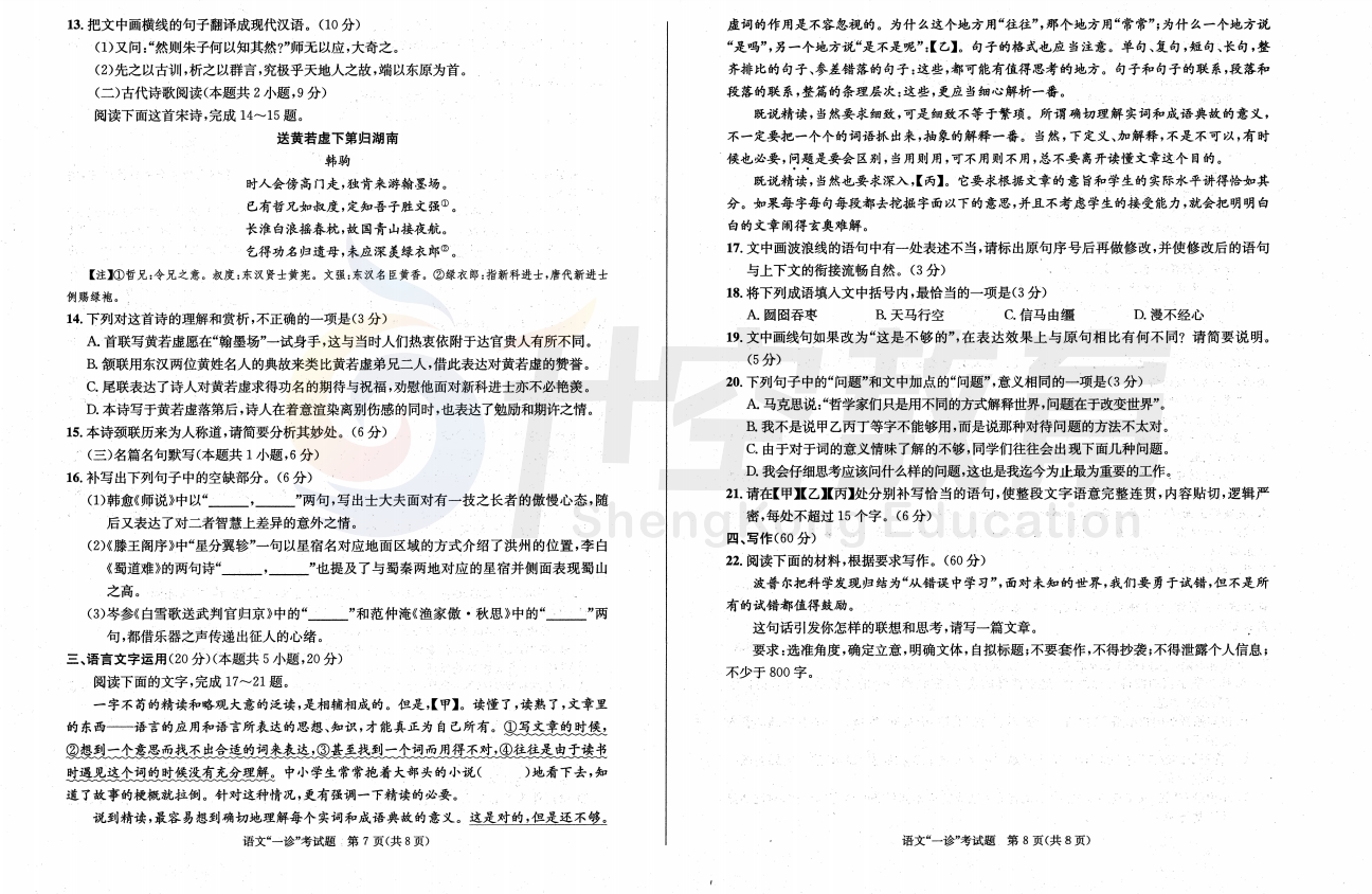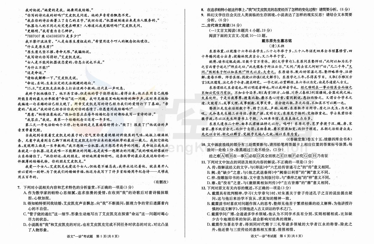 2024届成都一诊语文试题: