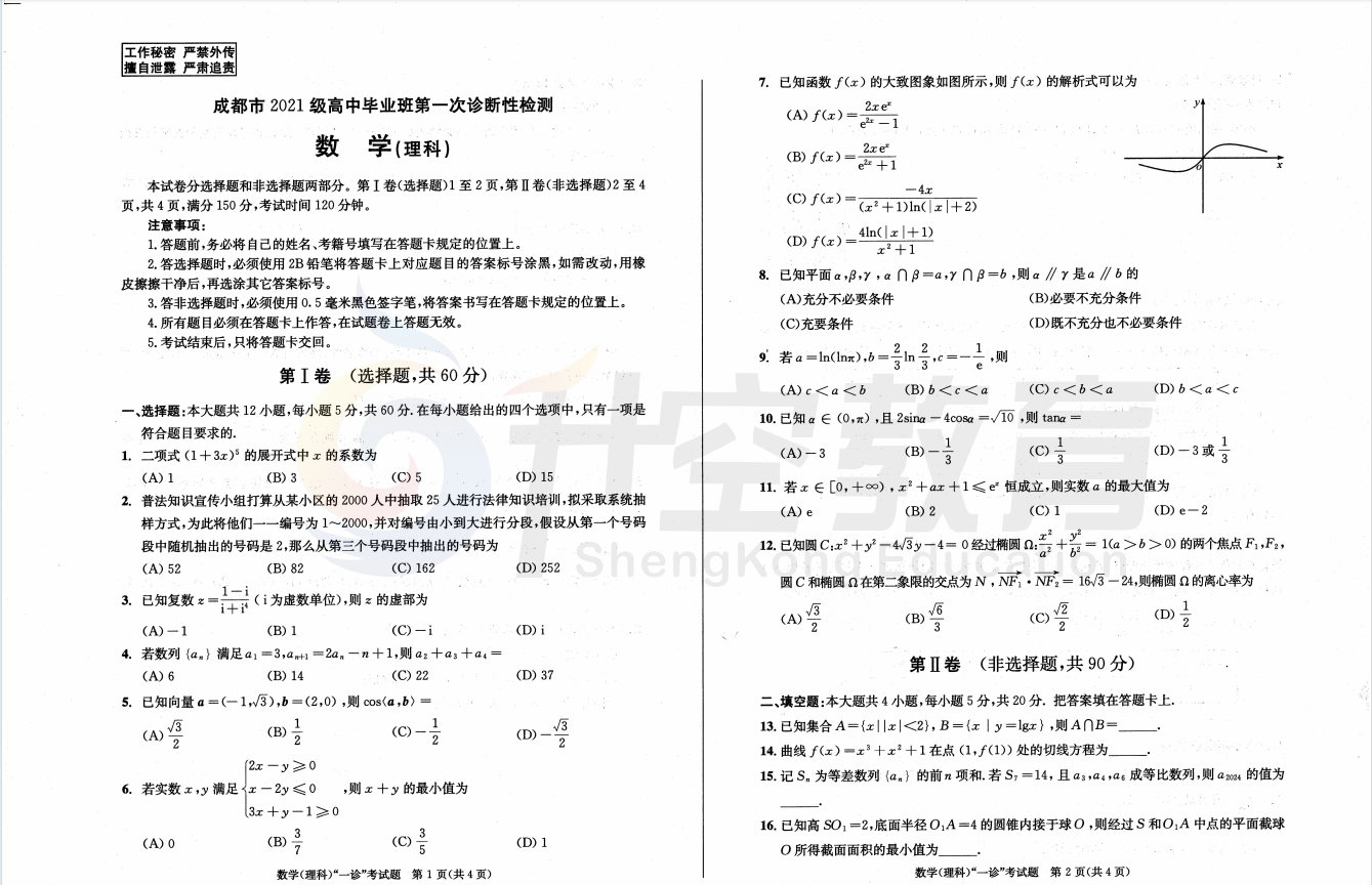 2024届成都一诊理科数学试题: