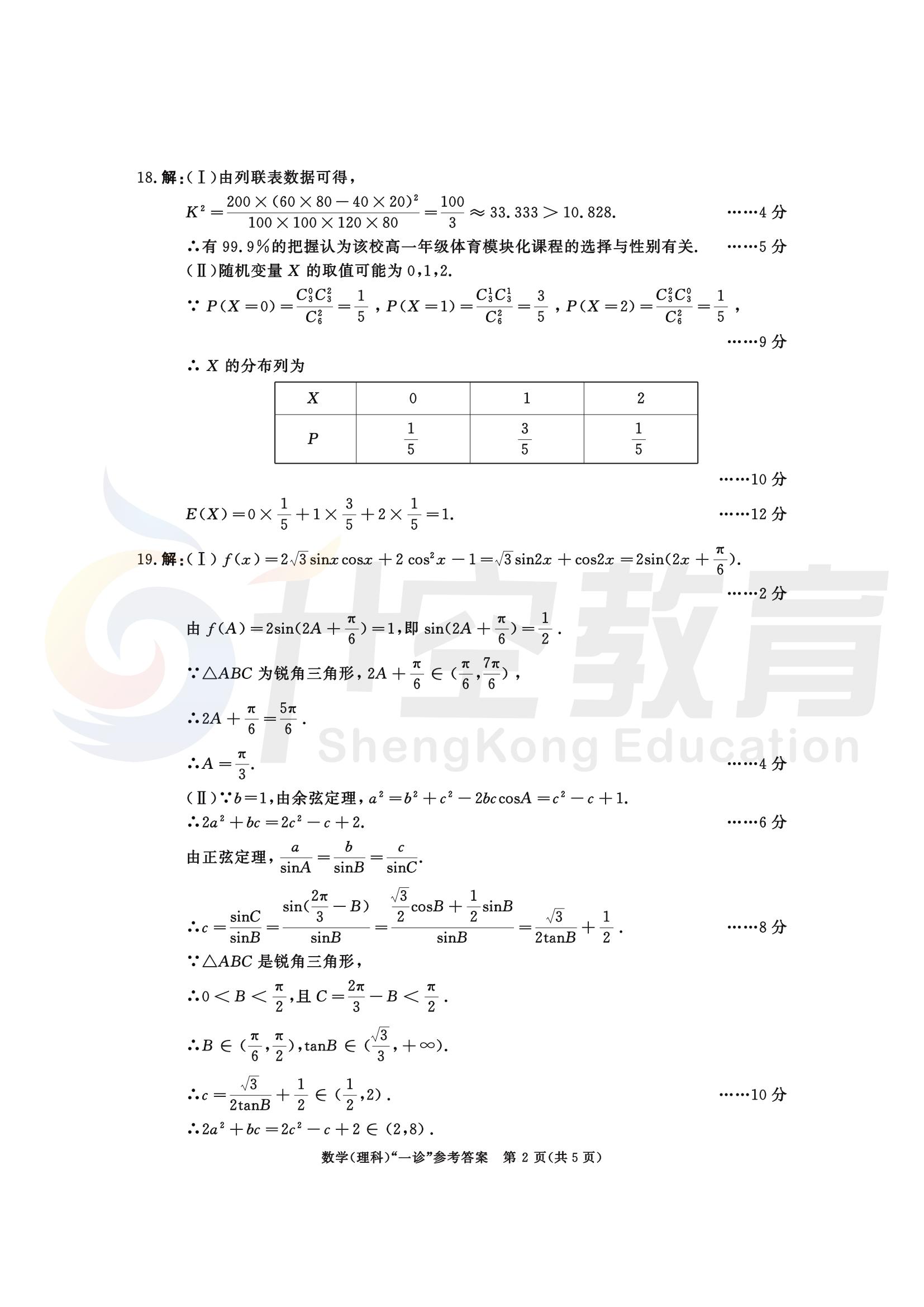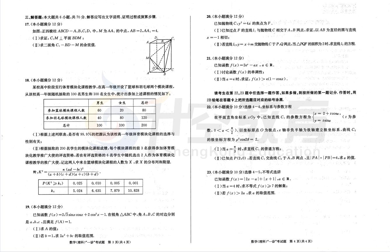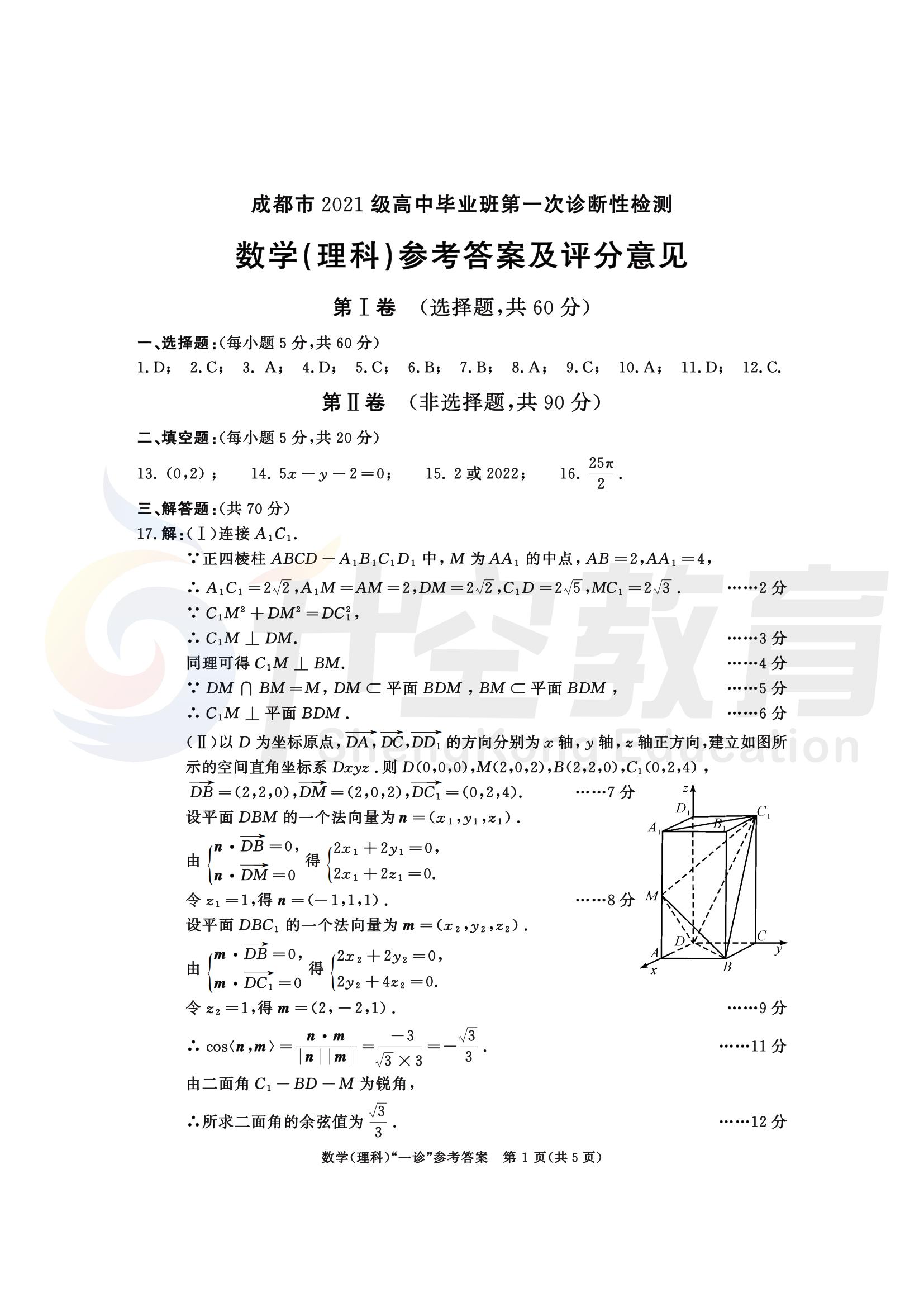 2024届成都一诊理科数学答案: