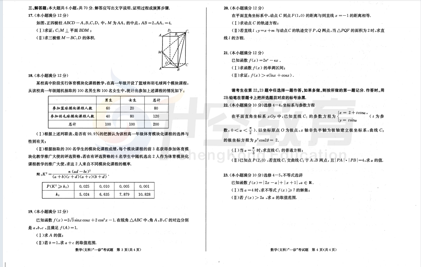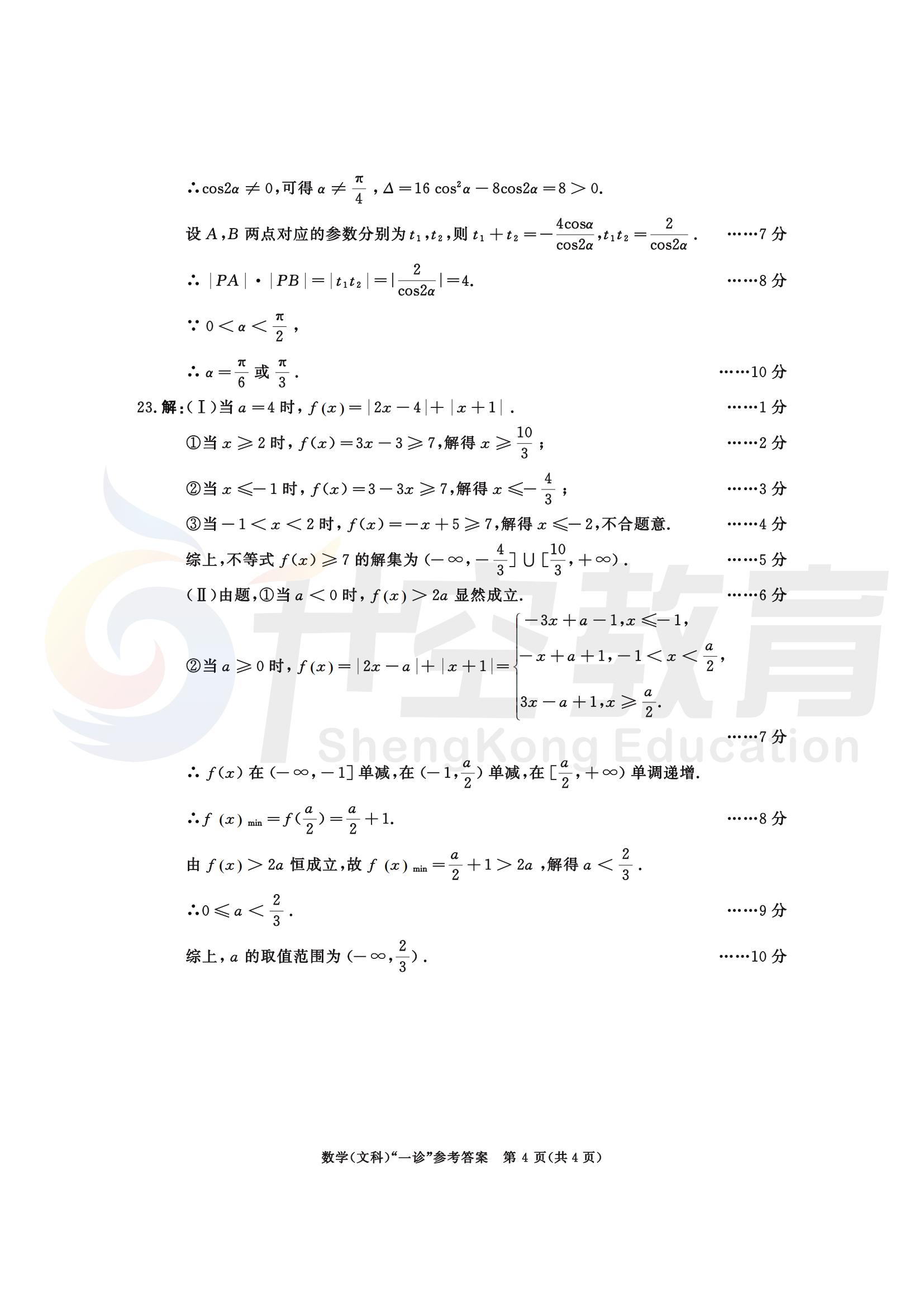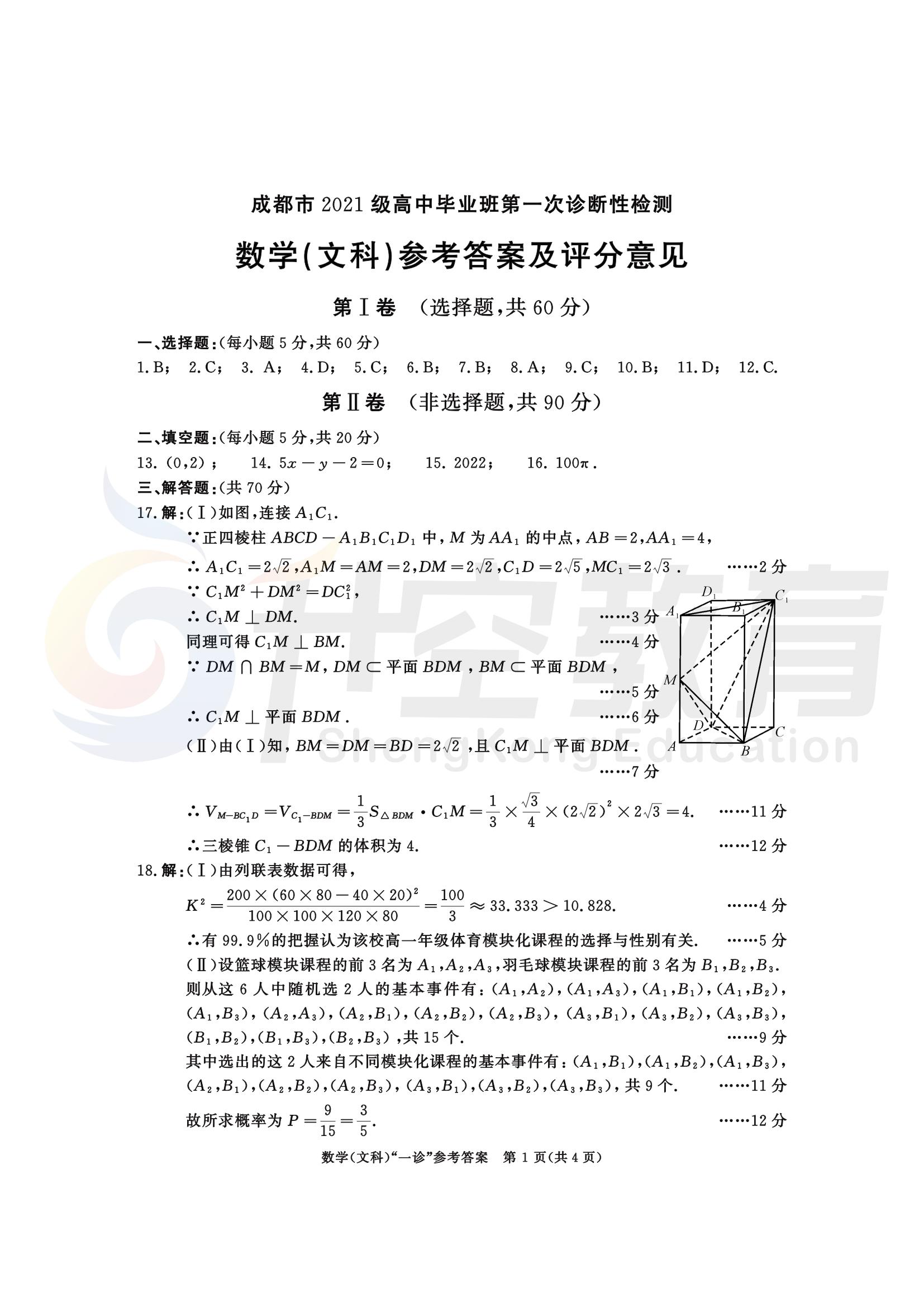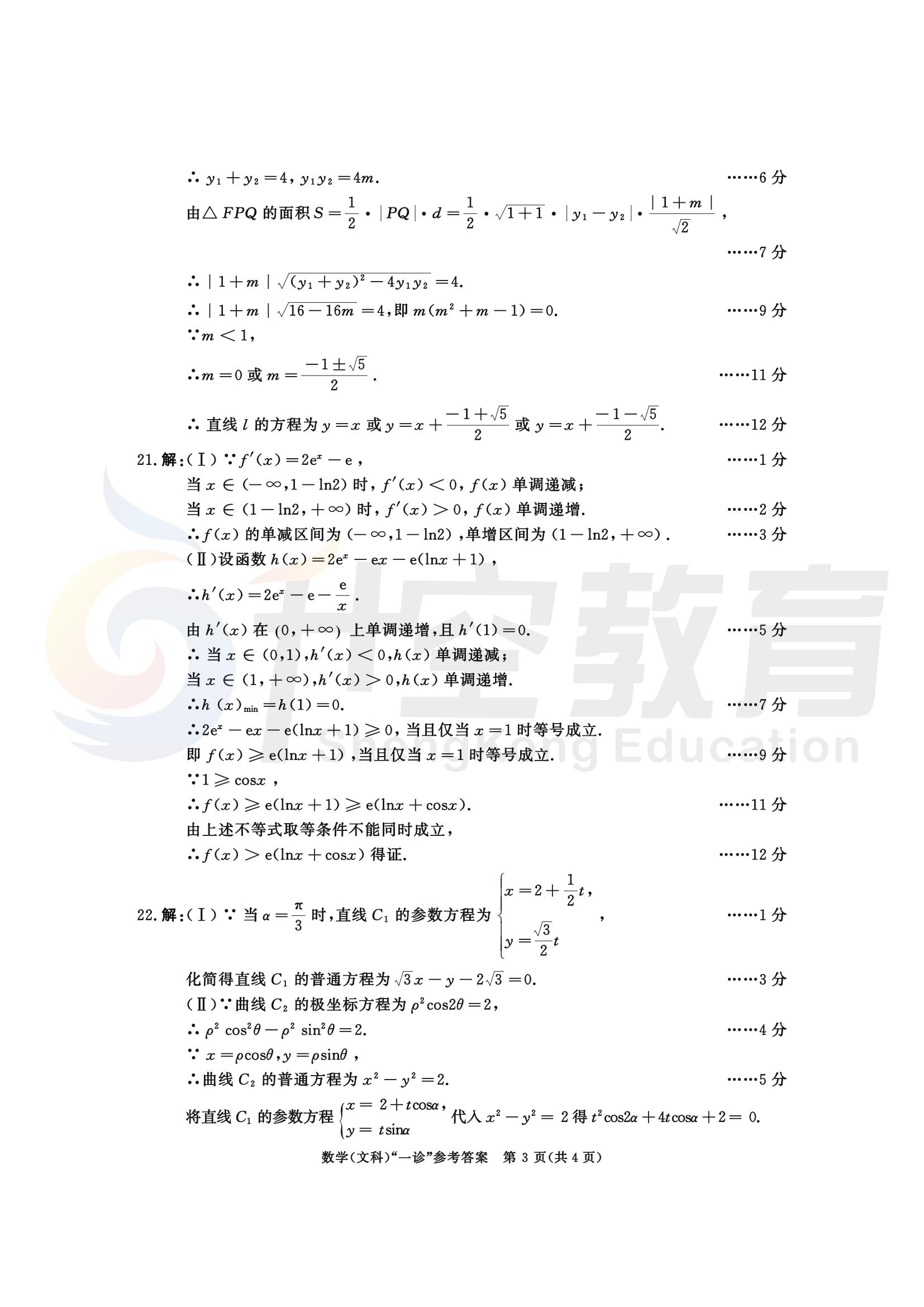 2024届成都一诊文科数学答案: